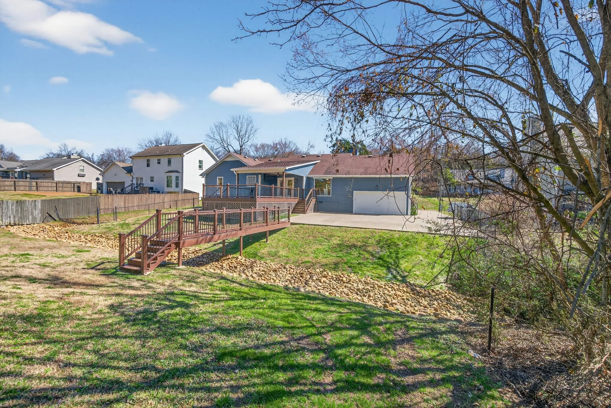 Step outside to an expansive covered rear deck plus an additional open deck overlooking the large backyard, which is partially fenced.