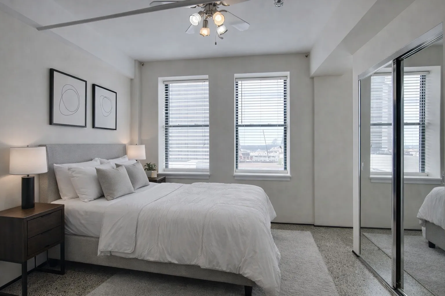 Downtown Nashville condo for rent with 1 bedroom and 1 bathroom located in a secure high-rise building. Light-filled unit on the preferred side of the building featuring a full wall of windows and high ceilings. Modern kitchen with stainless steel appliances. Includes covered parking space and private storage unit. Terrazzo floors throughout. Community amenities include fitness center and resident lounge/common area. Walkable downtown location near Broadway, The Gulch, restaurants, entertainment, and major employers. Ideal for professionals seeking luxury condo living in Downtown Nashville. Tenant to verify all information is accurate. Includes washer and dryer. Photos have been virtually staged.