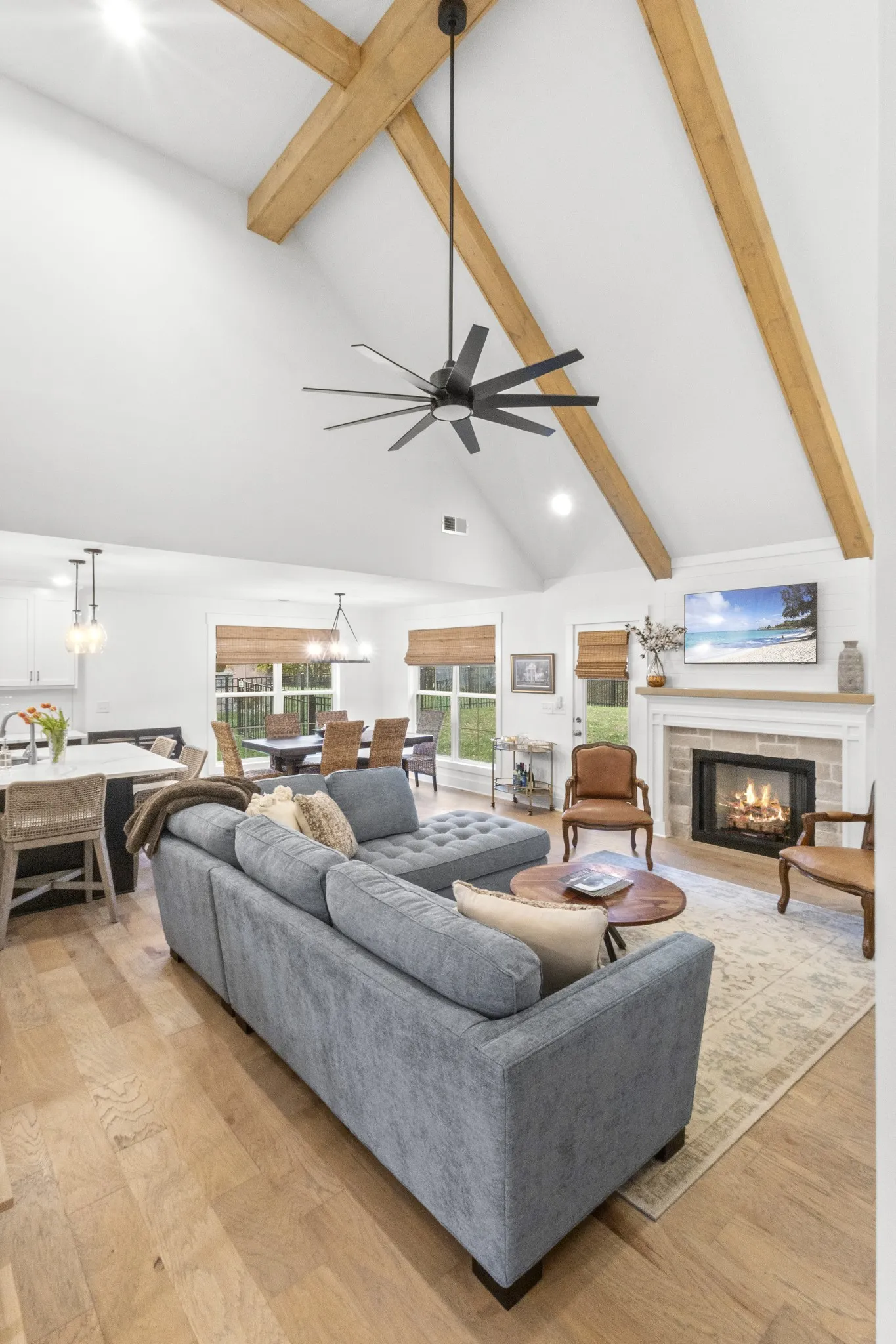 Why wait for new construction when you can have “better than new” without the wait? This impeccably maintained home in one of Clarksville’s newest communities is just one year old and already upgraded beyond builder standards! Featuring modern finishes, a bright open floorplan with extra storage, and thoughtful improvements including custom shades throughout, this home truly stands out from the rest. Vaulted ceilings, wooden beams and shiplap fireplace. Enjoy a spacious kitchen with upgraded stainless appliances including gas stove, LG French Drawer Stainless Fridge, quartz counter tops, slow close cabinetry and tile backsplash. A cozy living space ideal for entertaining, and a private primary suite with vaulted ceilings and Jacuzzi tub designed for comfort. Outdoors has a rear wooded lot view and yard and landscaping have already been completed with irrigation—no construction mess, no waiting for grass to grow, no unexpected builder punch-list items. 1 year old Samsung Smart washer/dryer also included. Move in and enjoy immediately! Conveniently located near schools, shopping, dining, and easy access to Fort Campbell and I-24 for commuters. This is the one you’ve been waiting for!