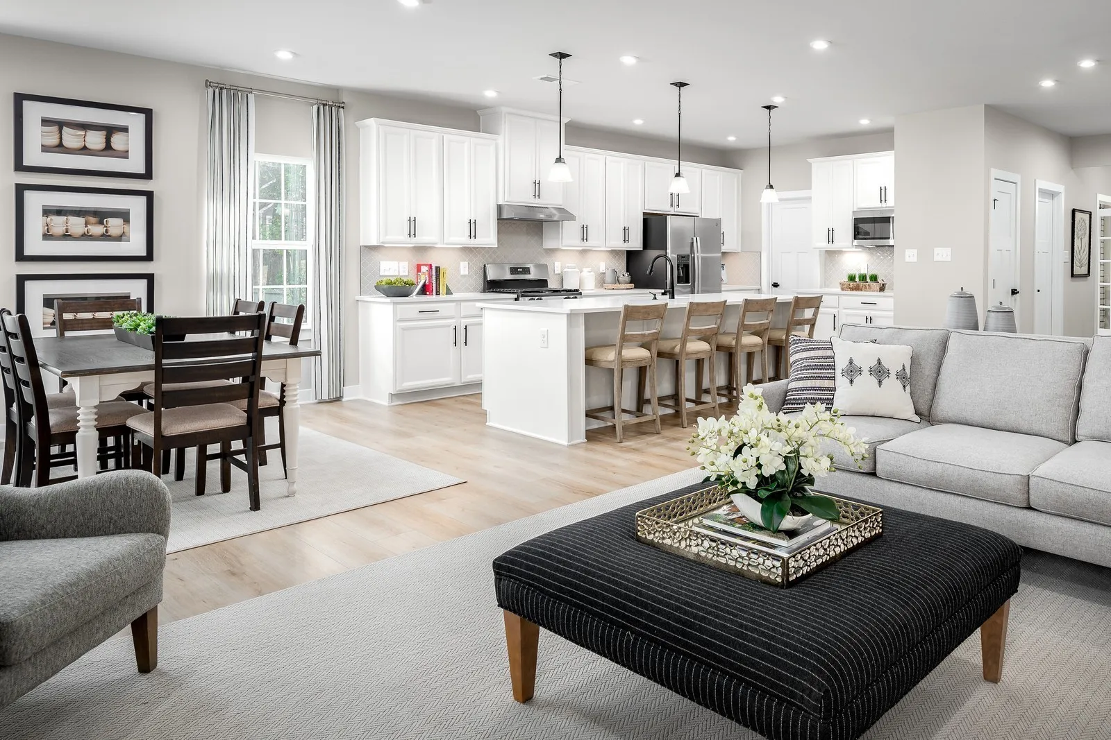 Explore our gorgeous homesites, featuring serene open‑space views, peaceful cul‑de‑sac settings, and beautiful tree‑lined backdrops. Inside, The York showcases refined included finishes such as granite countertops, rich espresso 42″ cabinetry, luxury vinyl plank flooring, and timeless transitional details. You can further enhance your home with elevated upgrades including quartz countertops, premium cabinetry, and designer lighting selections. Base pricing does not reflect upgrades or homesite premiums.