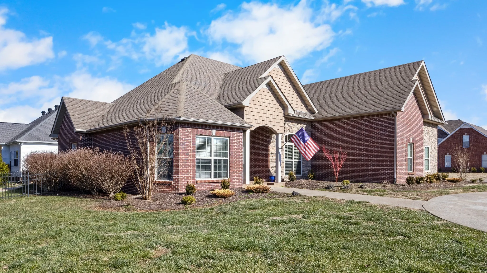 Seller is offering $20,000 in buyer concessions! Beautiful all brick and stone home in Sango’s Willowbrook Subdivision! This four bedroom, three and a half bathroom (all new toilets) home with a bonus is one that you do not want to miss out on. The primary and two other bedrooms are located on the main floor with 2.5 bathrooms. The fourth bedroom and third full bathroom are located upstairs with a full bonus room. Located right down the road from Thirsty Goat, you can pull into your circular drive and enter into this beautifully renovated home. Totally gutted and renovated kitchen with cabinets that reach the ceiling. Quartz counter tops in kitchen with a newer drop in double oven and dishwasher. New flooring throughout the entire home to include carpet and luxury laminate. Entire home has been repainted. All new light fixutres on the main level. Walk from your kitchen into your living room with fire place and tall ceilings. Leave from the living room to walk into your fully enclosed Florida room where you can watch the roses bloom and birds feed at your delight. Once you step outside from your Florida room, you are led down a custom concrete stamped pathway to a custom fire pit patio area that is perfect for entertaining. When you pull in the front, note that this home has had an entire landscaping redo, and it looks amazing when everything is in bloom. Not to mention, the primary bedroom on this home is absolutely huge and such a retreat after a long day. Along with the primary closet has custom cabinetry for organization needs. Side entry two car garage. If you like to walk or be outdoors, this neighborhood has a park, a pond with benches, and a library mailbox for anyone to use and exchange books that is nearby. HVAC was replaced in 2025 with top of the line Amana unit. Pool table, washer and dryer, storage racks in garage to convey with a full price offer. Custom made living room furniture is negotiable. 40 minutes from Nashville and to Fort Campbell.