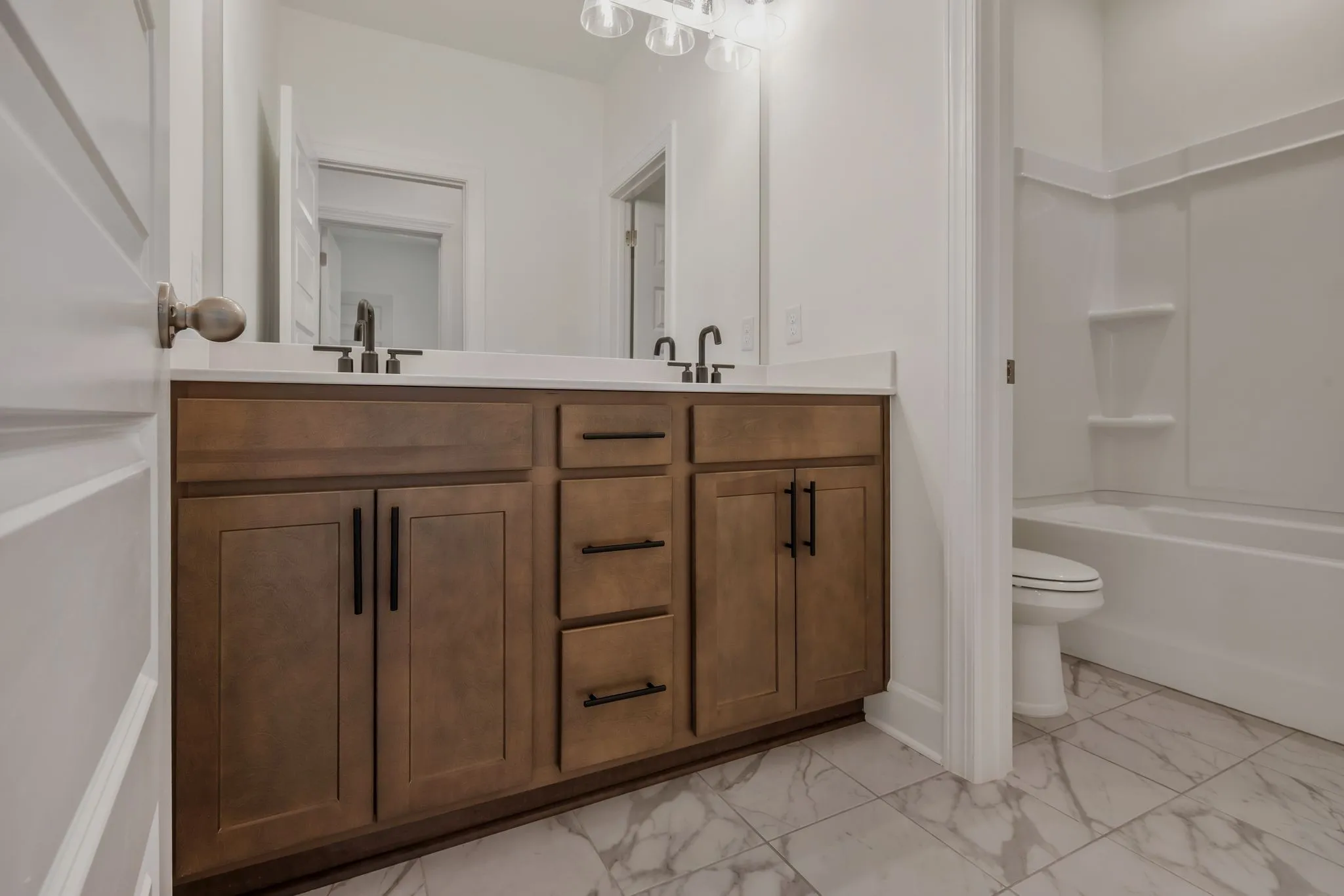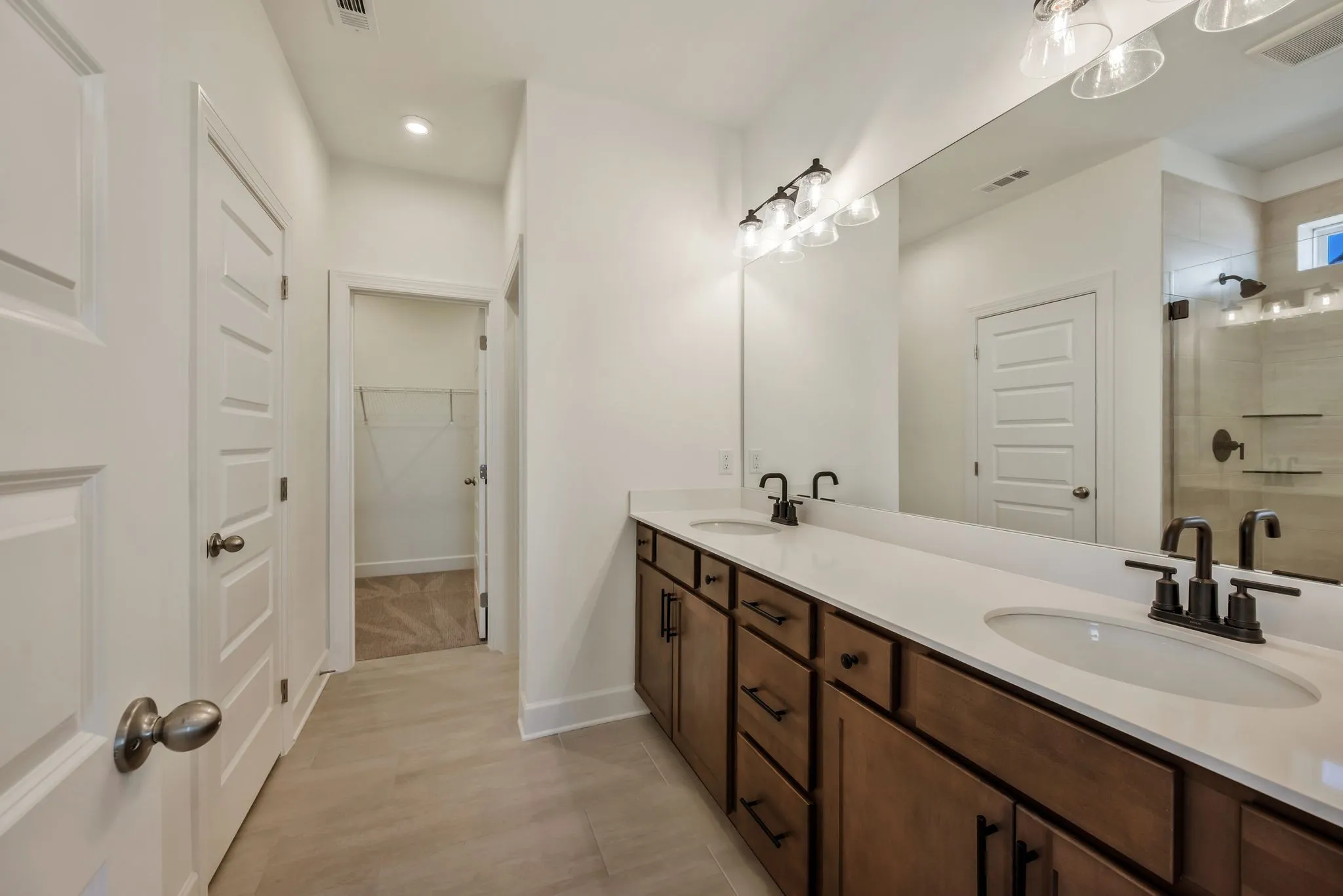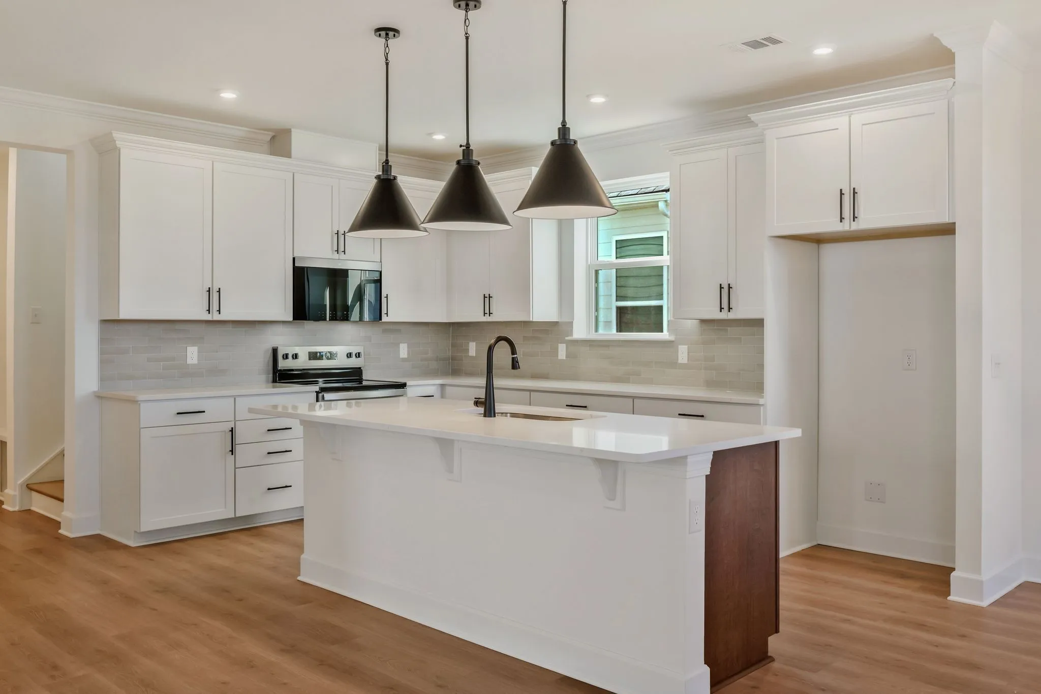 LOT 79-Ready NOW! Welcome to The Chadwick, one of our most popular model home floor plans, offering spacious rooms and a bright, open living space on the main level. A covered porch provides comfortable outdoor living year-round, complemented by an additional large, uncovered patio off the great room. This home is built with quality in mind, featuring 2×6 exterior walls and 9-foot ceilings both upstairs and downstairs. The interior includes hardwood stairs with iron railing, white soft-close kitchen cabinets, 8-foot first-floor doors, matte black lever door hardware, 5 ¼-inch baseboards, and a painted garage. The mudroom includes a convenient valet bench with hooks and cubbies for extra storage. Upstairs, you’ll find three bedrooms, including the spacious Primary Suite, along with a HUGE media room that can be closed off with doors. Bedrooms 2 and 3 each offer large walk-in closets, and the primary bathroom features a beautifully tiled shower.