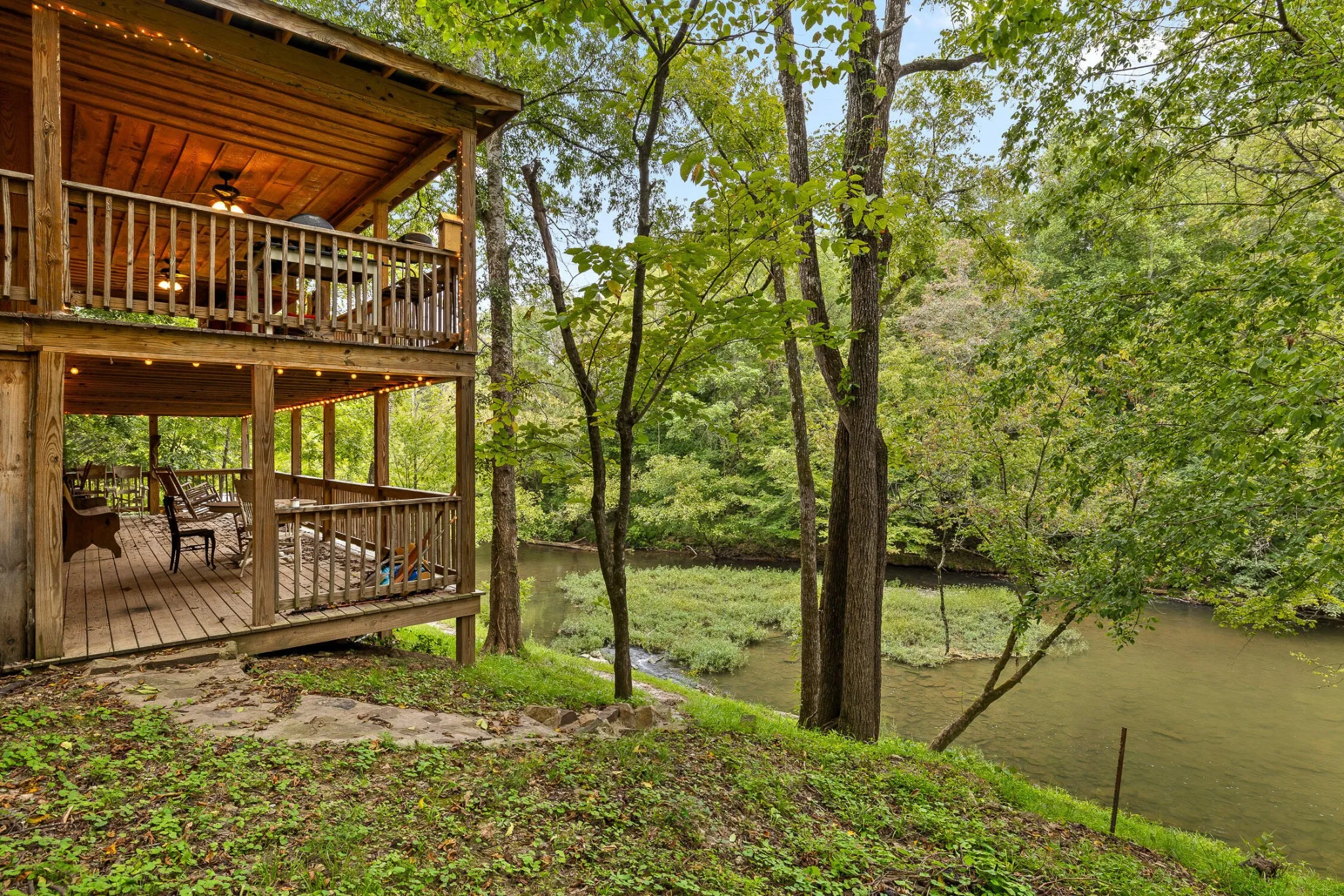 Guests are drawn to the experience this property provides. Days spent fishing or floating the creek, evenings on covered porches overlooking the water, and a peaceful setting that keeps bookings strong year after year.