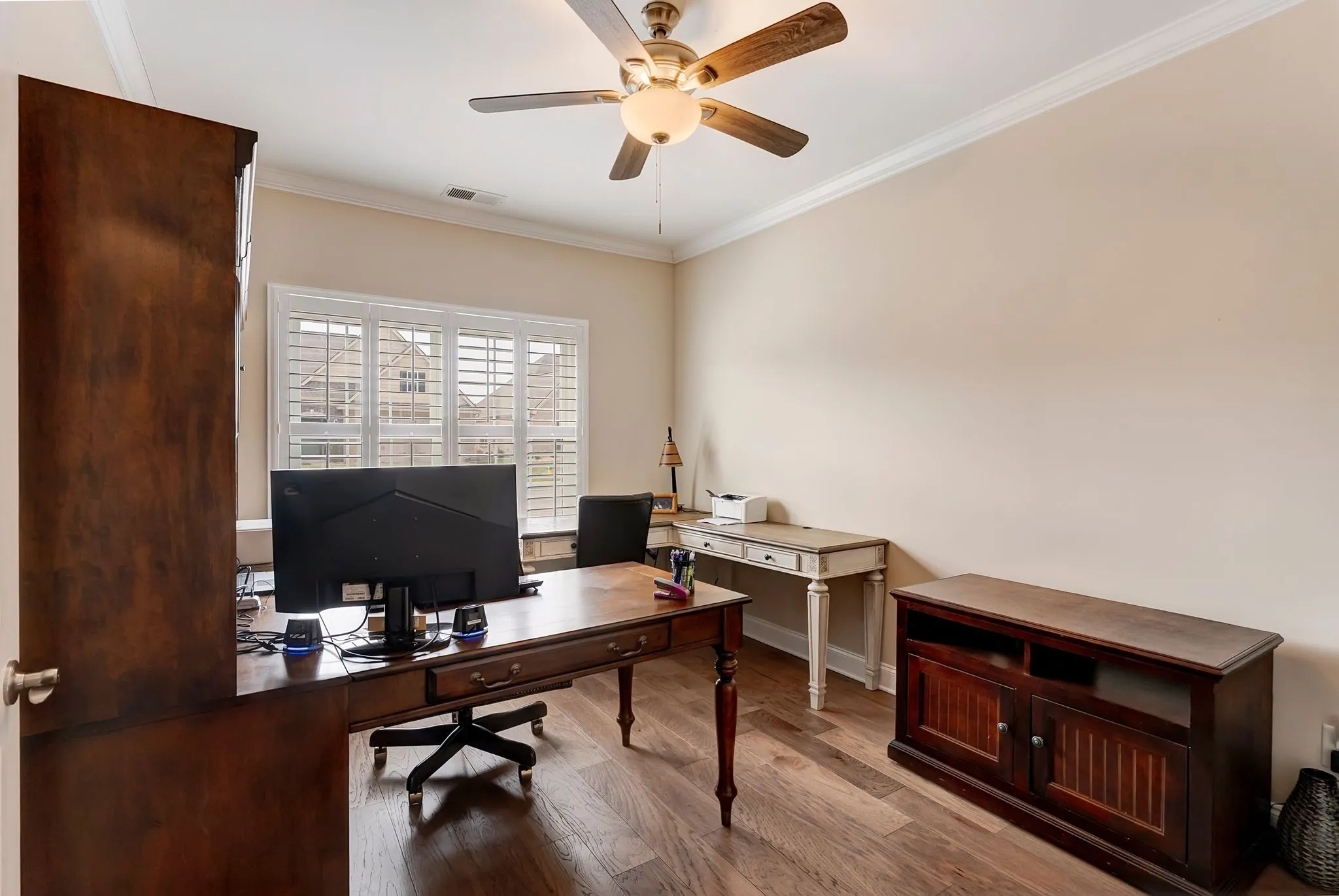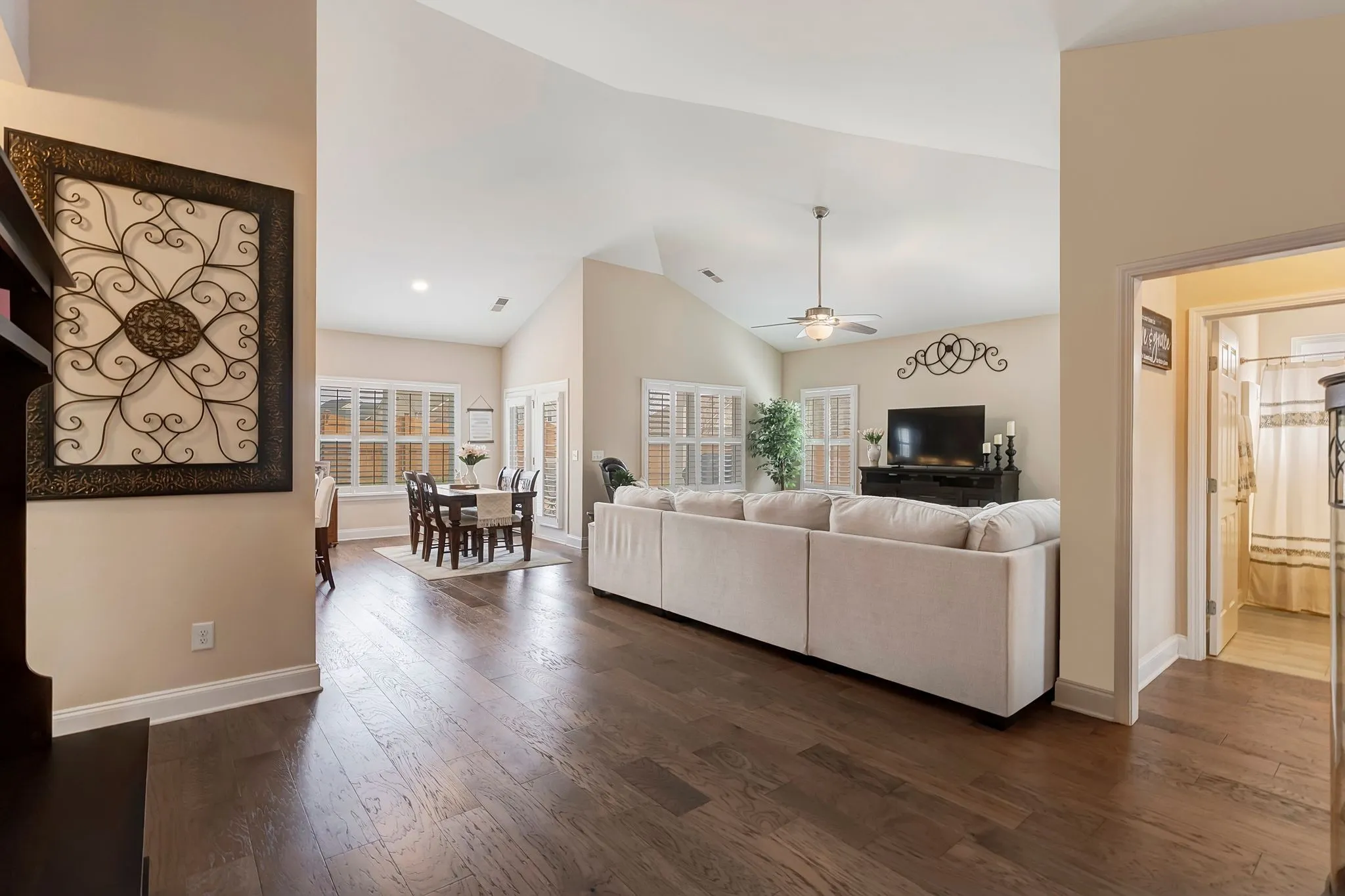 Thoughtfully designed with an open and inviting layout with high ceilings, the living spaces flow seamlessly for both everyday living and entertaining. Natural light fills the home, highlighting the spacious main living area and well-appointed kitchen featuring ample cabinetry and generous prep space. The primary suite offers a relaxing retreat, while secondary bedrooms provide flexibility for guests, office, or hobbies.