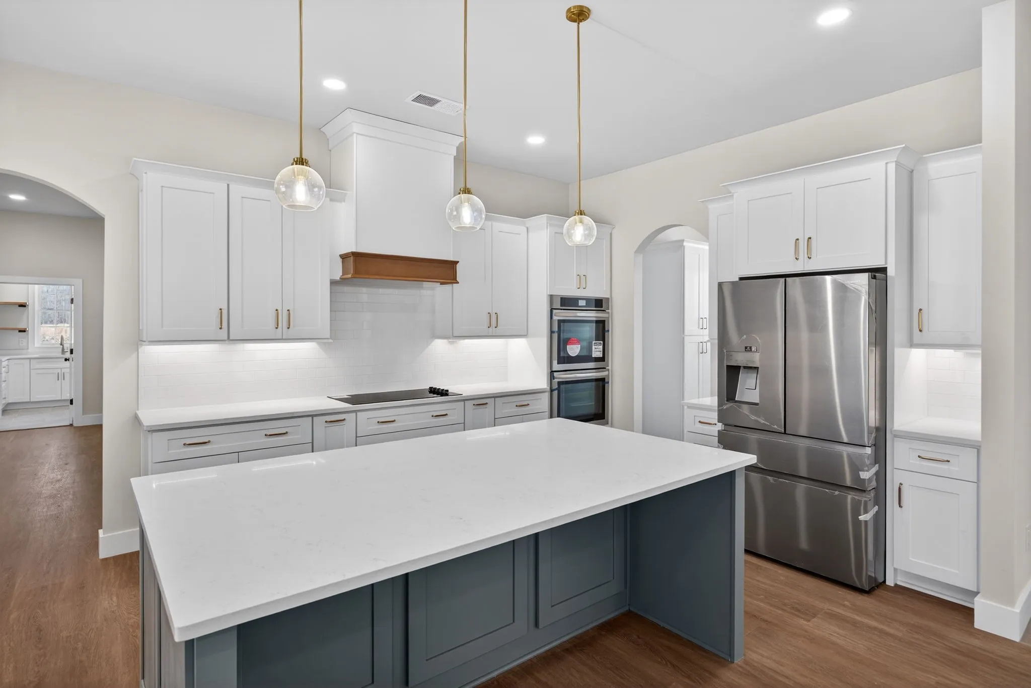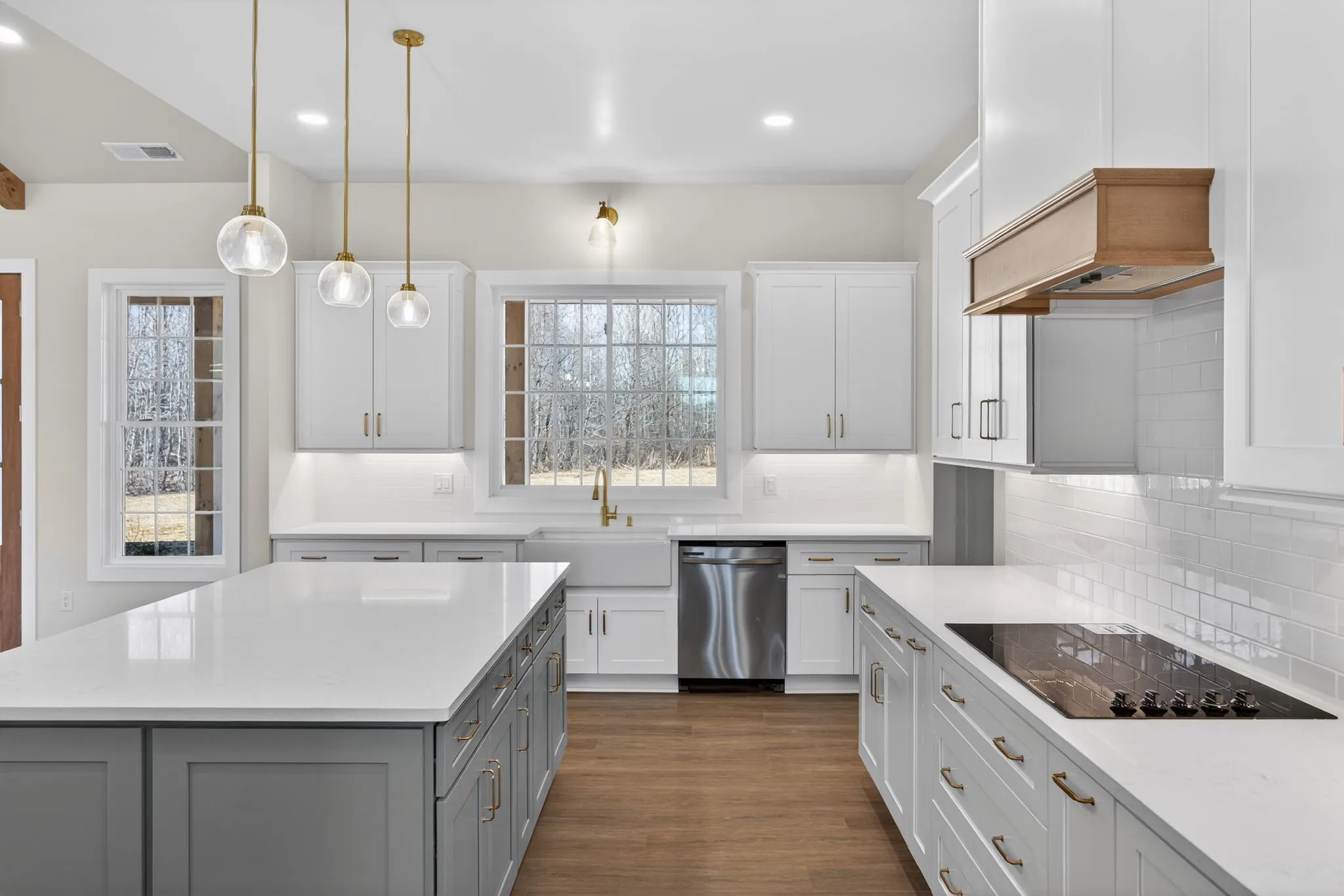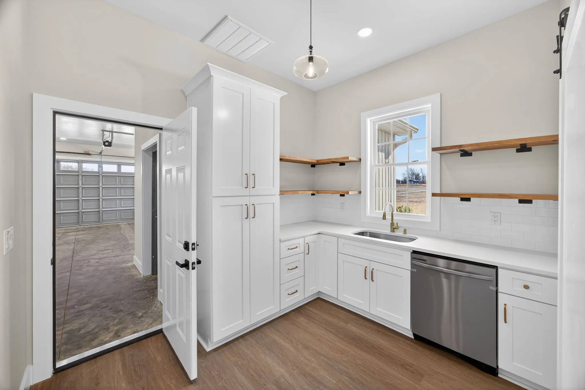 Nestled on 5 serene acres, this newly built home encourages a slower, more intentional lifestyle. The exterior showcases a fresh yet timeless white modern farmhouse design, complemented by warm wood accents that welcome you inside. Sunlight dances across the wide-plank floors, illuminating an open living area anchored by a cozy fireplace.