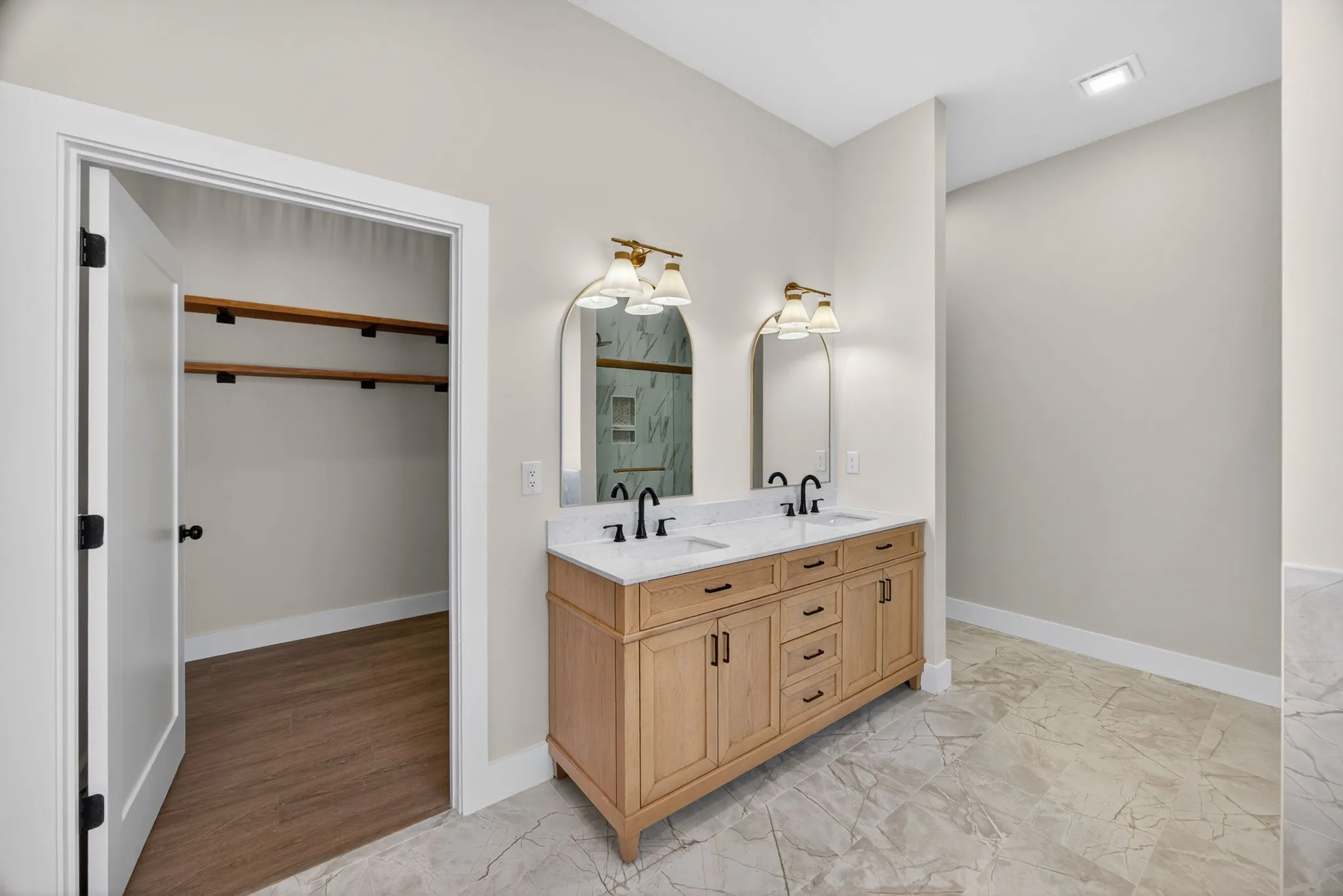 At the heart of the home is a spacious kitchen, perfect for gatherings, featuring a generous island and a pantry that doubles as a concealed prep area. The bedrooms and bathrooms serve as personal retreats, equipped with tile floors, a large tiled shower, and a soaking tub. With two primary suites, this home is ideal for multi-generational living. An adaptable bonus room upstairs awaits your creative touch, and a safe room in the garage adds an extra layer of security.