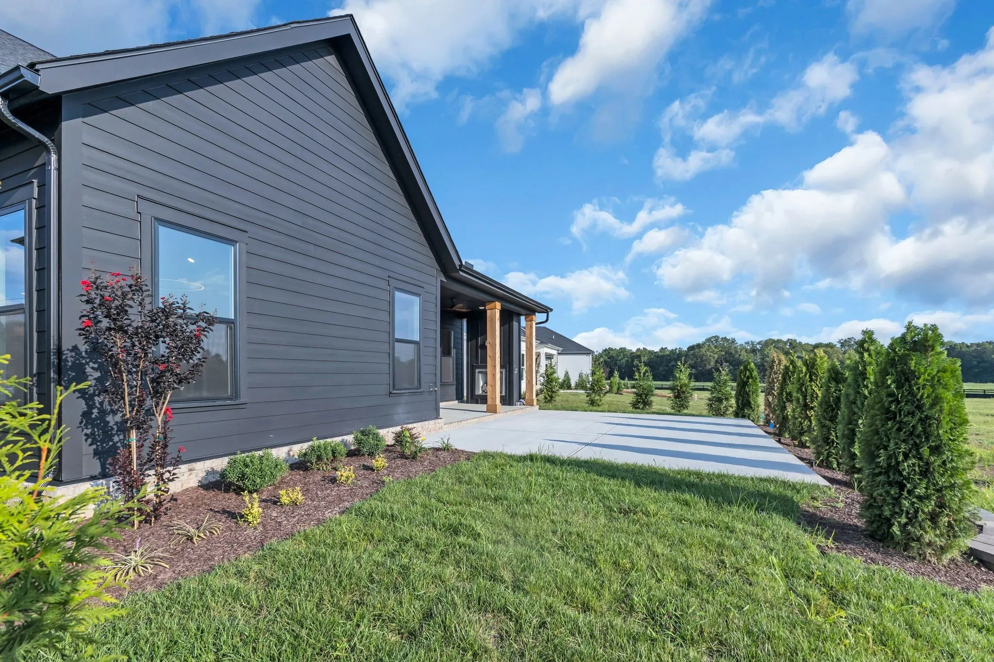The Landon Floorplan on Homesite 149 invites you to embrace every season. Mornings begin with soft light spilling across wooded ridges, afternoons unfold with sweeping views of neighboring farms, and evenings end beside glowing fireplaces under crisp, star-filled skies. A short stroll leads to the Bethesda Rec Center, an exclusive Williamson County amenity featuring new outdoor sports fields and courts, with an indoor complex coming soon that will include a pool, fitness center, racquetball, library, and more. A scenic walking path and bridge will soon connect Fairhaven directly to the Rec Center.Inside, this beautifully appointed 4-bedroom, 3.5-bath home offers a main-level primary suite and private study, creating a comfortable retreat for everyday living. The open-concept design centers around a chef’s kitchen with oversized islands, KitchenAid appliances, double ovens, custom plaster hood, quartz backsplash, butler’s pantry, and abundant storage—perfect for gathering, entertaining, and cozy winter nights in. Thoughtful upgrades elevate the home, including waterfall island, judges paneling in the study , a custom fireplace, curated lighting, and a covered back deck ideal for enjoying cool evenings. Additional highlights include full sodded and irrigated yard, tankless water heater, all wood shelving and a charming gas lantern welcoming you home. Luxury, warmth, and timeless living—where winter feels just a little more magical.