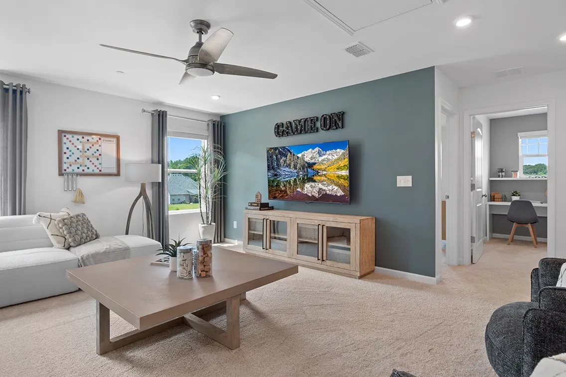This Calderwood at The Oaks in Mount Juliet combines open living with practical spaces. The main-floor owner’s suite includes a spa bath and walk-in closet. The great room and dining area flow into an extended kitchen with light gray cabinets, perfect for hosting. Upstairs, three bedrooms, a full bath, and a loft with large storage closet create room for hobbies, a study space, or a reading nook. A covered patio and 3-car garage complete the home, offering space for outdoor enjoyment and organized storage.