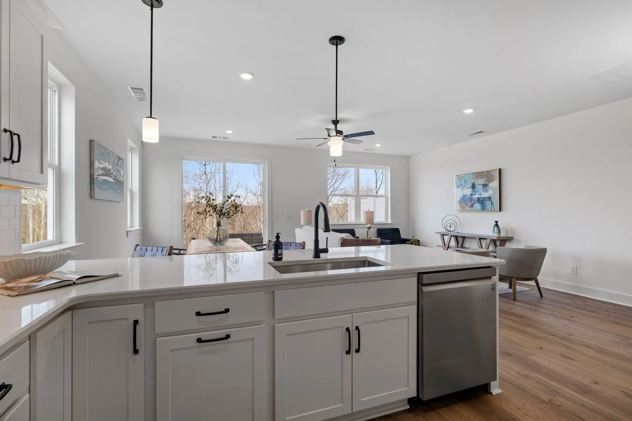 FINAL PHASE! Gatlinburg-style views just 20 mins from West End! Welcome to Ridgecrest at Riverwalk—a scenic view new construction community. This luxury townhome features a huge owner’s suite w/ walk-in closet & oversized tile shower, open concept living, and a finished attached garage. The kitchen includes quartz counters, soft-close cabinets (made in TN!), and generous counter space open to the living & dining areas—perfect for entertaining or a home office setup. Enjoy beautiful hard surface flooring, natural light, and upgraded finishes throughout. Community perks: 3 pools, walking trails, playground, and a greenway along the river. Ridgecrest offers the best of Bellevue—nature, luxury, and convenience all in one!