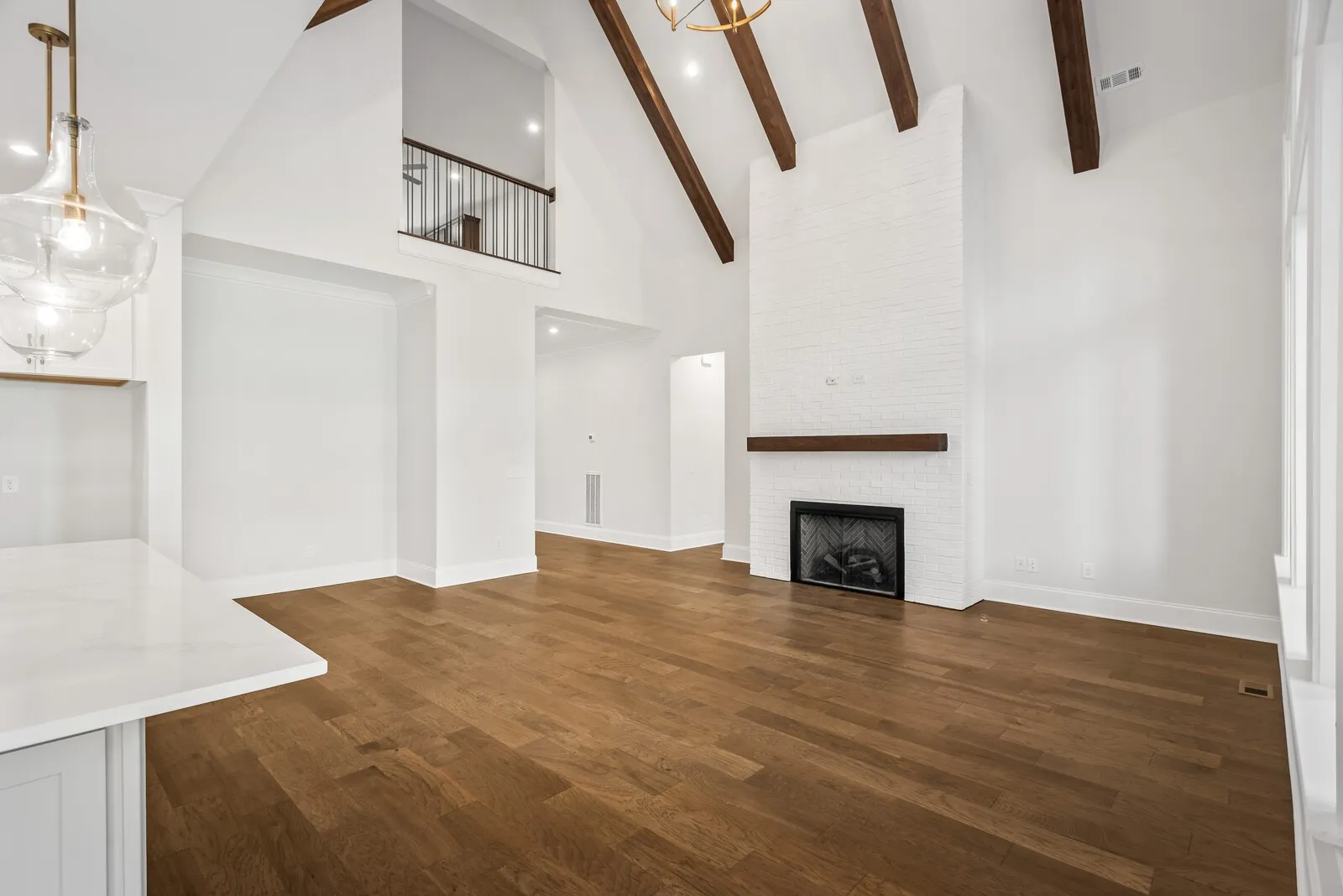 Featured is the Belvidere plan, an elegant and thoughtfully designed residence showcasing an open‑concept main living area with a family room highlighted by soaring ceilings, enhancing both natural light and architectural presence. The kitchen and dining areas flow seamlessly into the family room, making the space ideal for refined entertaining and everyday living.