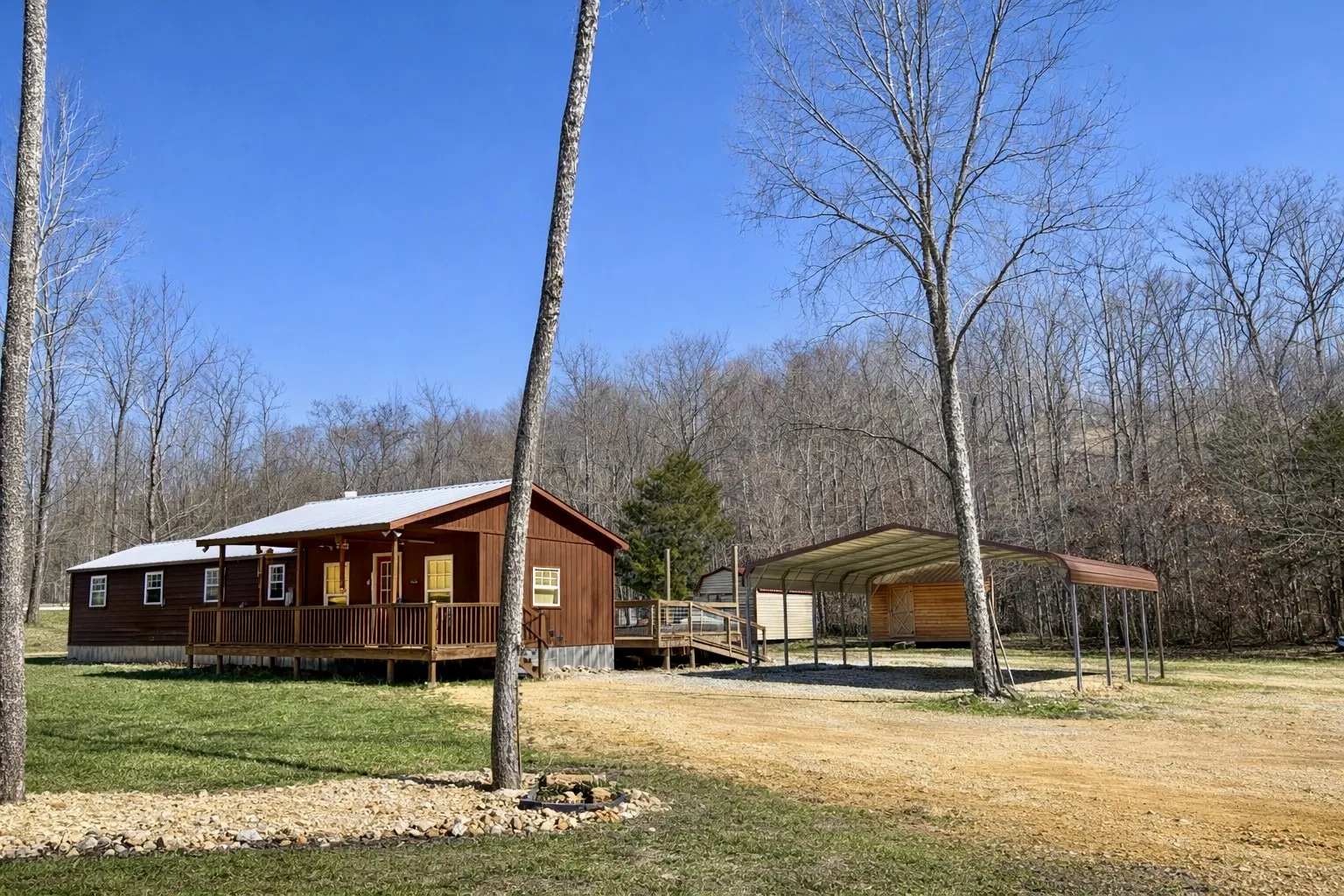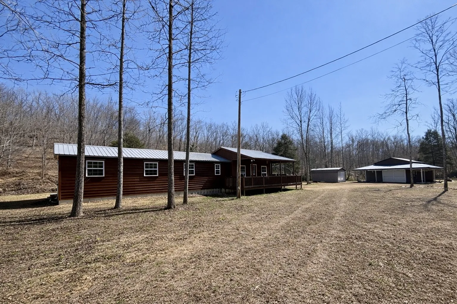 Private Tennessee Cabin Retreat in Gated Community on 46.7 Acres with a Dream Shop, Large Entertaining Deck & Multi-Building Setup. Meticulously maintained property with trail system throughout, multiple springs, and amazing views of the valley. 2 Bedrooms with an office and 1 bathroom. Expansive sun deck off the back of the home that has been reinforced to hold as many as you can gather. Tongue and groove pine throughout the inside of the home gives a warm and inviting feel. The 30X40 Shop has covered porches on each side where you can relax and take in the sounds of nature, entertain friends, or work on projects. Multiple outbuildings for storage or a children’s playhouse where imaginations can run wild. Home has upgraded electrical wiring including four breakers on the pole, separate boxes for the well, the shop, the sheds, and the electric has been ran underground from the pole to the Cabin. This home also has upgraded spray foam in the walls, attic, and underneath. Only a handful of people live in this secure, gated community and they consider each other family. Less than 10 min from Crooked Creek Marina. Come see what dreams may come with this one of a kind property!! Drone footage to come!!
