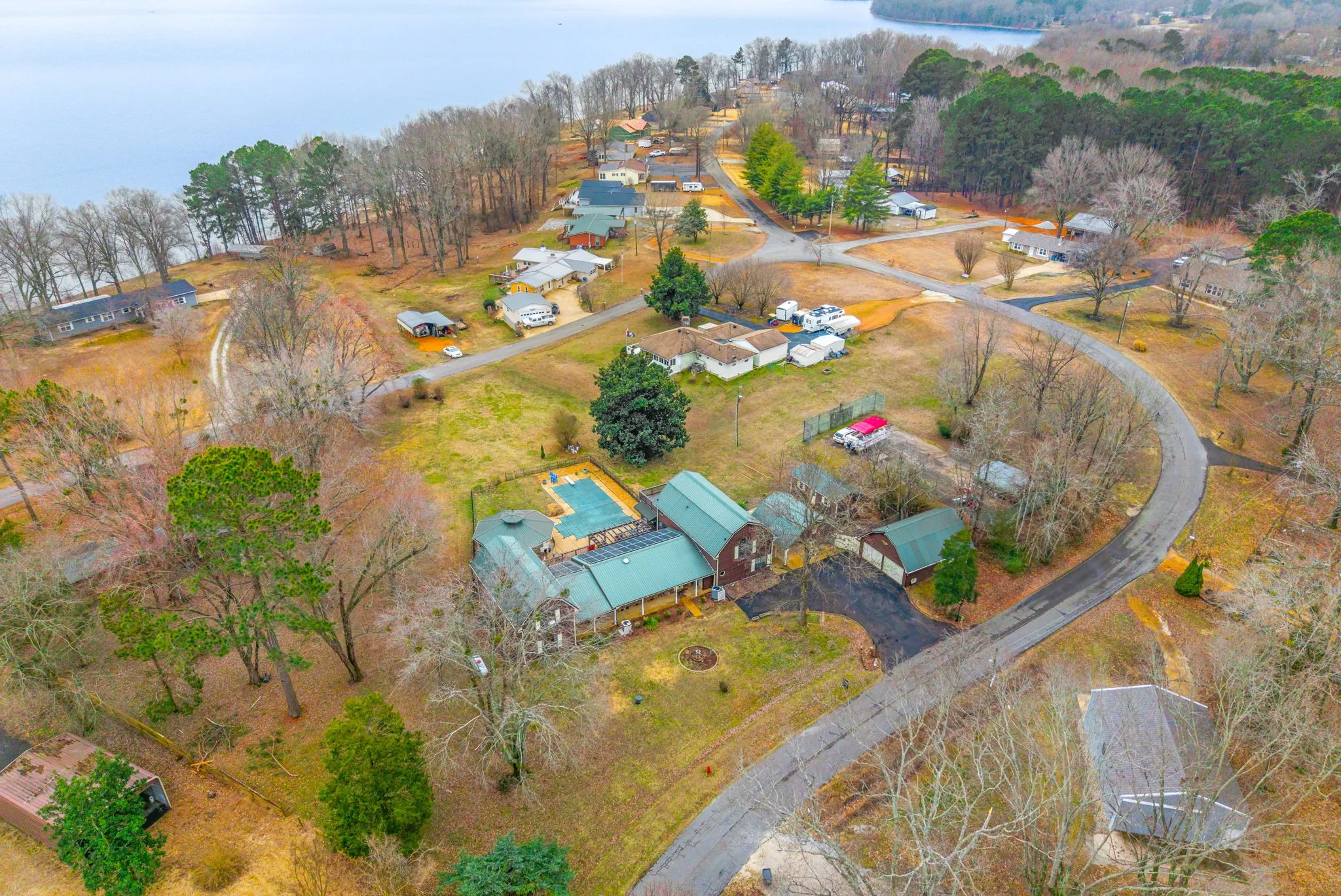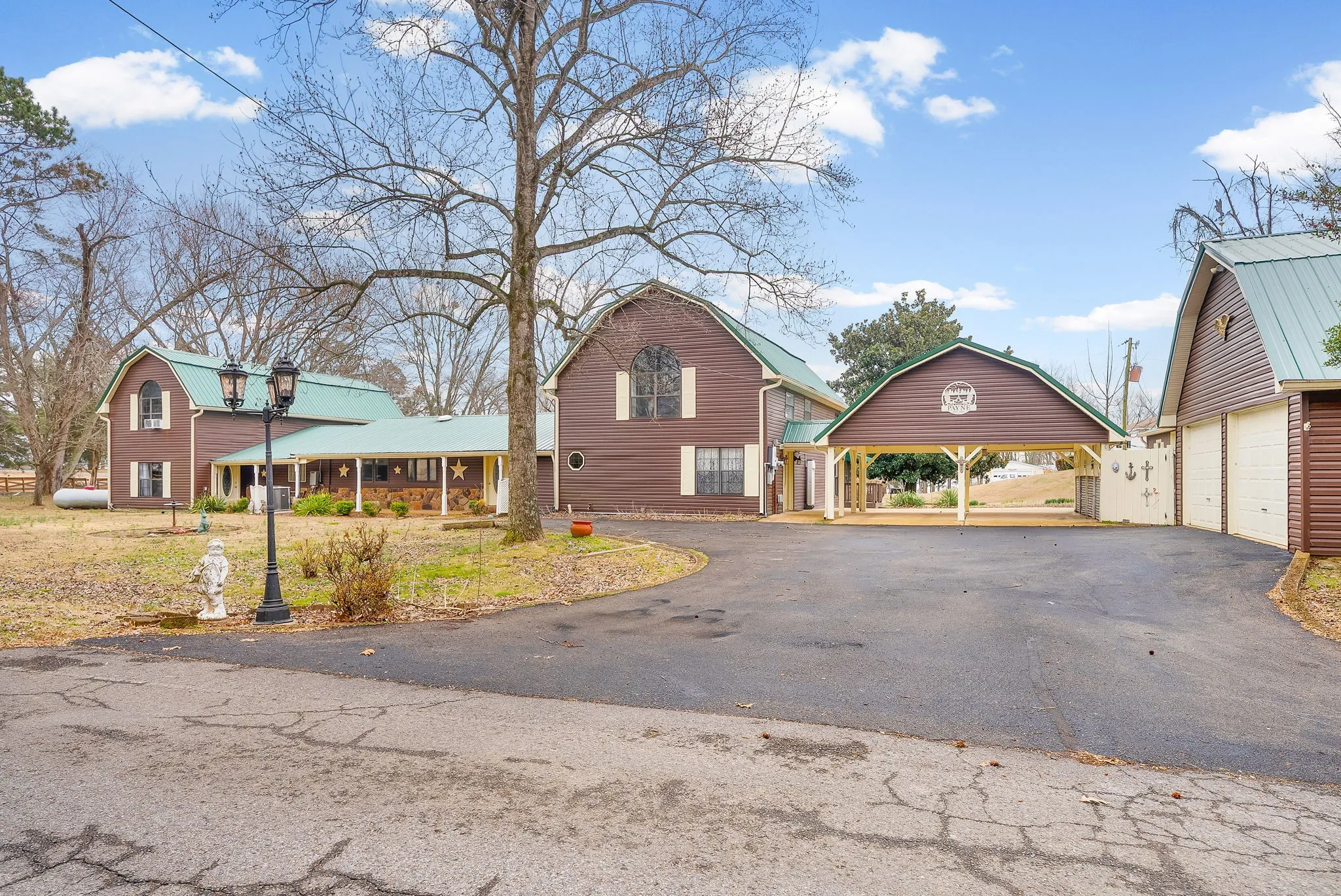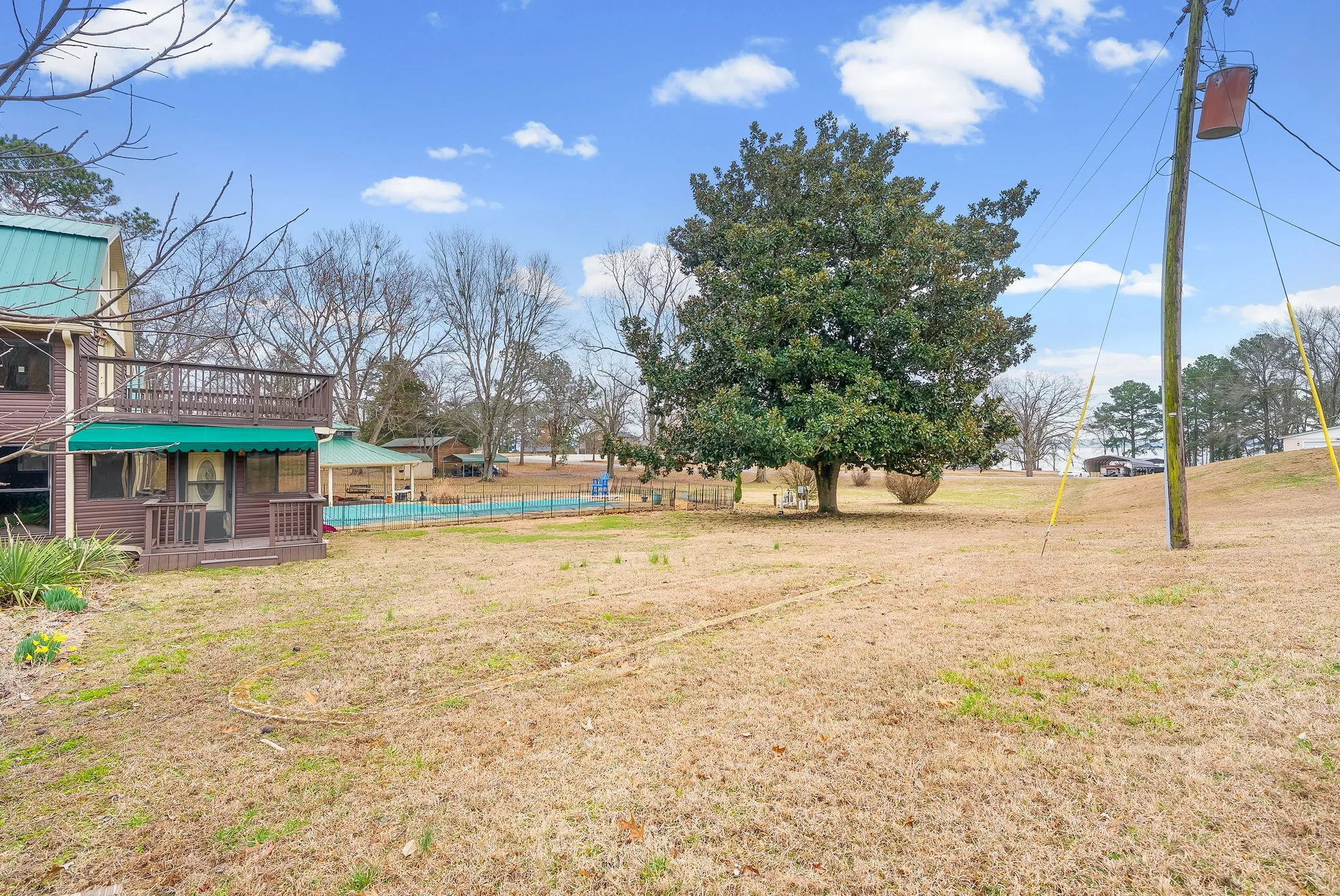Family compound style home on 1.5 acres in Springville, TN! Enjoy views of Kentucky Lake right from the backyard. This spacious home features two separate living spaces, perfect for your weekend getaway with loved ones or short/long term rental possibilities. On the right side, an enormous living room, a sitting area, an open kitchen with double ovens, and a sunroom on the main level. Upstairs, you’ll find a private living quarters with its own living room, bedroom, bathroom, and balcony. The left side of the house was previously rented for $1200/mo, and features its own laundry, two bedrooms, an office area, two living rooms, full kitchen, and private balcony. Enjoy outdoor living with your very own gazebo, expanded deck, and in ground pool. The detached garage and outdoor shed offer additional storage spaces or workshops. Solar panels power the home, so you have peace of mind and a lower electric bill. This home has been lovingly cared for and is ready for its new owners. Schedule your showing today!
