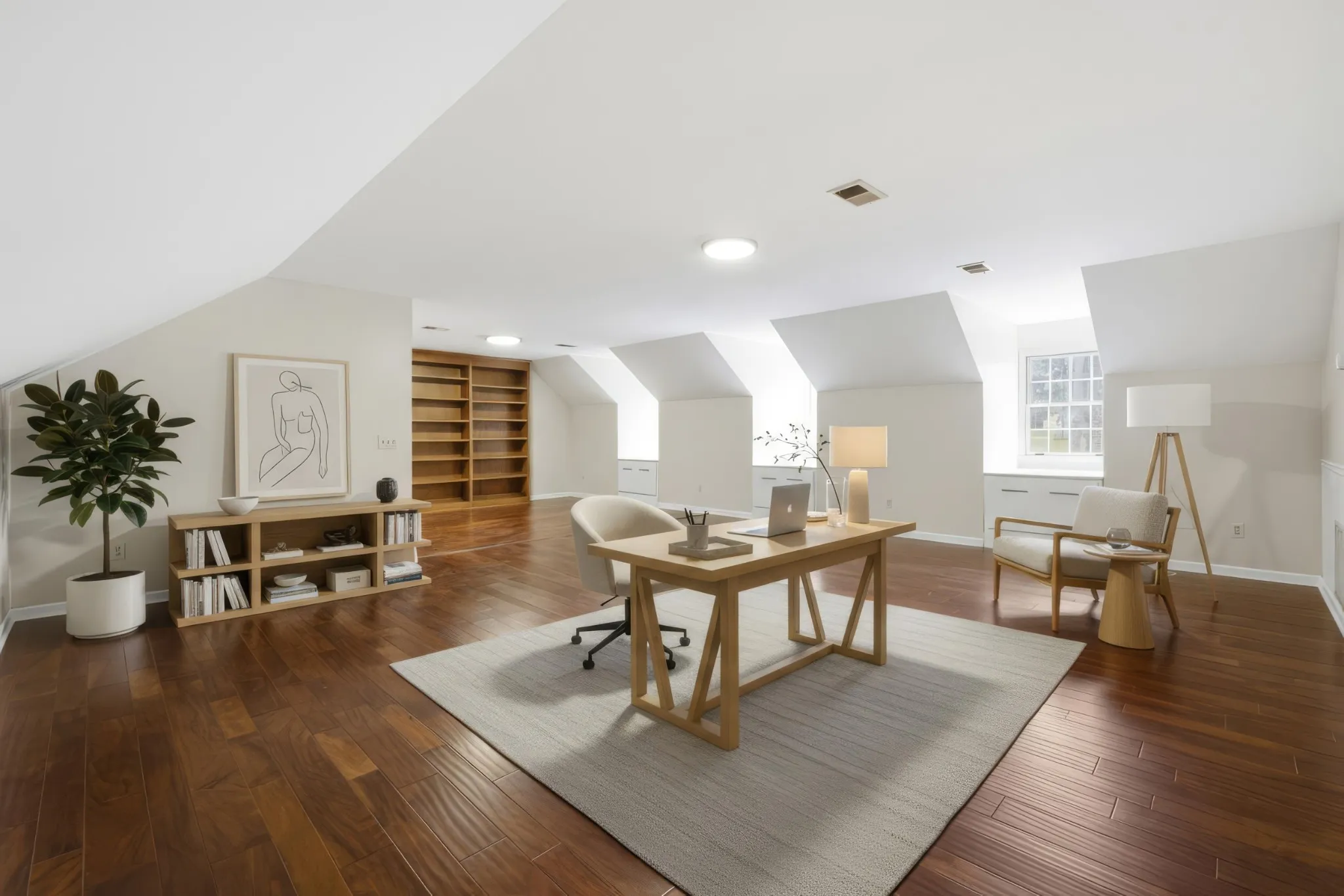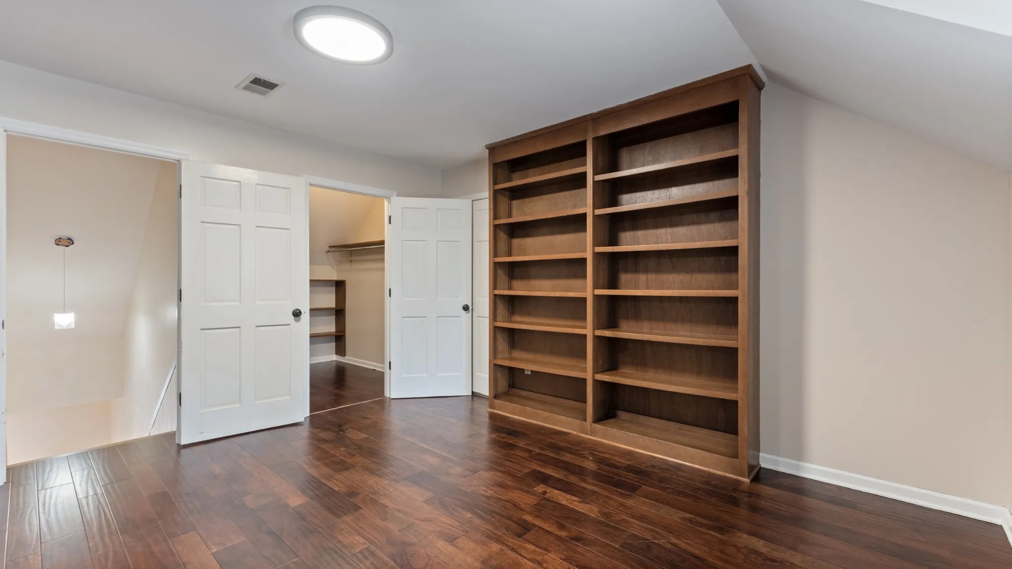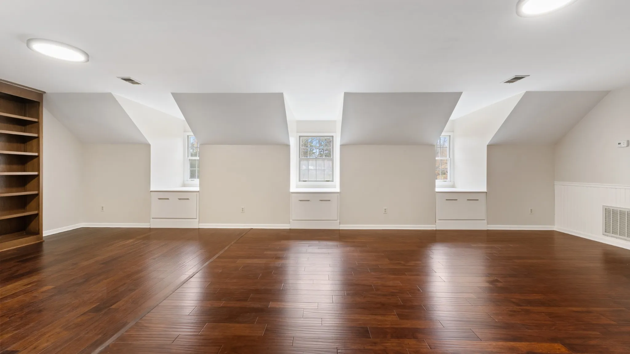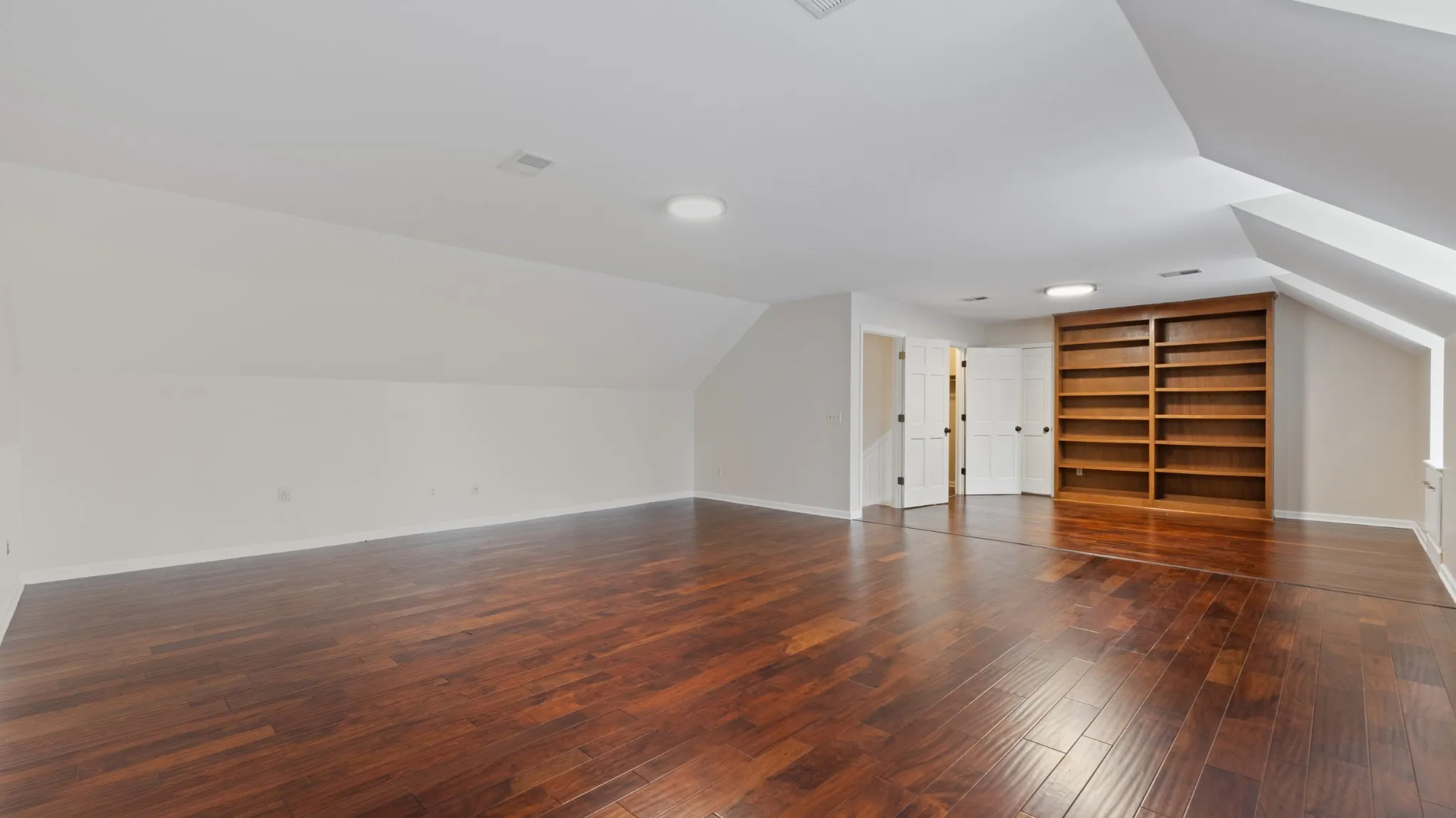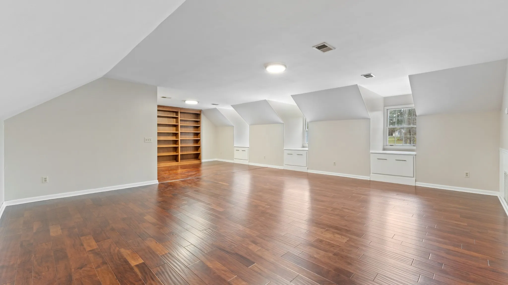 Upper level bonus area is 22×31 Sq. Ft. of multipurpose space for media room, play room, craft room etc. with a 7×8 ft. walk in closet. Also included is a walk in floored attic space with built in shelves.