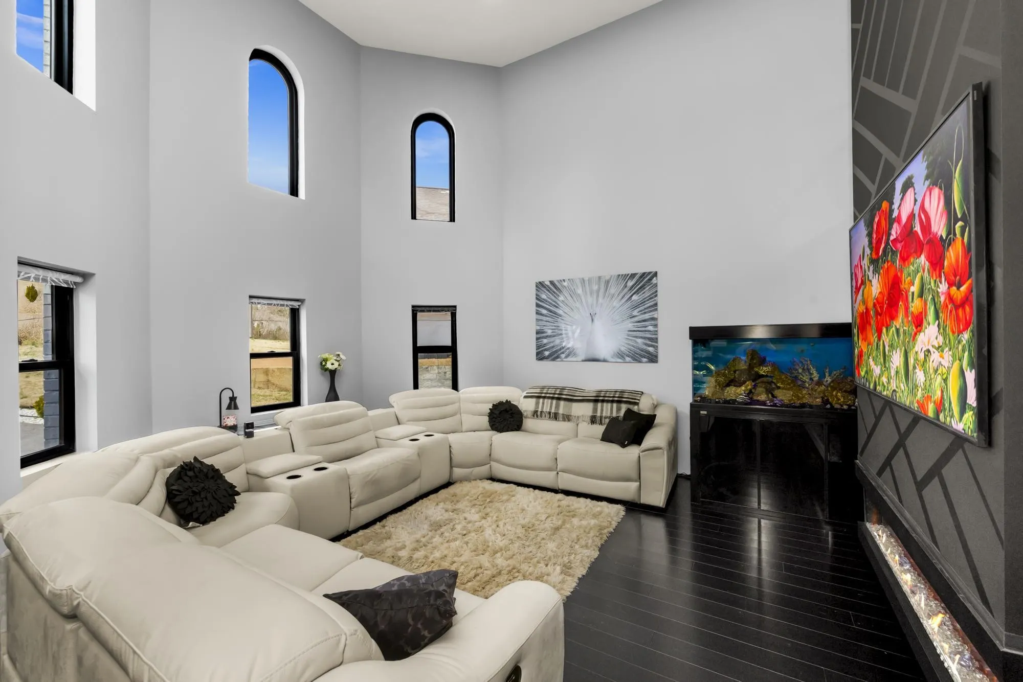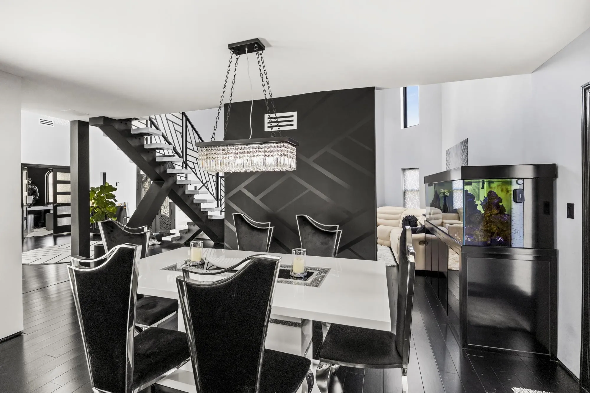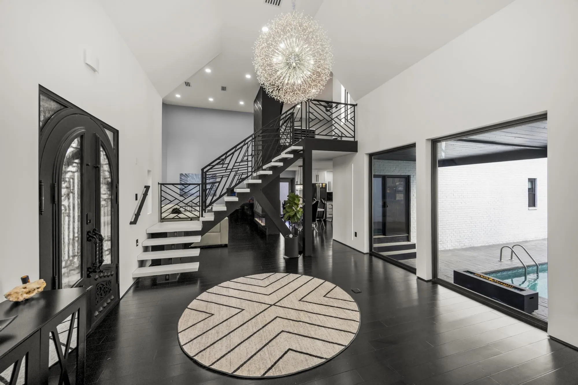 Under Contract- Sale of Home Contingency + 48 Hour First Right of Refusal in place. Backyard Lake access comes with this one-of-a-kind contemporary home designed to resemble a striking modern castle. A dramatic ornate staircase anchors the grand foyer, setting the tone for the home’s impressive scale and design. At the center of the residence, a custom shipping container pool creates a true indoor-outdoor resort feel. Inside, enjoy soaring ceilings, smart home features, and a luxurious primary suite with spa-like finishes. Upstairs, a bonus space and bedroom currently function as a private movie theater suite. Car enthusiasts will love the showcase sports car garage, while a reinforced tornado shelter and double-encapsulated crawl space add exceptional peace of mind. Exterior highlights include extensive aggregate, hardscape landscaping, smart holiday lighting and hydrophobic exterior coating designed to repel water, all built with top-of-the-line materials and custom craftsmanship throughout. Completely unique and unlike any other home on the market. Ask your Realtor for the upgrades list!