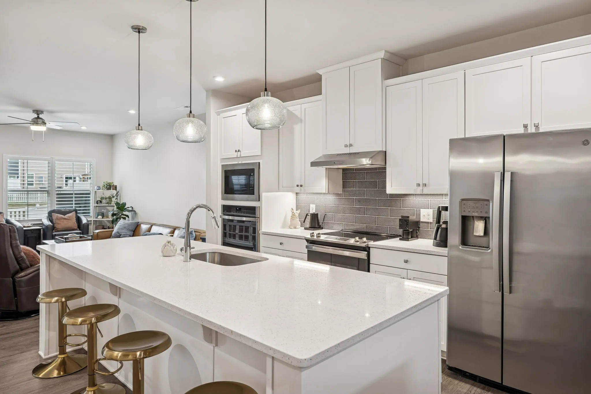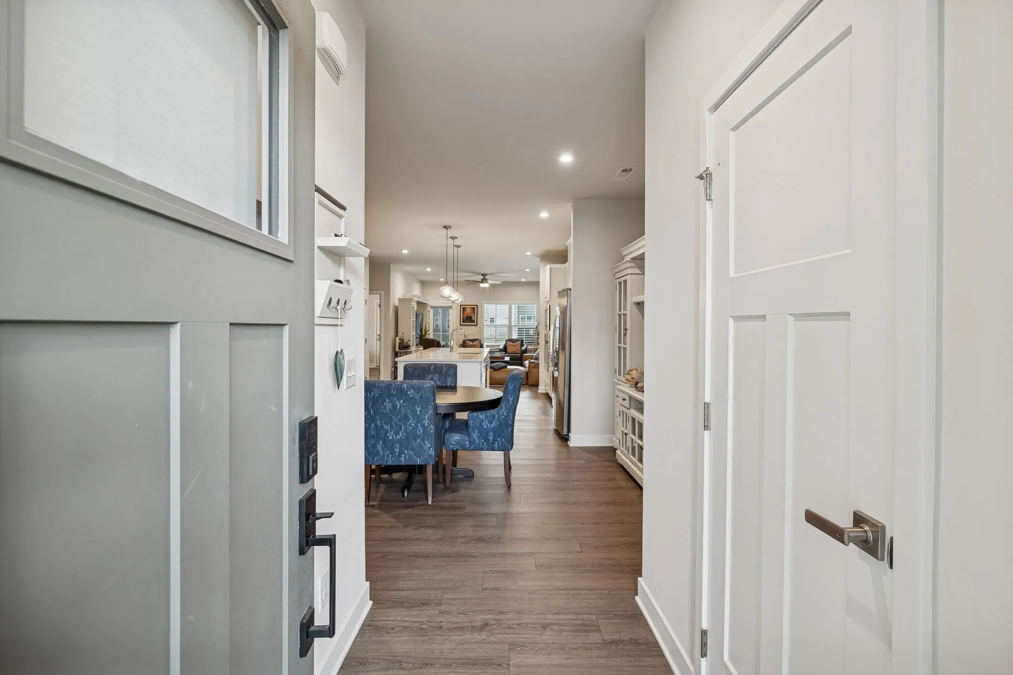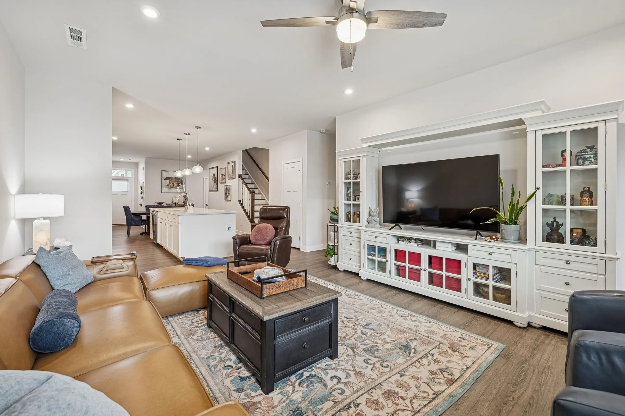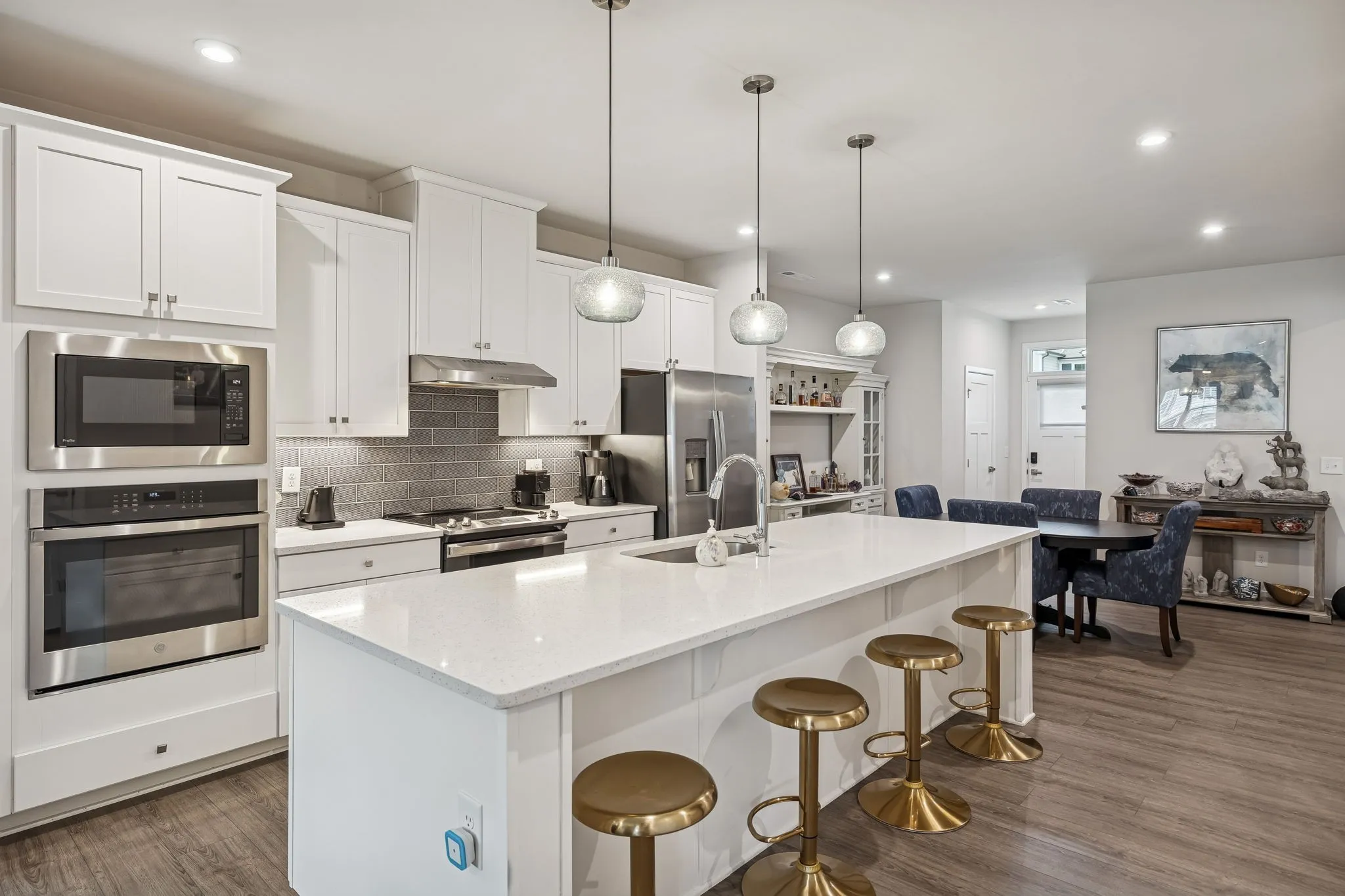When I say this 3-bedroom, 2.5-bath end-unit townhome has it all, I truly mean it. From the builder’s sought-after Craftsman Trim Package to more than $40,000 in thoughtful owner upgrades, every detail has been carefully designed and enhanced. One of the most notable improvements is the luxury vinyl plank flooring that runs seamlessly throughout the entire home—downstairs, upstairs, and even on the stairs. This creates a clean, modern look, that’s both stylish and low maintenance. Outdoor living is just as impressive. The spacious screened-in patio offers the perfect place to relax, while the additional uncovered patio provides room for grilling equipment—or even a cold plunge or hot tub. The fenced backyard makes it easy to have a special pet. Inside, custom wooden shelving and drawers elevate the primary closet, and the kitchen pantry and all additional closets feature matching custom wood shelving for exceptional organization. The primary suite also includes extra windows for abundant natural light, each outfitted with automatic blackout shades. A private door leads directly from the primary bedroom to the screened patio, creating a seamless indoor-outdoor retreat. The en-suite bath boasts a luxurious Roman shower with an upgraded shower door for a spa-like experience. Throughout the home, you’ll find wooden blinds, with plantation shutters adding character to the family room. Every bedroom is equipped with a ceiling fan for added comfort. The two-car garage has been transformed into a workout paradise, complete with durable mat tile flooring and additional LED lighting—perfect for a home gym or flexible workspace. The open floor plan is ideal for modern living, with the primary suite conveniently located on the main level. And the location simply can’t be beat. Just a minute’s drive—or an easy walk—puts you at Publix, along with restaurants, a car wash, coffee shops, a nail salon, pet store, gas station, and more. Don’t miss the opportunity to make it yours.