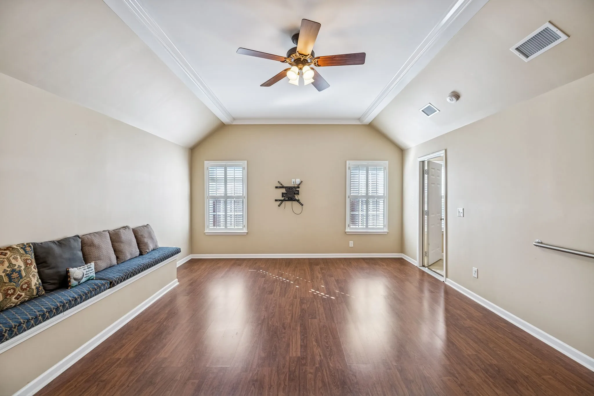 Don’t miss this spacious home in one of Murfreesboro’s most desirable communities: The Crossings at Savannah Ridge. This well-appointed home features white cabinetry and granite in the kitchen, hardwood flooring, and plantation blinds throughout. The extensive millwork and warm tones elevate the comfort of the home. Natural daylight flows in from the expansive windows. Relax by the fireplace in the living room or step outside into the large garden patio. The primary suite and guest suite are both on the main level with no steps from outside. The primary bathroom features a walk-in shower and double vanities. Upstairs you will find a huge third bedroom with en-suite bathroom, a bonus room, and 700sqft of unfinished attic storage space (not included in square footage). All appliances remain. With 3 bedrooms, 3 full bathrooms, and multiple entertaining spaces, this home gives you all sorts of possibilities. The quiet neighborhood is adjacent to Indian Hills Golf Club – you couldn’t ask for a better area! High speed fiber Internet. HVAC approx 5 years old, water heater approx 3 years old. Schedule a private showing and see for yourself.