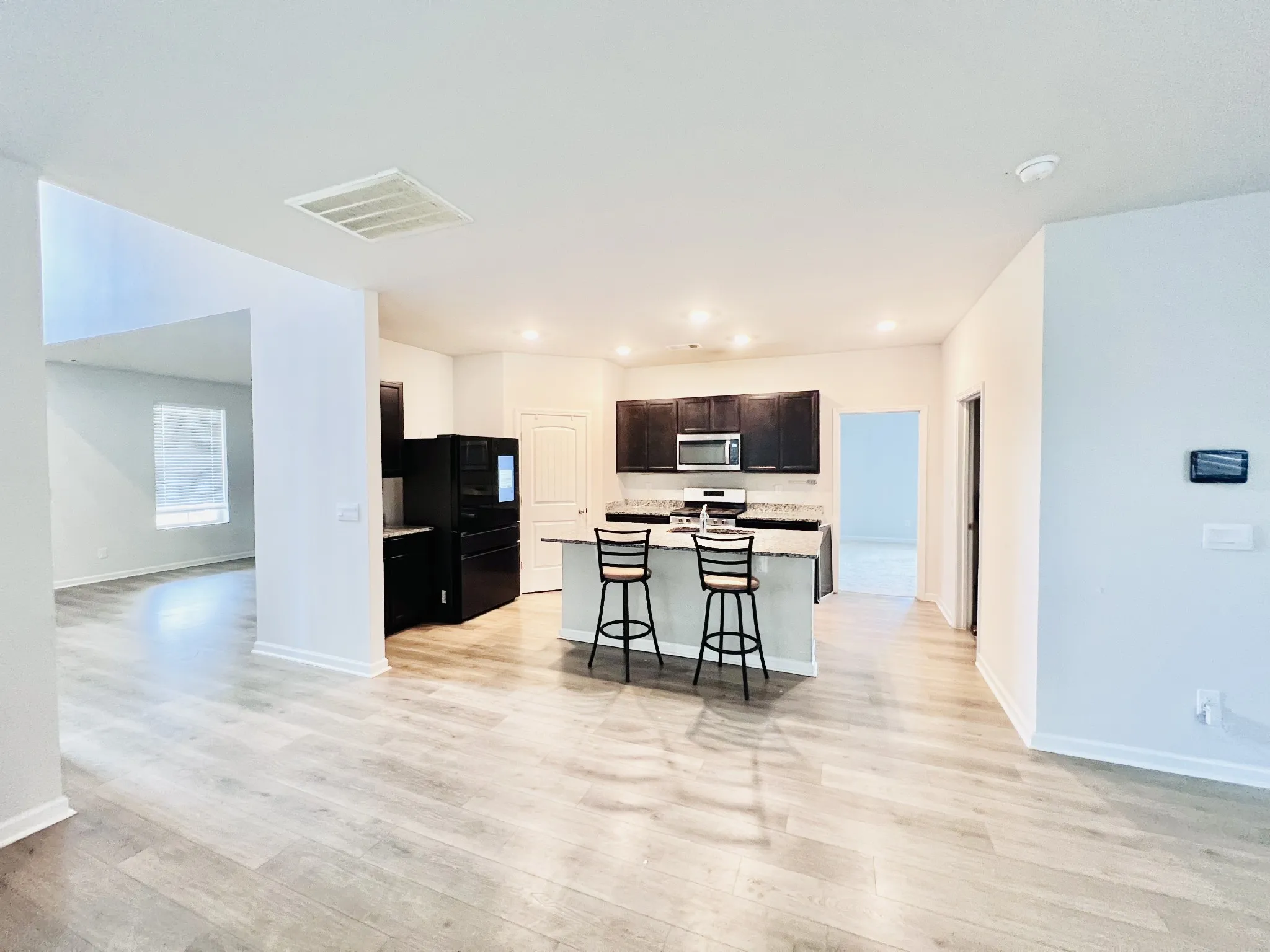 Stunning, thoughtfully designed floor plan featuring a breathtaking second-floor. convenient rear-entry parking. The primary suite is located on the main level, along with a versatile flex/office space—perfect for working from home or additional living needs.