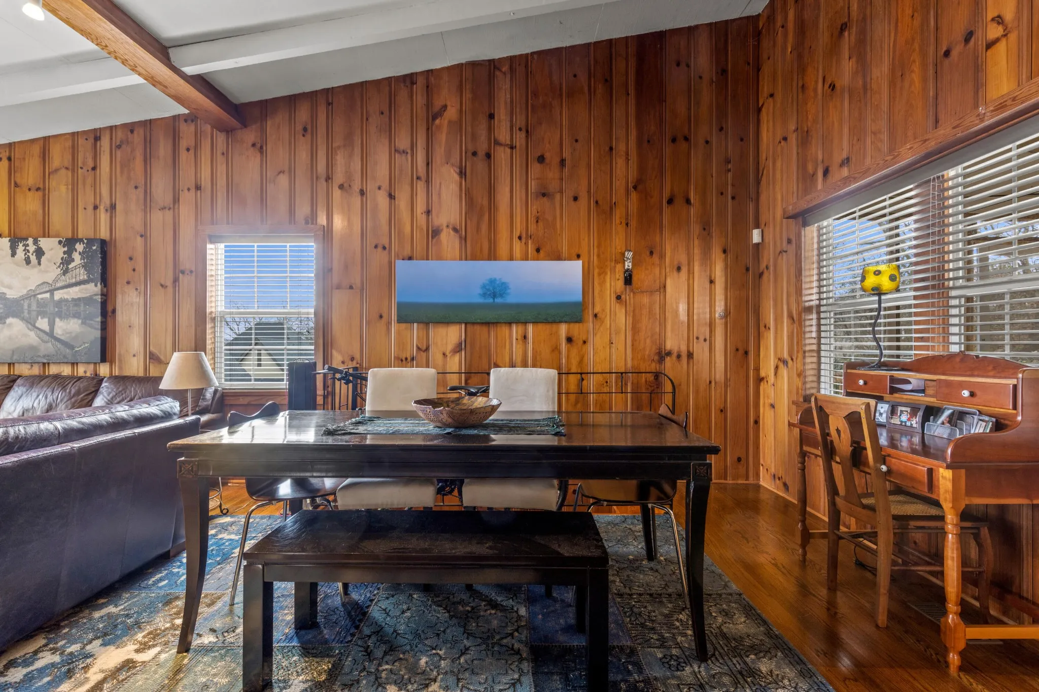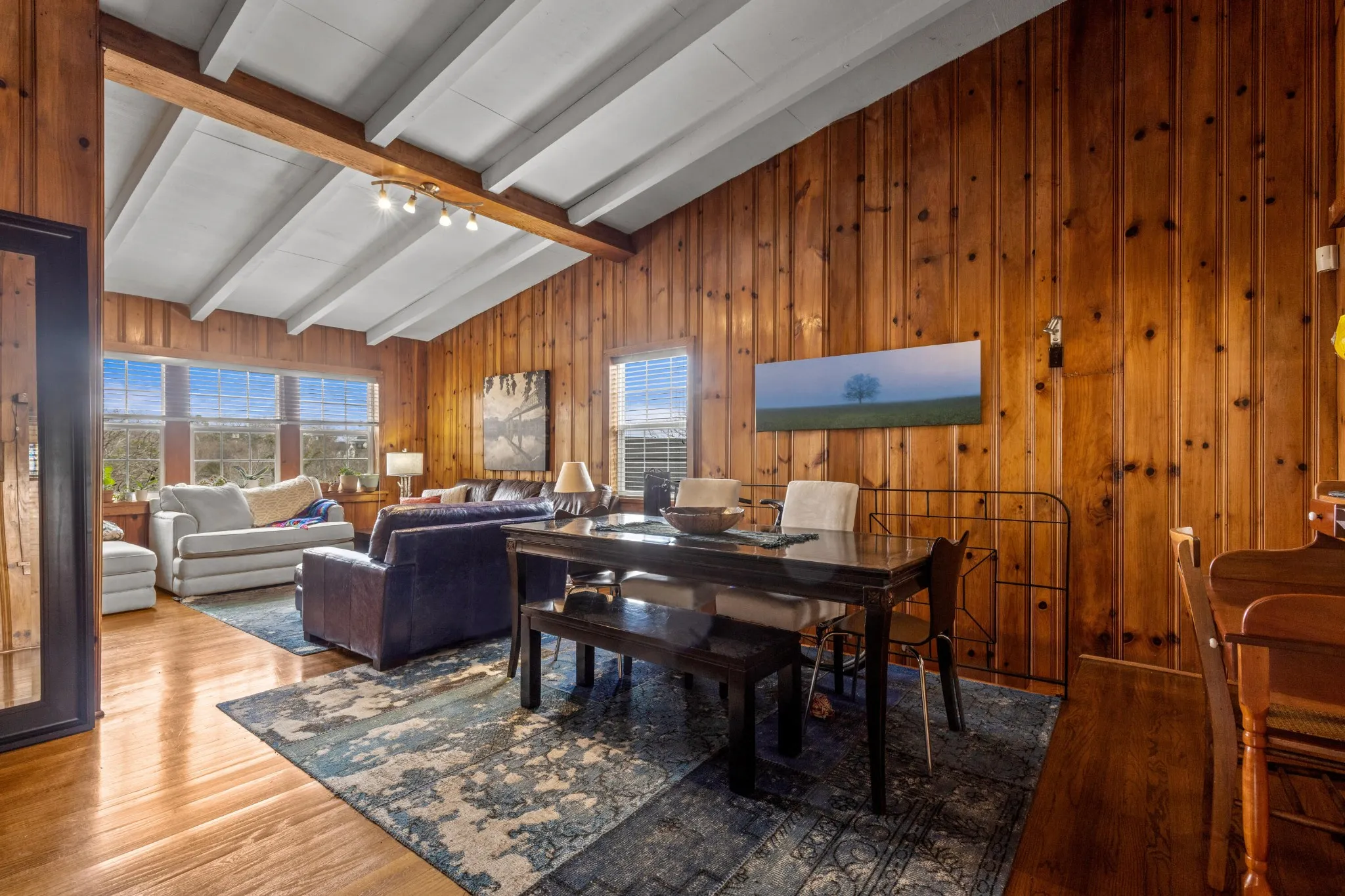 Inside, you’ll find a warm and inviting living space filled with natural light and rustic charm. The thoughtful layout features two spacious bedrooms and two full baths, providing flexibility for guests, a home office, or additional privacy. The kitchen and living areas flow comfortably together, creating an easy setting for both everyday living and entertaining.