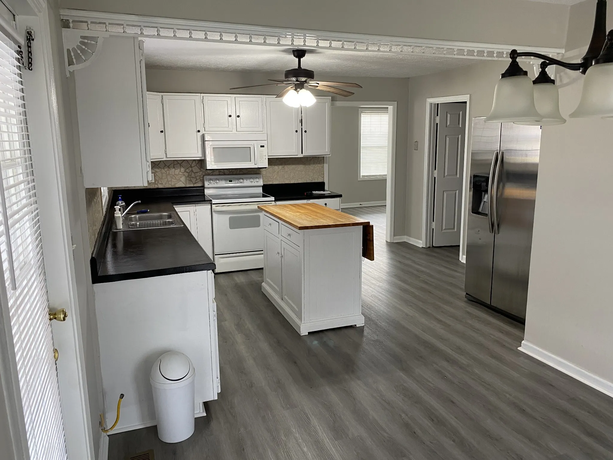Adorable 4 bedroom 1.5 bath with new paint, and vinyl plank floors. Large eat in kitchen with a screened in patio. Large storage building and a fire pit. Great yard, close to Clarksville and I-24 exit 1