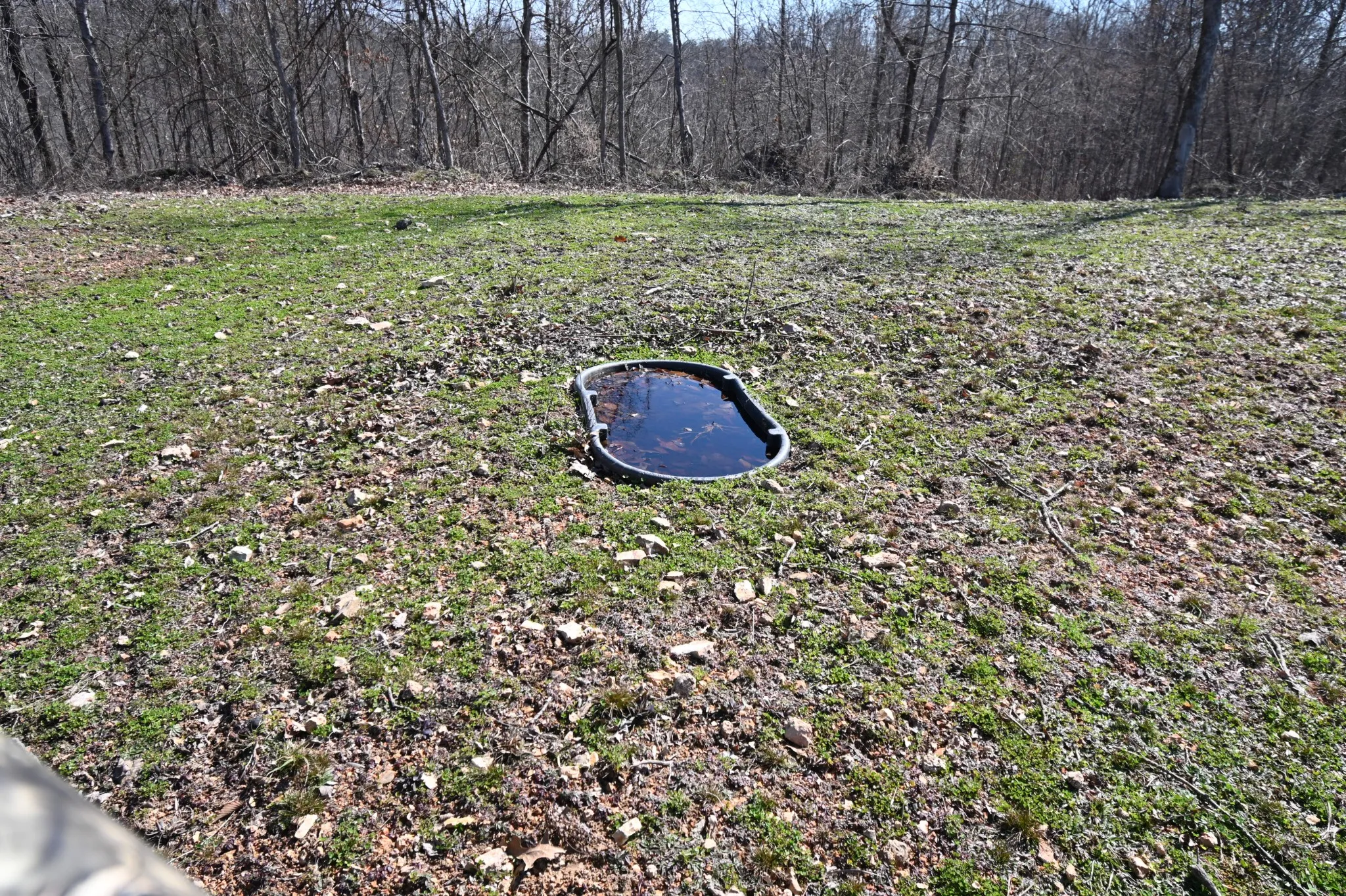 • 50‑gallon watering tub positioned in one of the food plots