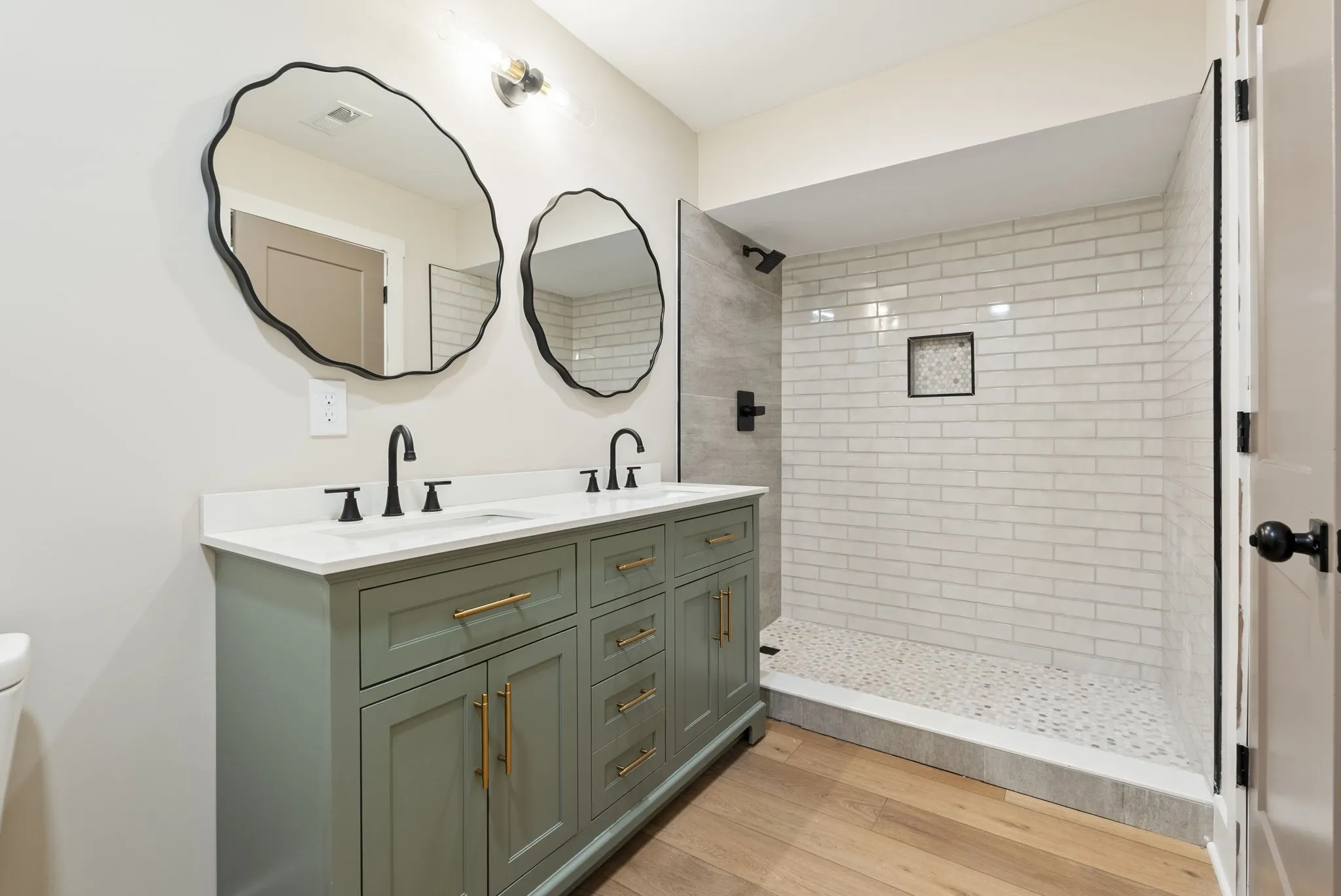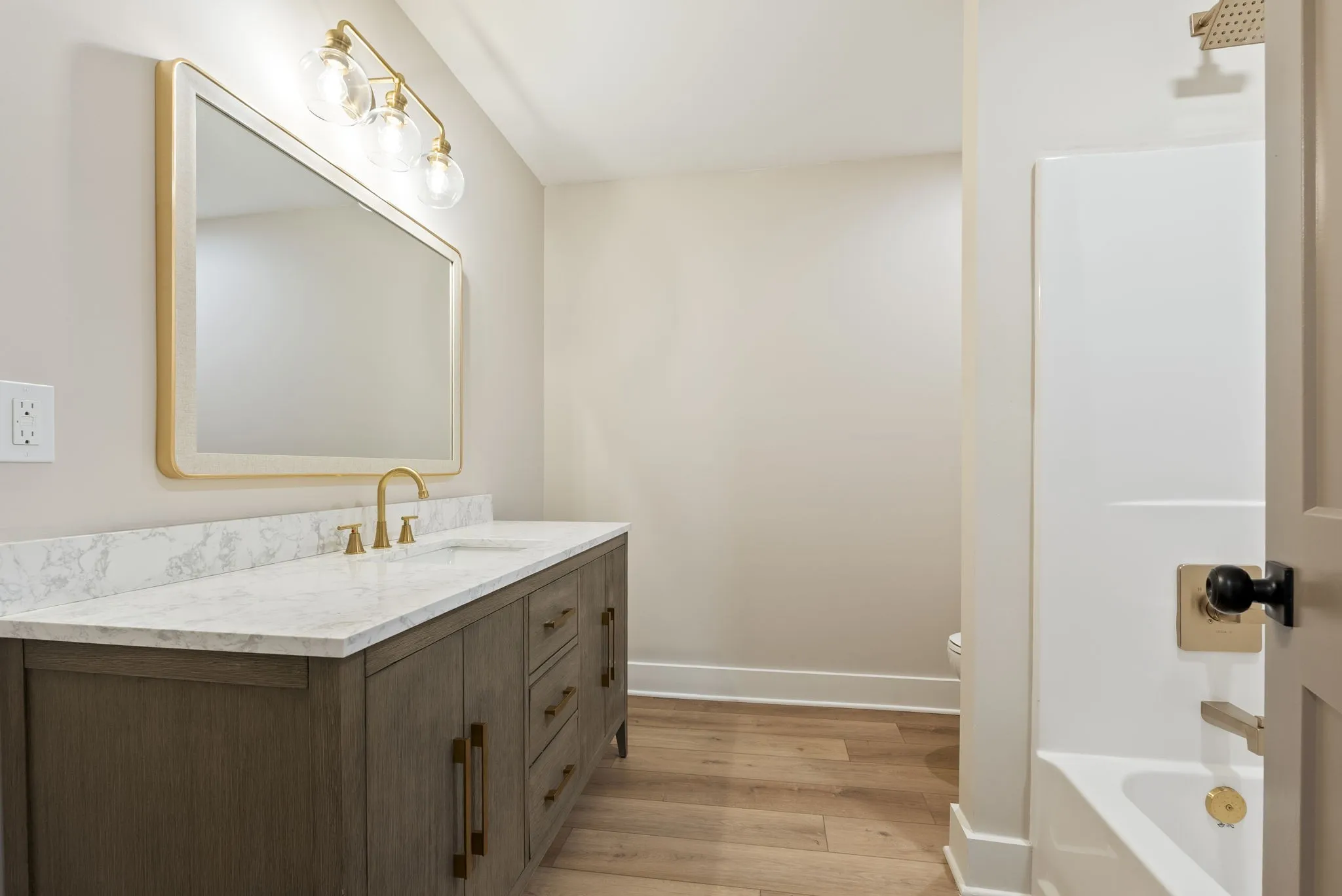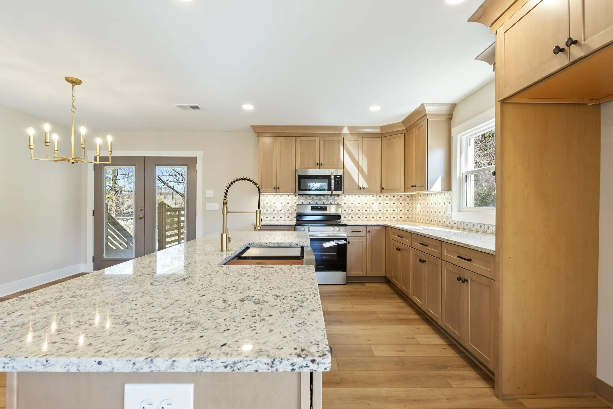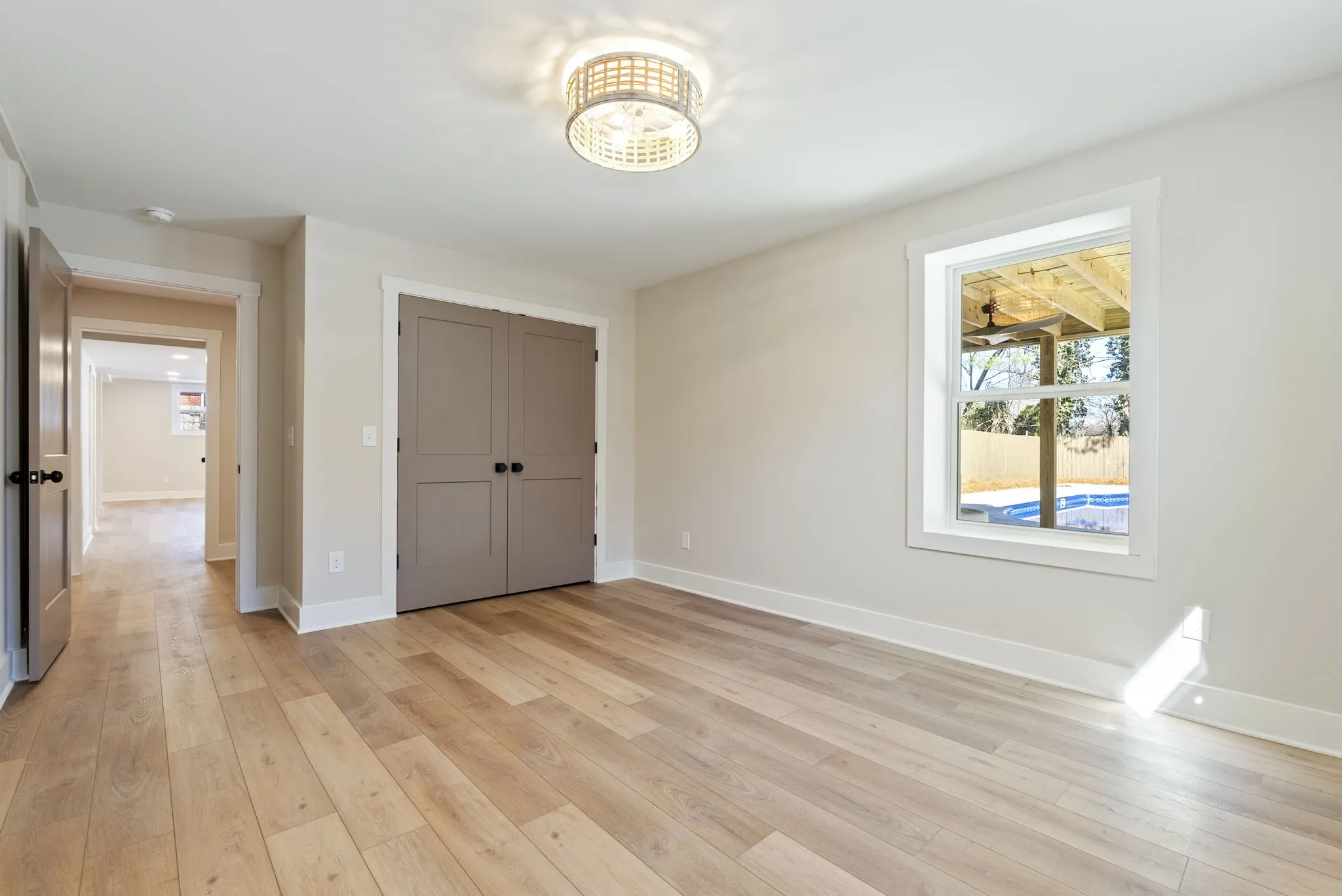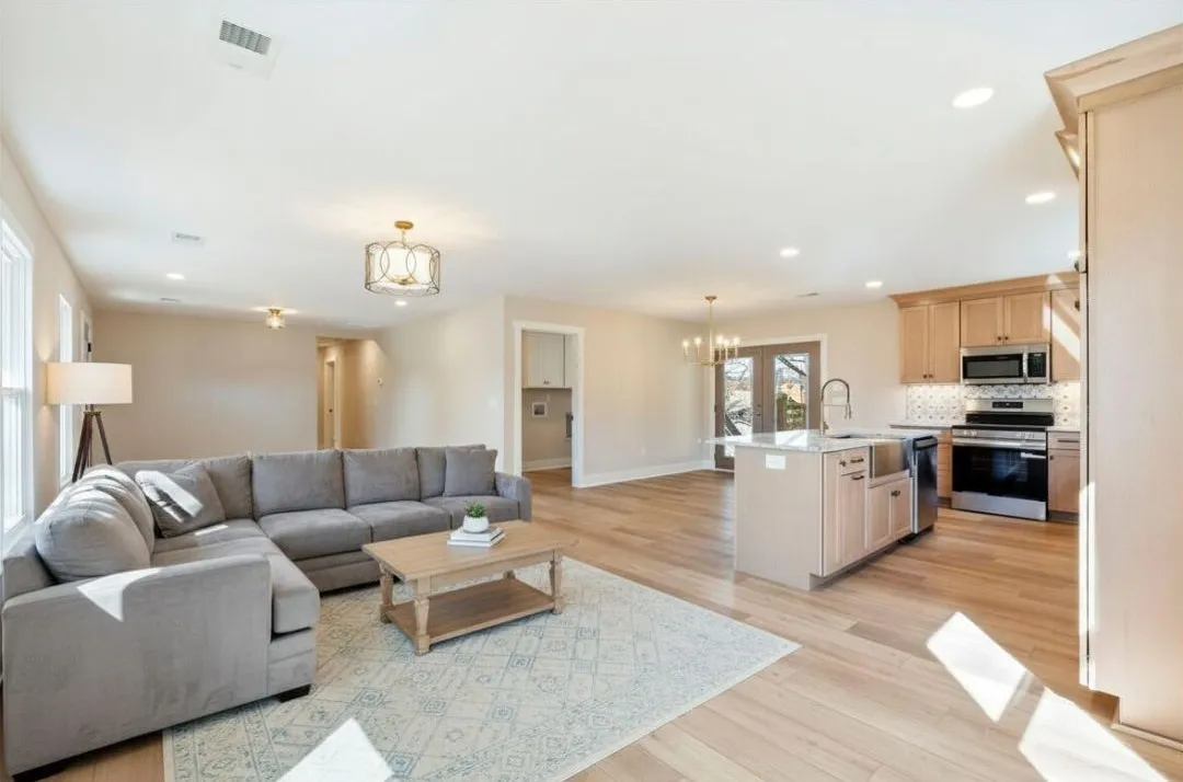 Every room is generously sized, creating a comfortable flow that feels both open and substantial. The fully renovated interior showcases neutral wide-plank luxury vinyl flooring throughout, all-new kitchen cabinetry with granite countertops, a stainless sink, and an open-concept layout designed for gathering and entertaining. The bathrooms have extensive tilework and finished with elevated fixtures, while custom closet organizers add thoughtful function to everyday living.
