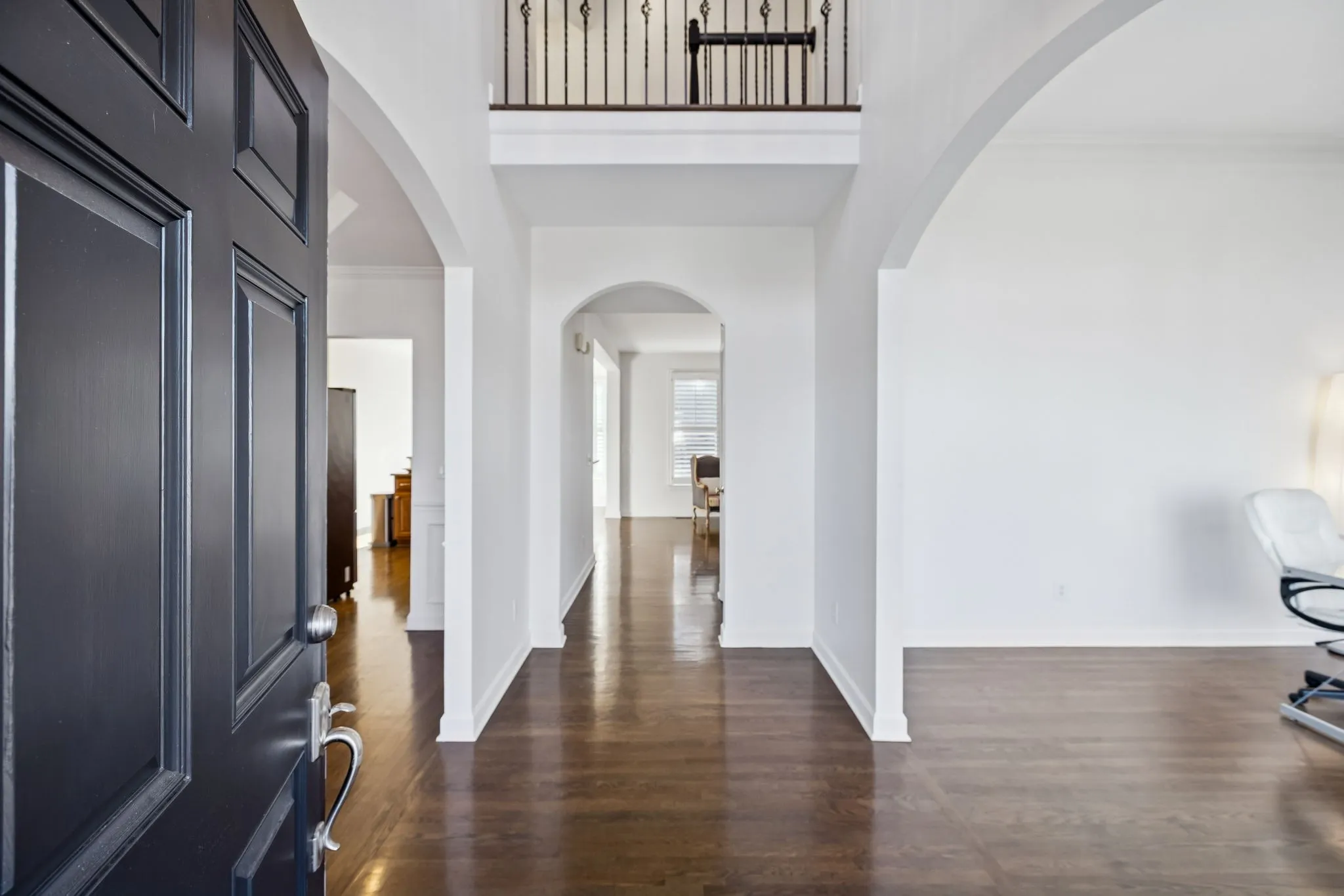 Inside, you’ll find abundant hardwood flooring and a modern floor plan that works well for everyday life. Two separate flex or formal areas offer room for dining, a home office, or additional gathering space. A secondary bedroom with a full bath on the main level is ideal for guests or multigenerational living.