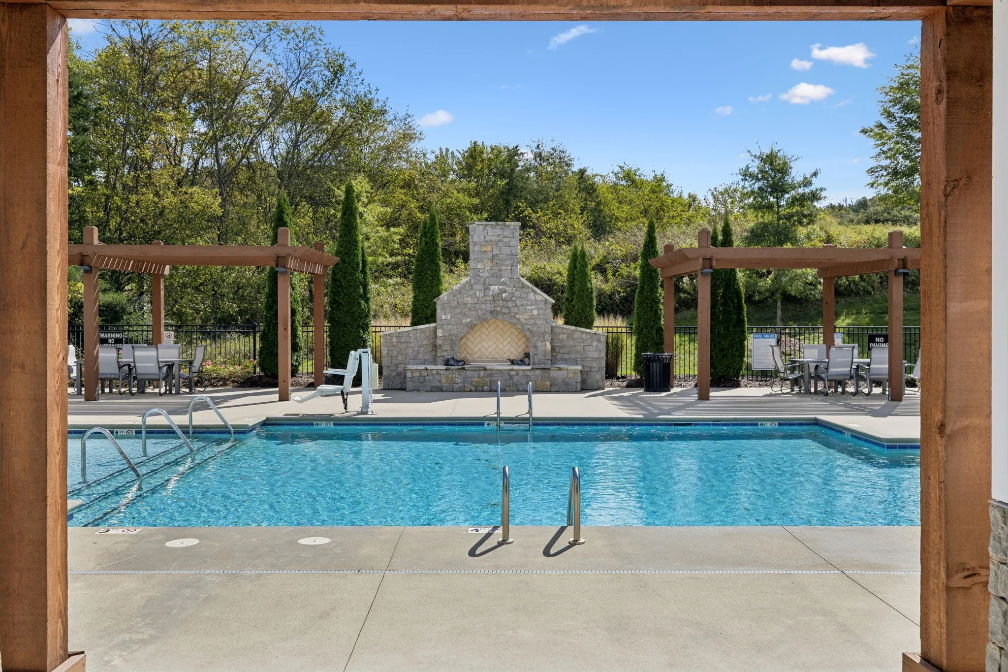 Step outside to enjoy the covered outdoor patio with a wood-burning fireplace, creating the perfect space for relaxing evenings or entertaining guests year-round.