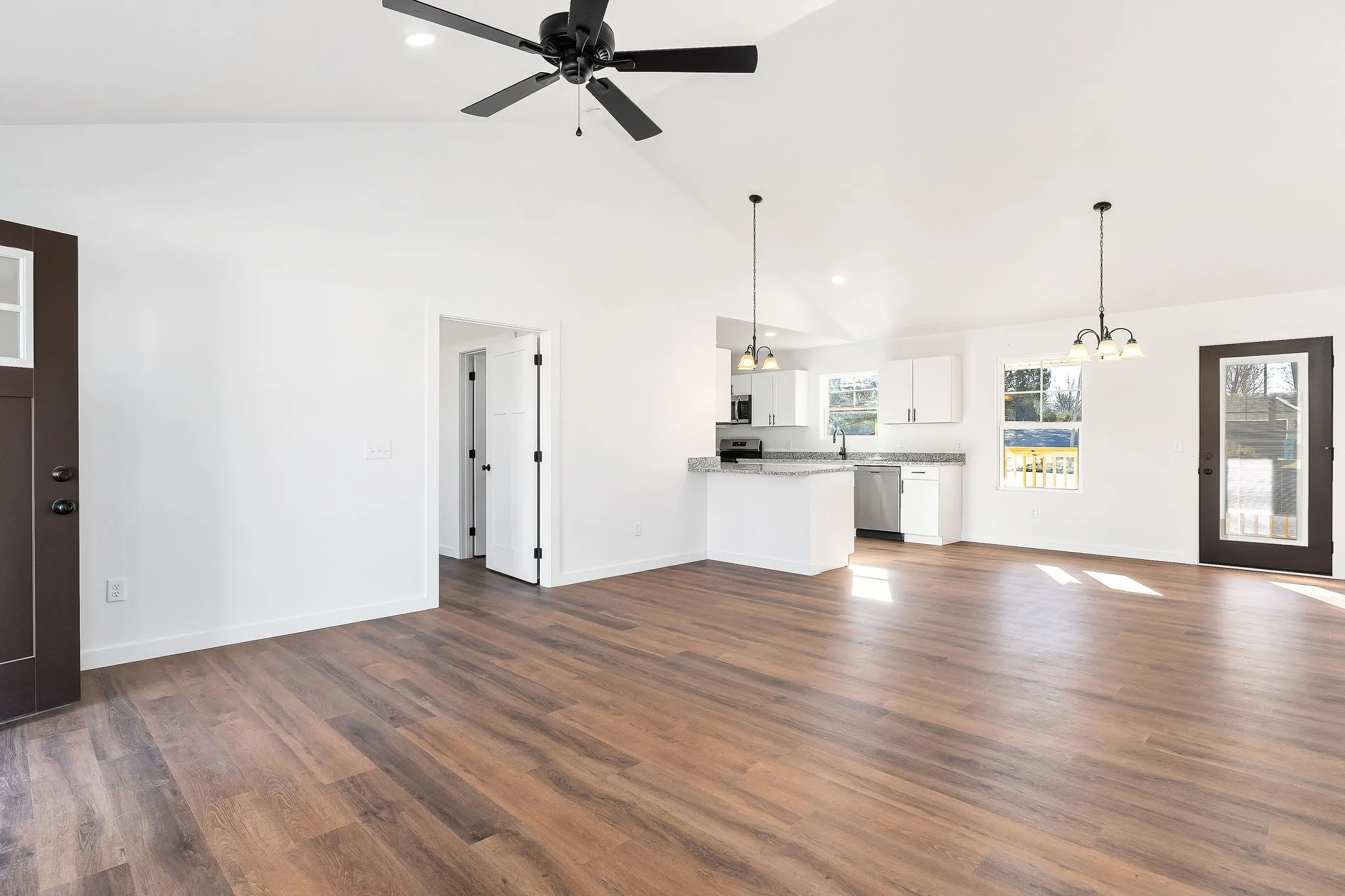 New Neighborhood – New Construction Homes. The home offers 3 bedrooms, 2 full baths, open kitchen and living room ideal for entertaining, granite countertops, luxury vinyl flooring, vaulted ceilings, ample storage and a 1 car garage. Additional homes and floor plans available.