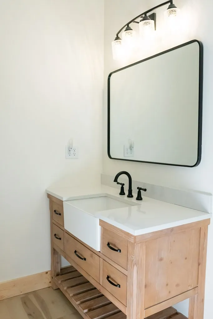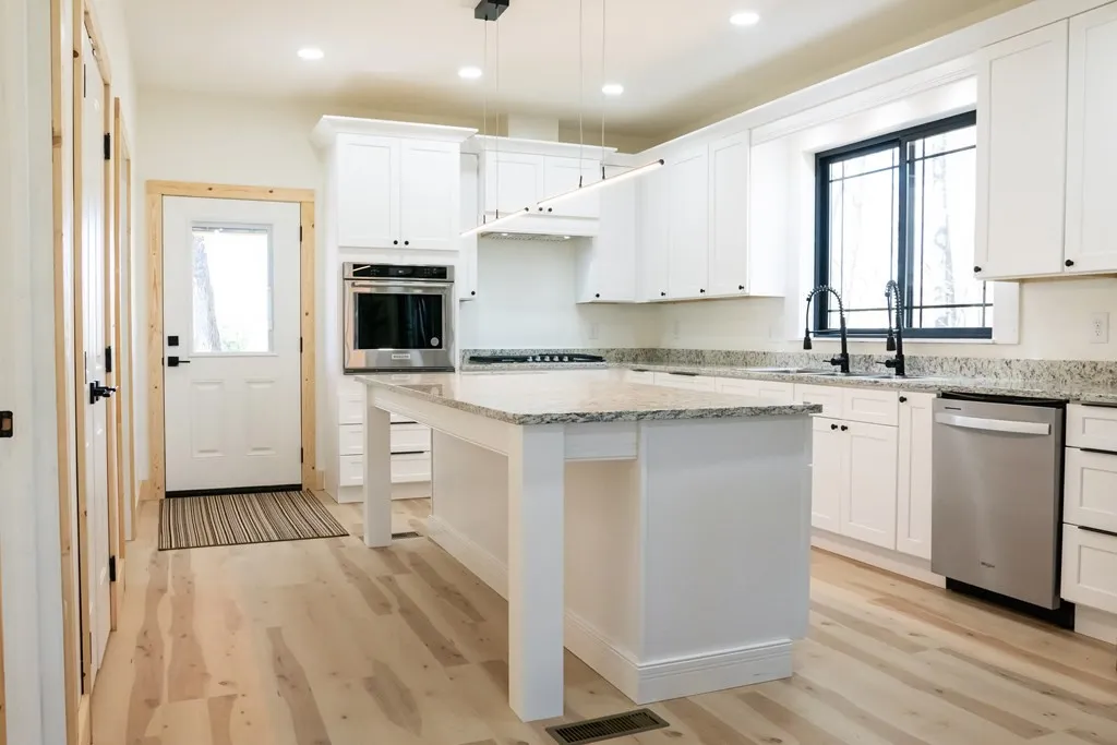 In the country but 7 miles from city limits – This custom-built log siding cabin home is rustic with exposed beams and natural wood trim but modern with its chef-worthy kitchen and sleek lighting. There are 9 ft ceilings, 5 ft Andersen black frame prairie style windows, a 10 ft closet, LVP flooring and matte black hardware throughout. Truly a must see!