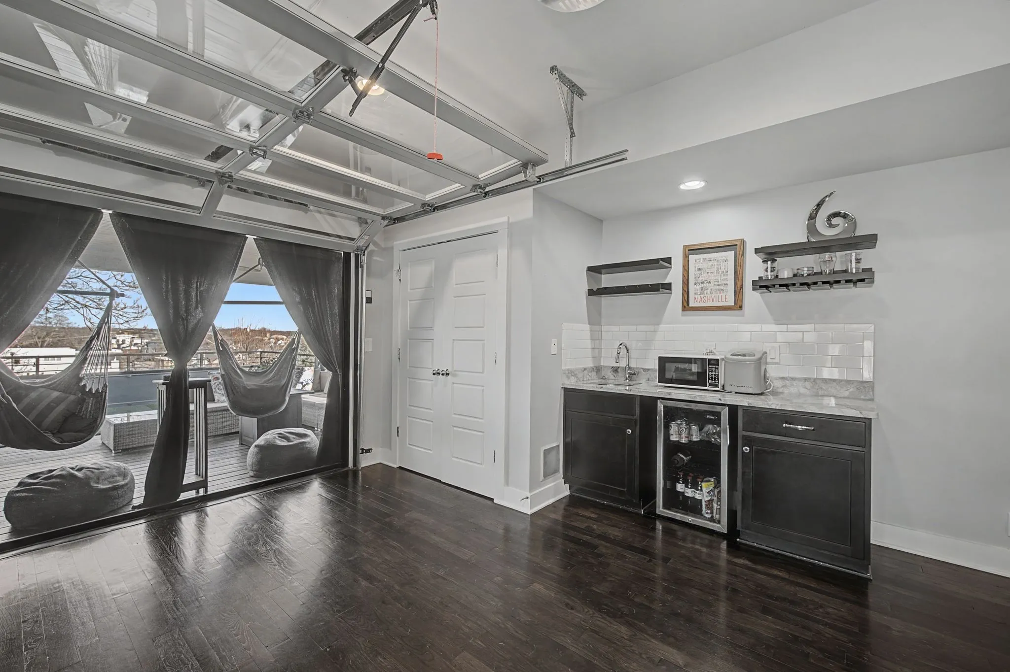 The 3rd floor elevates the experience. A spacious bonus room with a wet bar sets the stage for entertaining or relaxed evenings in. Just outside, a partially covered rooftop deck anchored by a gas log fireplace captures views of the Nashville skyline. Designed for year round enjoyment, it brings the energy of the city into your own private setting.