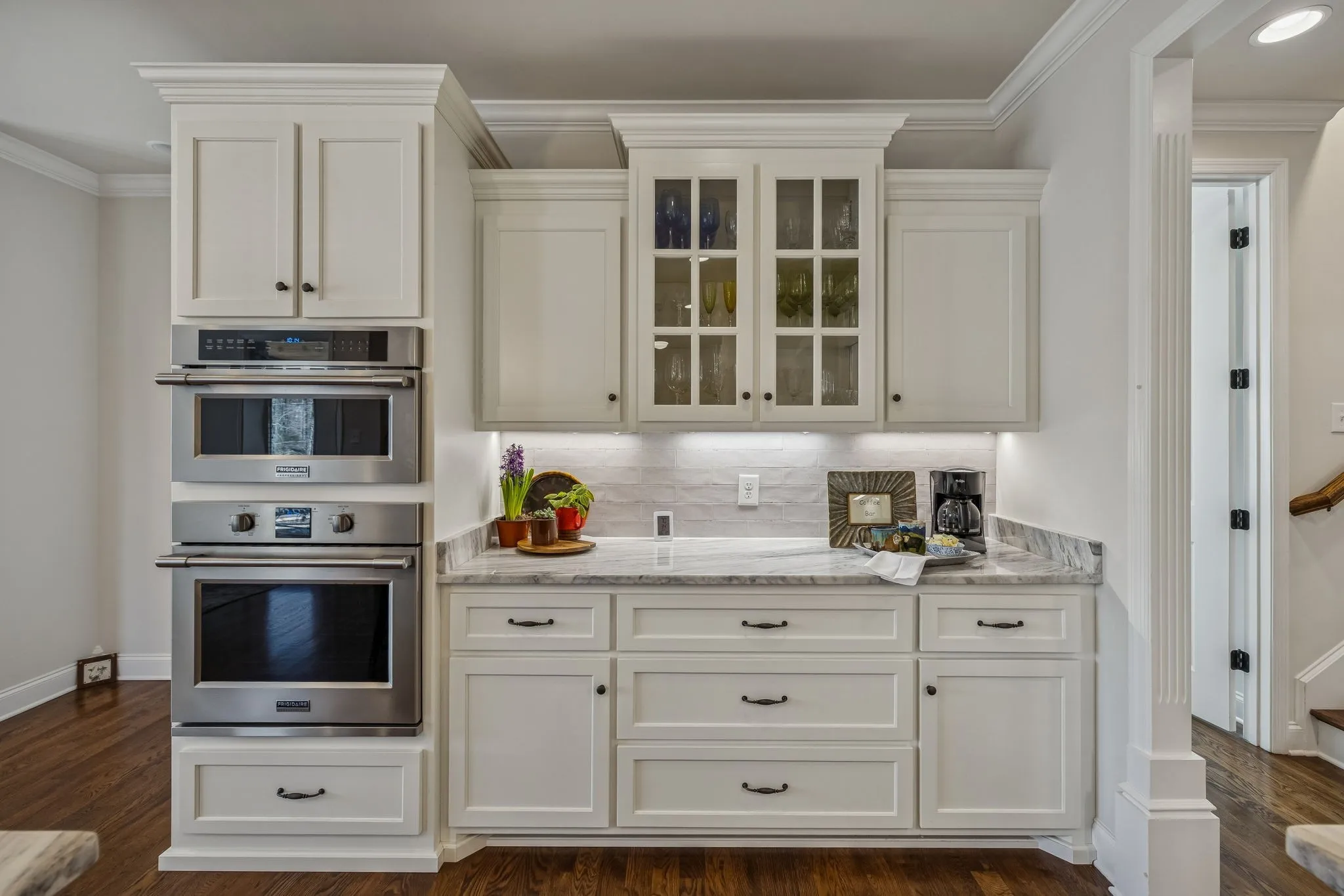 plantation shutters, front and back porches, 8′ doors, 10′ ceilings, marble countertops in Kitchen and granite countertops in Baths. Crawlspace is incapsulated, full yard