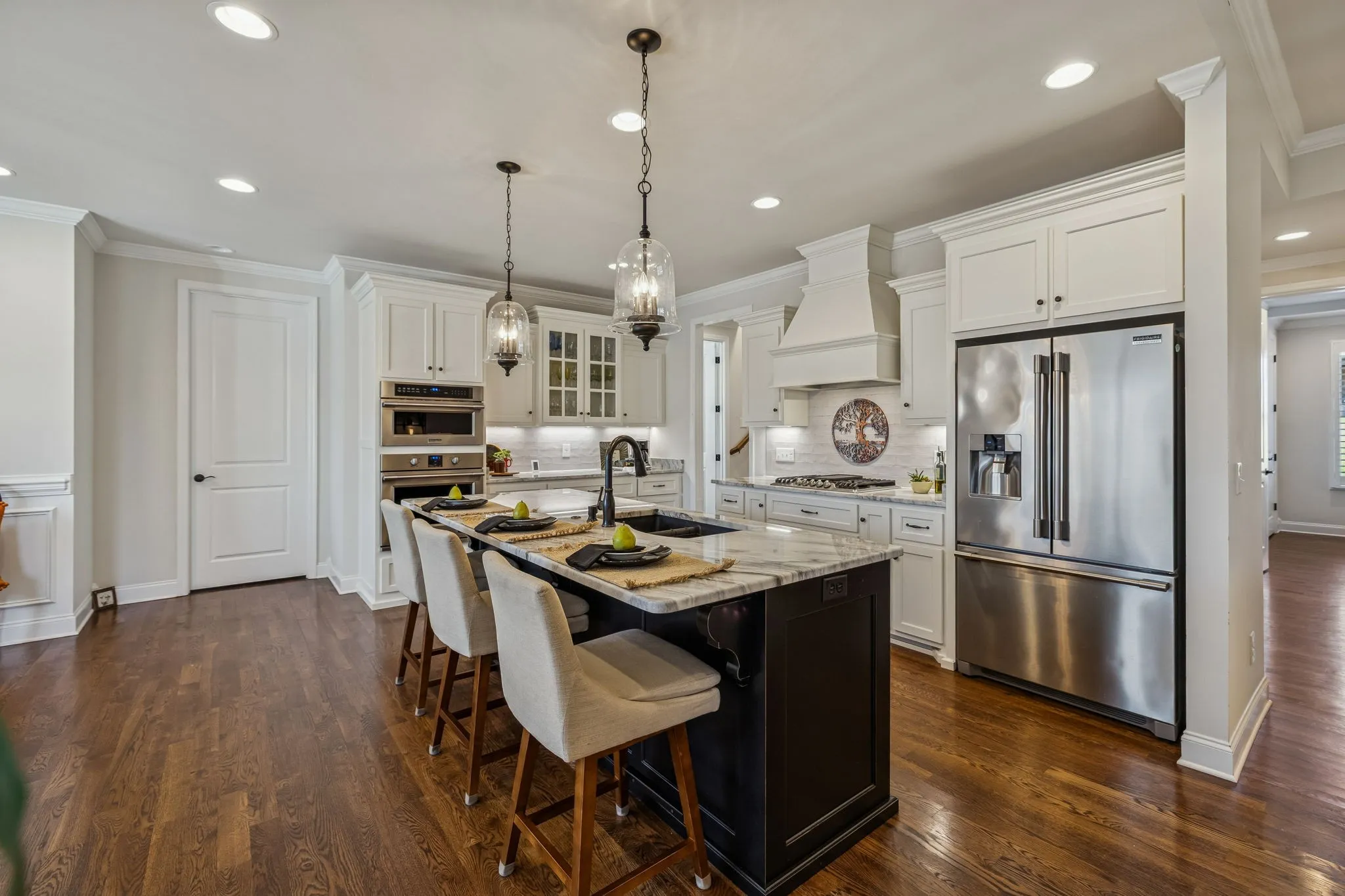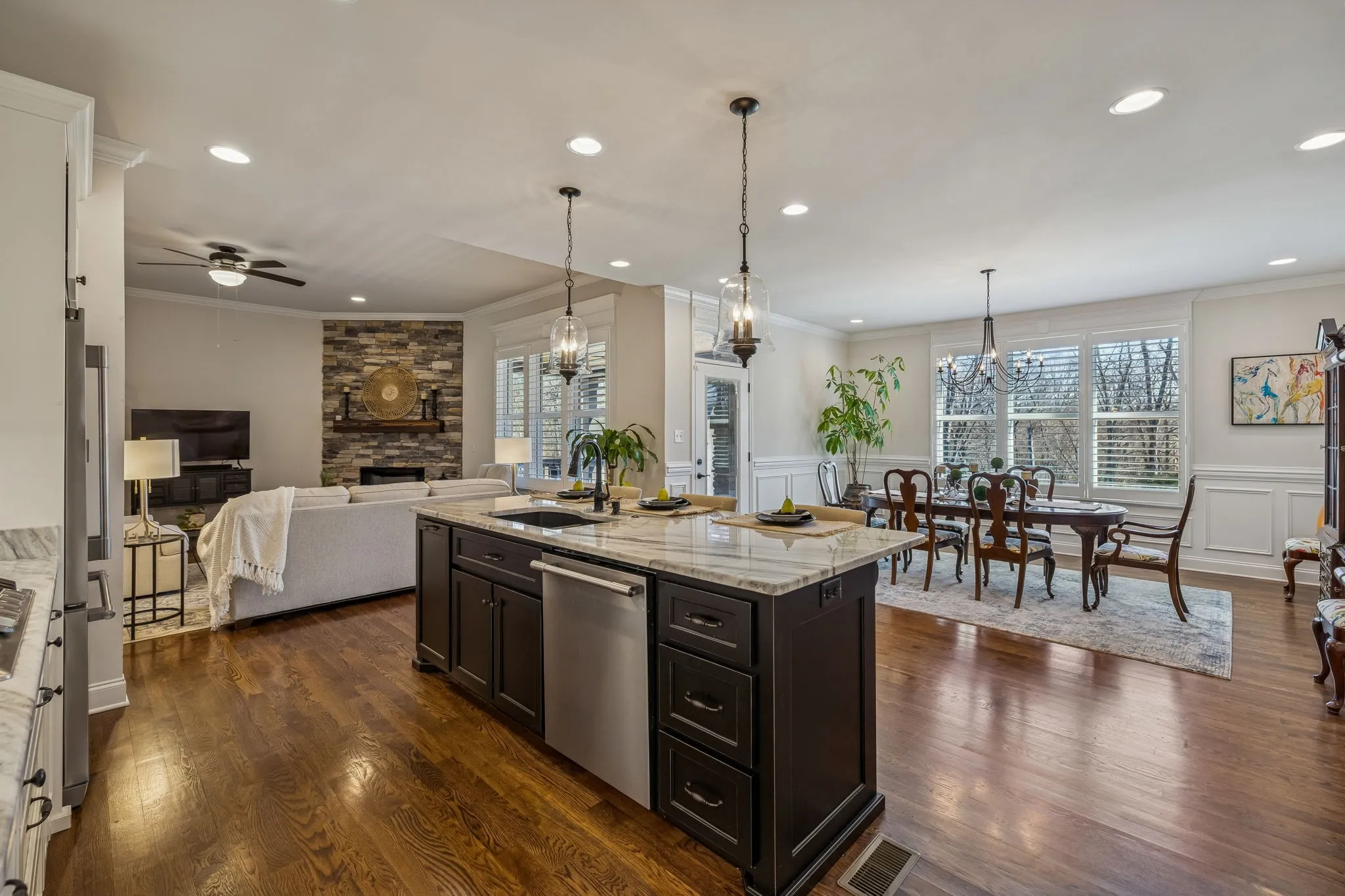 This home blends beauty and comfort in a spacious floorplan. This is an exceptionally well maintained home! Professionally measured with 3625sf. – one of the largest finished homes in the neighborhood. Designed with comfort and elegance – five bedrooms (3 on the main level) and 3.5 baths. The entire home has hardwoods,