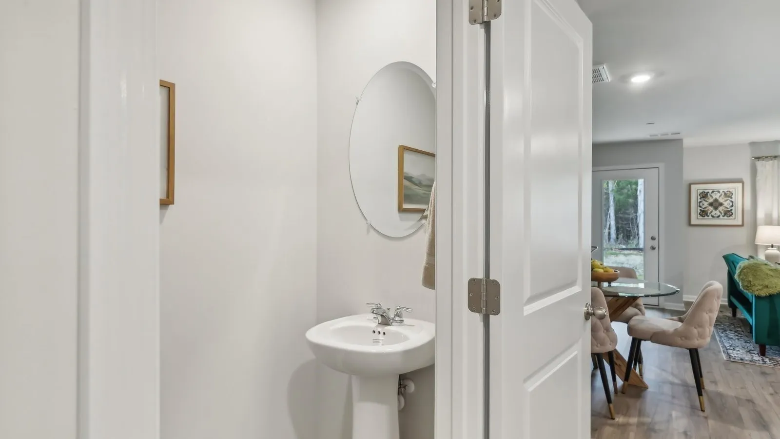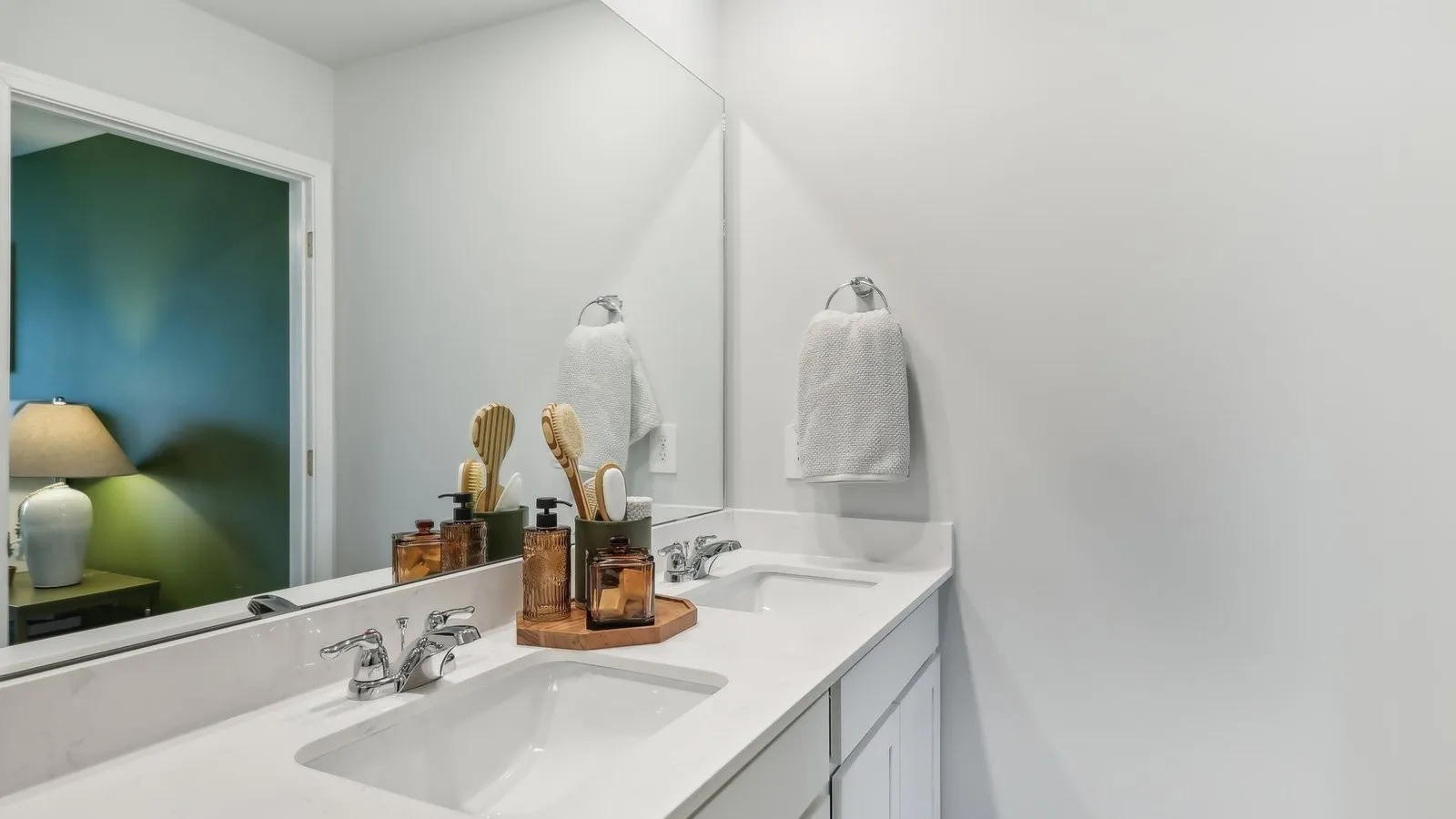 The Pearson is one of our newest townhomes at Saddle Trace in Lewisburg, Tennessee. This modern, open-concept floorplan features 3 bedrooms, 2.5 bathrooms, and a 1-car garage within 1,418 sq. ft. Enjoy low-maintenance townhome living paired with elegant design found only in the Pearson. Upon entering, a foyer and powder room welcome you before opening into the spacious kitchen and living area. The kitchen offers quartz countertop seating and plenty of room for a dining table. Upstairs, the primary bedroom boasts a walk-in closet and an ensuite bathroom with a double-bowl vanity. Two additional bedrooms provide ideal space for children, nurseries, or offices, each with ample closet space. The hallway includes a full bathroom and a convenient upstairs laundry room. Like all Nashville D.R. Horton homes, the Pearson comes equipped with the Home is