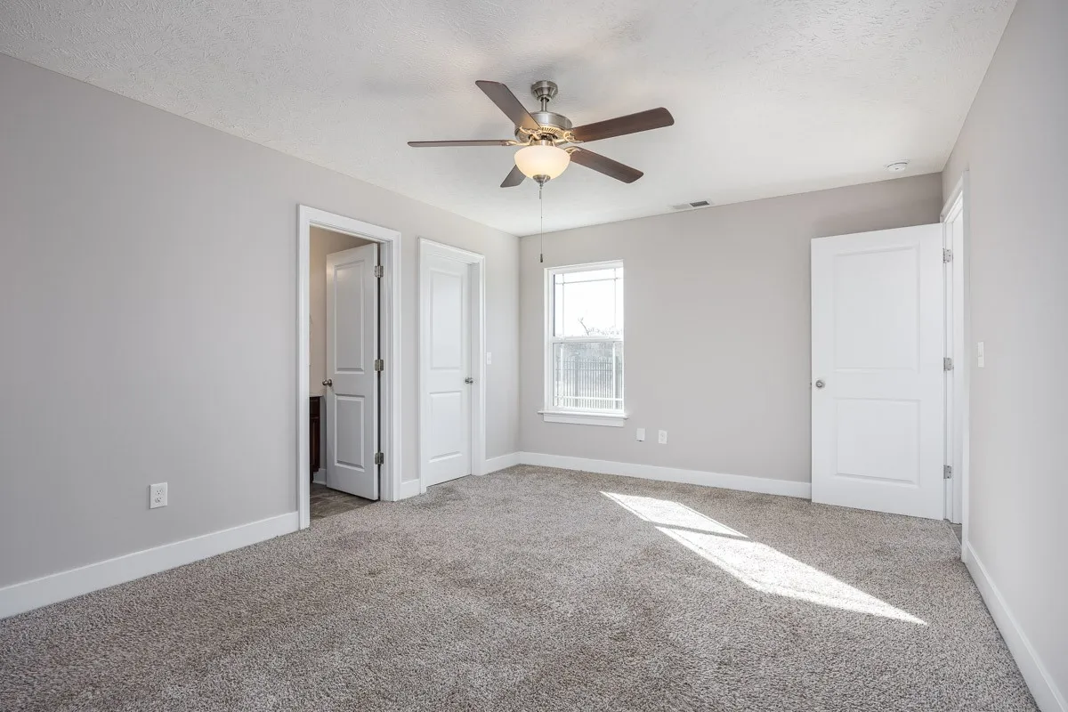 Main-level primary suite with private bath and closet. Three additional bedrooms upstairs and 2.5 total bathrooms.