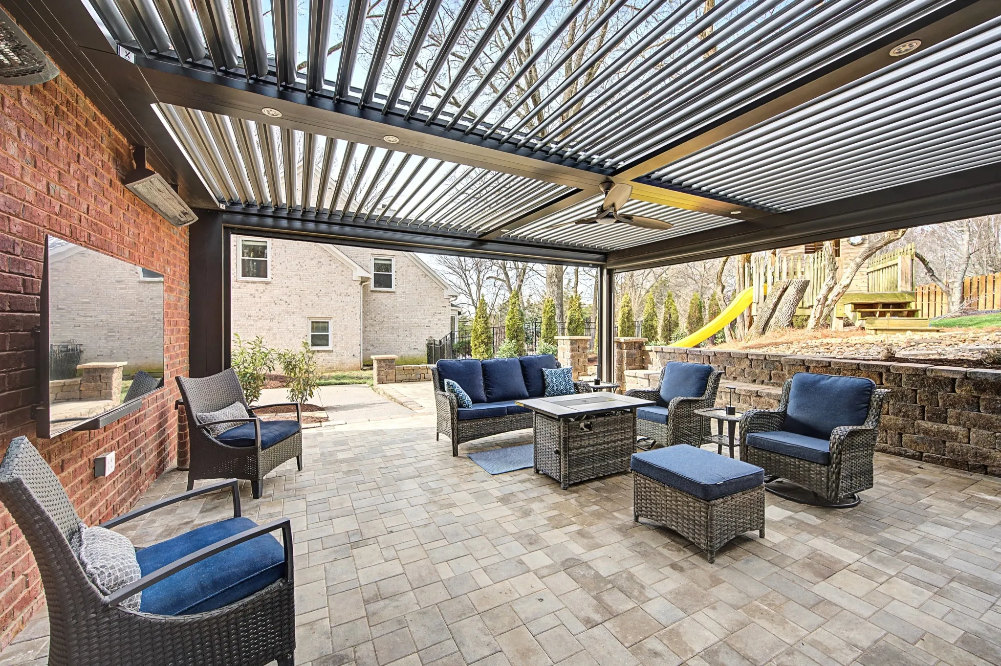 Retreat to the spa like primary suite featuring a freestanding soaking tub and oversized walk-in shower, or head downstairs to the finished basement—the perfect spot for a media room or man cave. Step outside to a show stopping new two-level patio with retractable screens and a StruXure Pergola that opens or closes for year-round comfort—ideal for relaxing or entertaining.