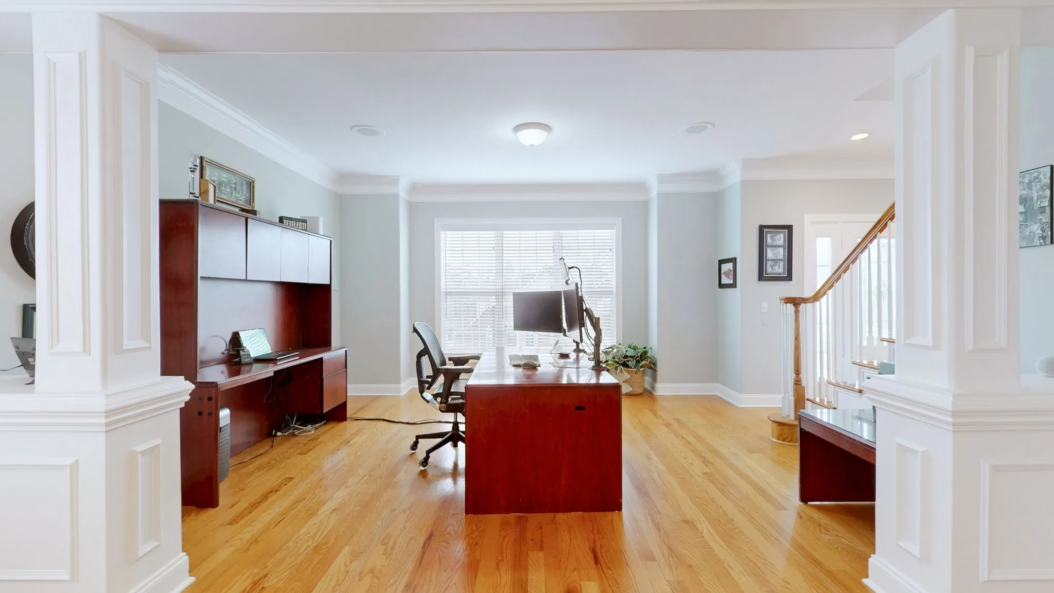 Two other generously sized bedrooms are located on the opposite side of the house upstairs and feature walk-in closets. The hall bath has a double sink vanity and a separate room for the shower/tub combo and toilet making morning routines a breeze.