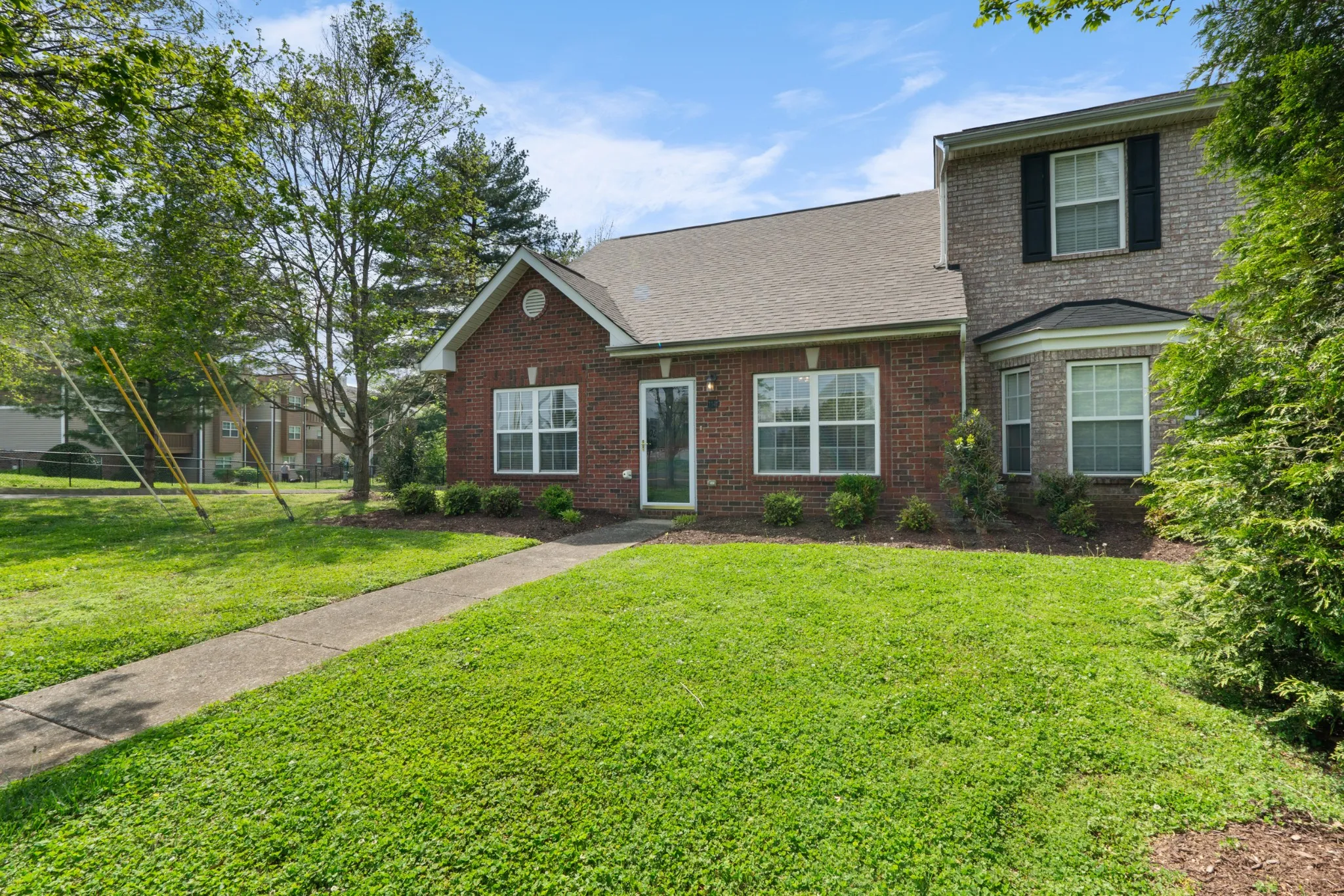 Live just one mile from charming, fun, historic downtown Franklin!! Immaculate, well-maintained end unit townhome with back patio facing treed community green space. Highly rated and sought-after Franklin High School district! Brand new hot water heater, new granite countertops and cool backsplash! The HOA maintains the exterior, lawn, and pest control. Primary and 2nd bedrooms conveniently on the main level.