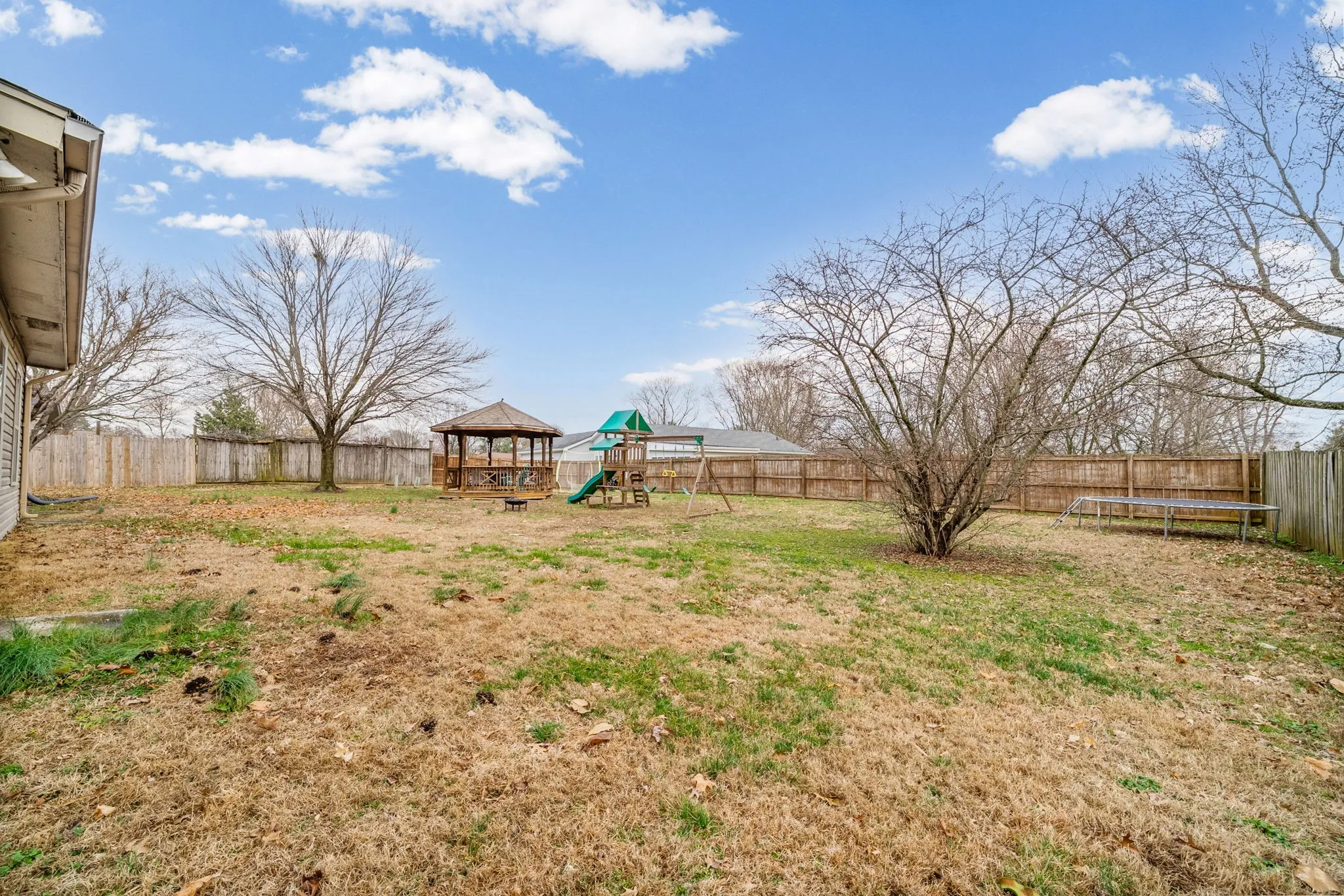 This well‑appointed 3-bedroom, 2.5-bath home offers exceptional versatility with a large bonus room (could be 4th bedroom) featuring an exterior door that leads to a covered patio—ideal for entertaining.The fully fenced backyard includes a substantial gazebo equipped with electricity, providing a perfect outdoor living space. The expansive primary bedroom includes its own private entrance, and the interior is enhanced by a cozy fireplace and a dedicated dining room that elevates everyday living. Eat in breakfast nook, laundry hook up with french doors to go to the third additional patio, formal dining room, and large foyer. Must see all of the charm this home has to offer. Driveway is extended with additional parking, and a 2 car attached garage.