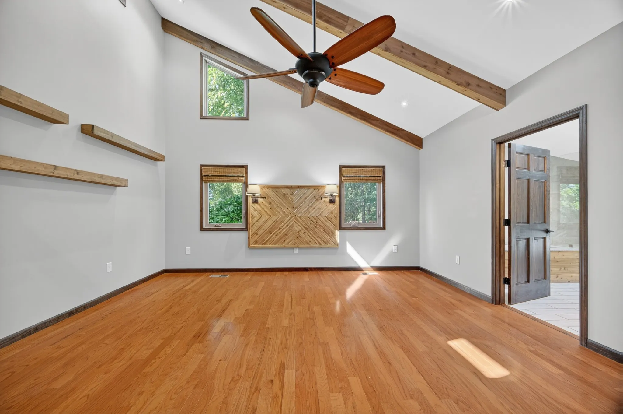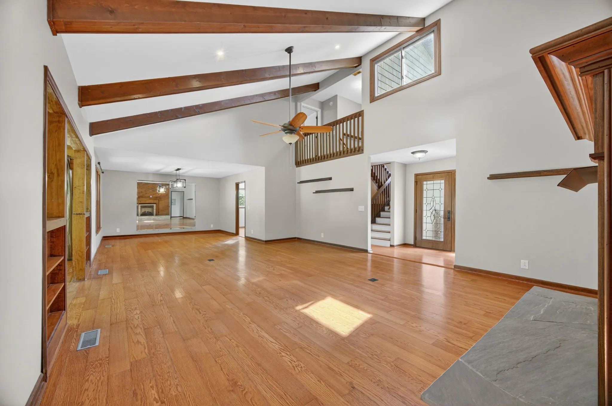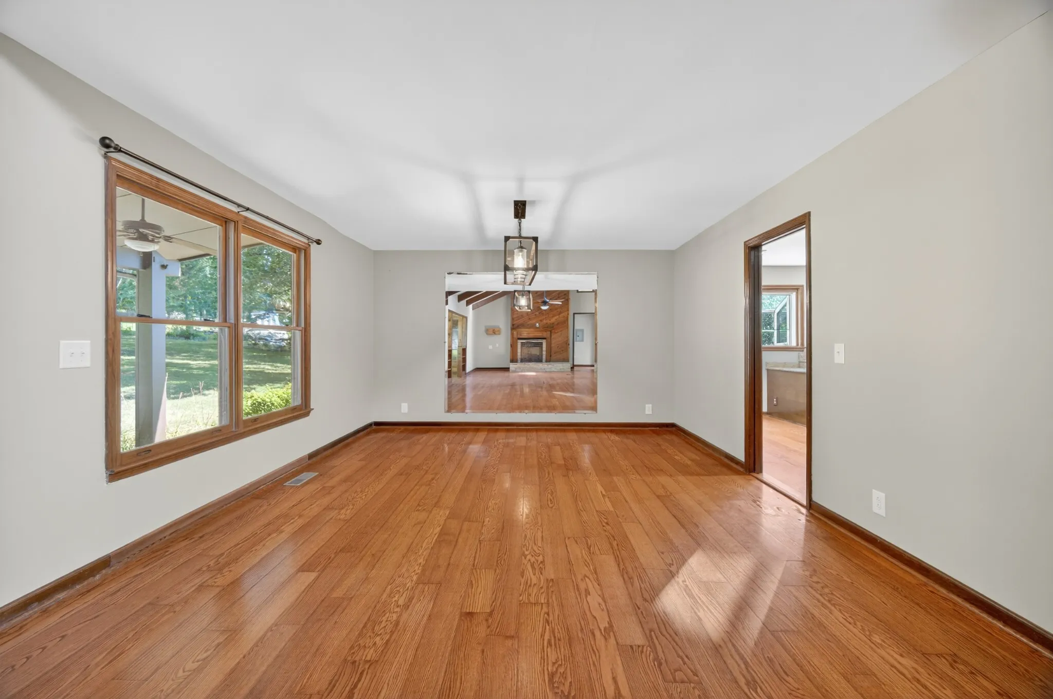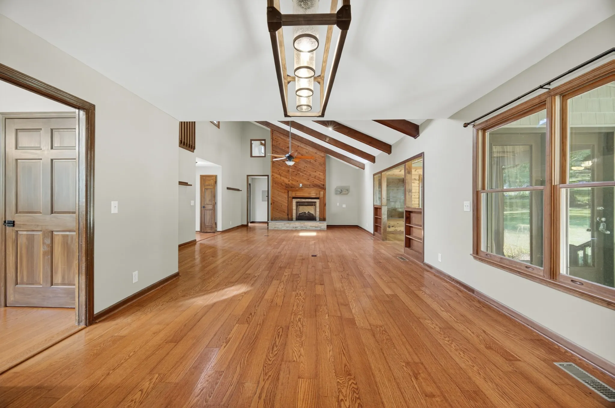 This is a one-owner home, thoughtfully designed and built by the sellers with attention to detail, comfort, and function. Step inside to discover soaring vaulted ceilings, see-through double sided ventless fireplace, solid core doors, and rich hardwood floors throughout the main level. The open-concept layout flows effortlessly from the spacious great room to the formal dining area and into the sunroom, perfect for quiet mornings or evening reading. Suites on first and third floor creating options like multi-generational living, etc.