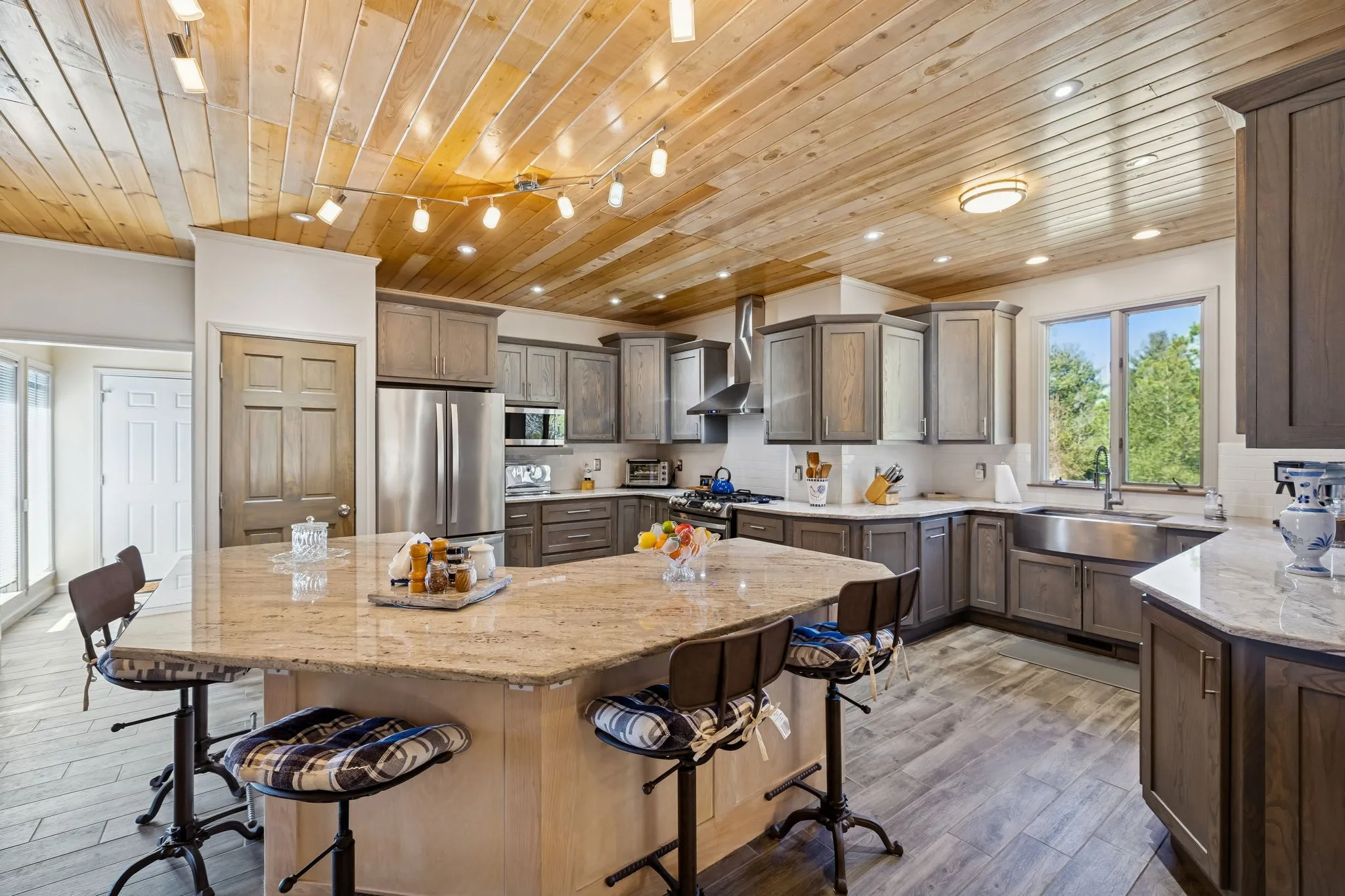 The kitchen truly serves as the heart of the home, offering expansive granite countertops, stainless steel appliances, and a farmhouse sink—all designed for gathering and entertaining. With generous prep space and room for conversation, it’s the perfect place to prepare meals after a day spent enjoying the property, whether hosting friends, cooking for a crowd, or bringing in fresh ingredients from the garden that you are going to want! This well equipped space is as beautiful as it is functional utilizing quality appliances and finishes plus there is natural gas for the gas stove!