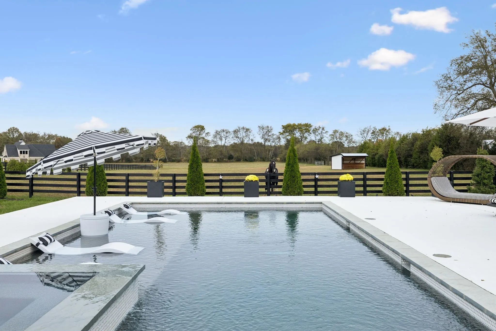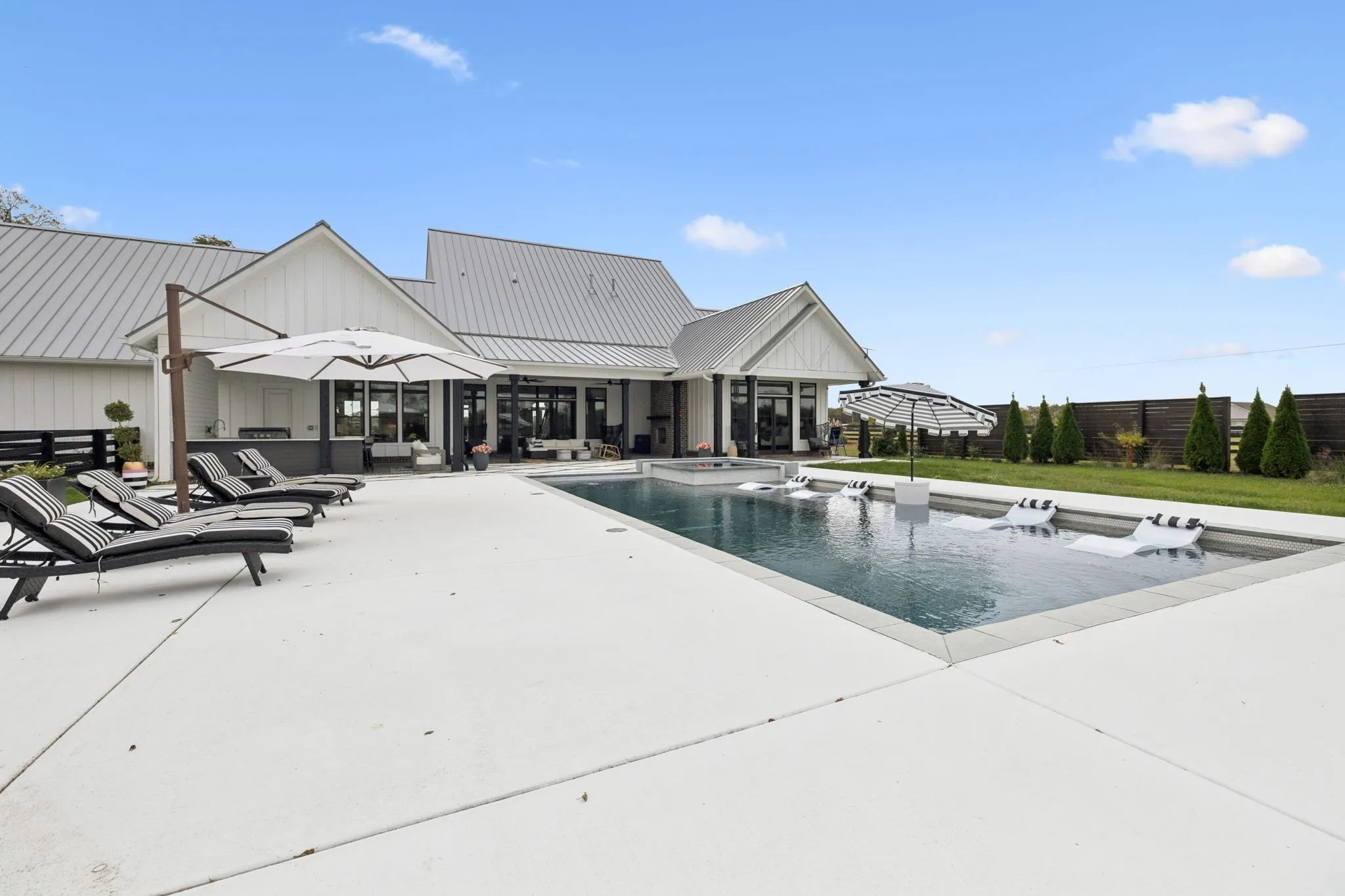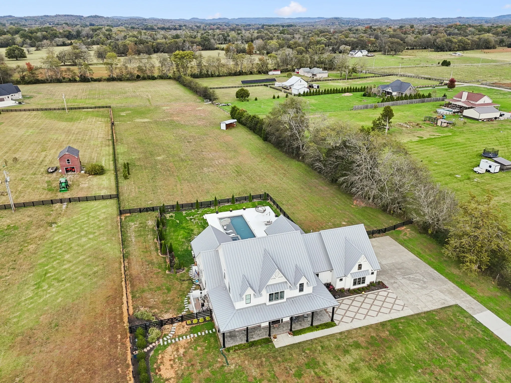 Connected by a private gate, 4041 Kelley Farris Rd offers a rare 5-acre estate featuring a designer farmhouse with resort-style outdoor living, ideal for those seeking privacy while remaining convenient to Spring Hill, Franklin, and Nashville. Located just minutes from the heart of Spring Hill, everyday essentials are within easy reach, including Kroger (approximately 15 minutes away), Target, Publix, local dining, fitness studios, and medical offices- blending peaceful country living with modern convenience.