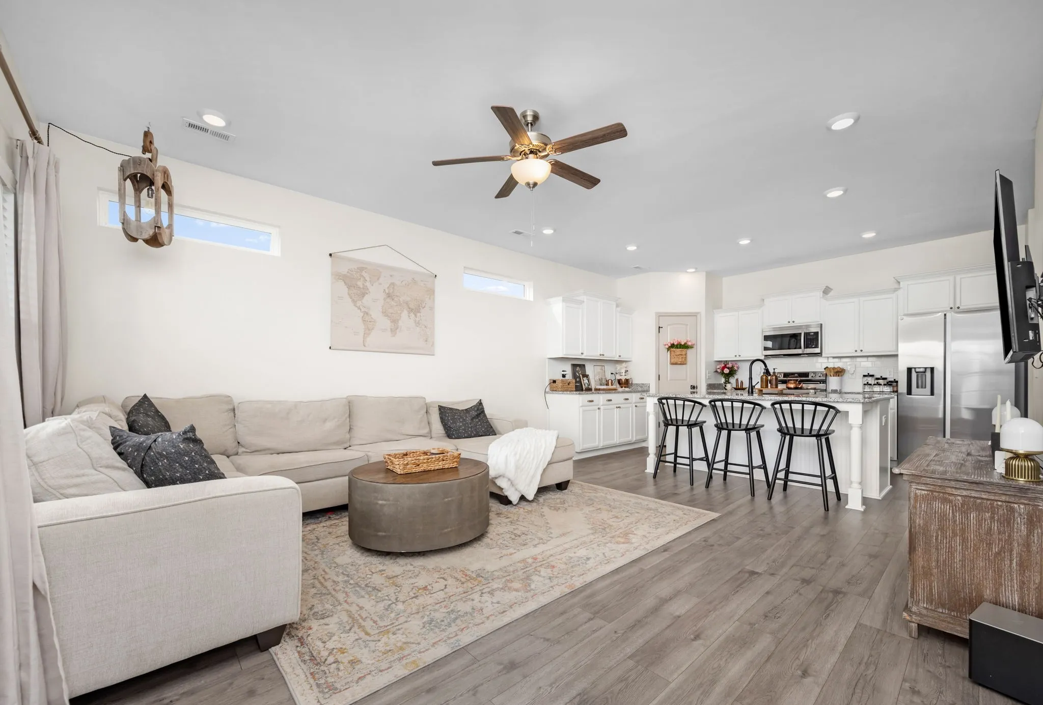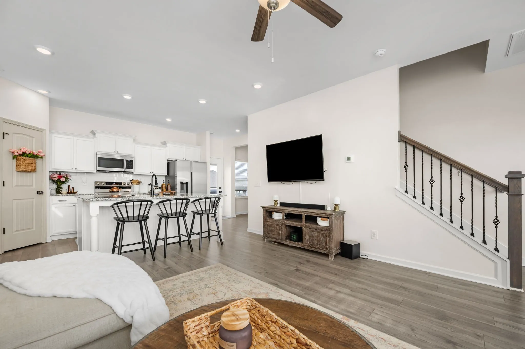 Well-maintained home less than five years old, located on a desirable cul-de-sac lot. Numerous modern upgrades throughout. Features include a side-facing garage, powder room for guests, fresh interior paint, updated lighting fixtures, and durable luxury vinyl plank (LVP) flooring throughout the main level. The open-concept kitchen is designed for both function and style with granite countertops, a tile backsplash, ample cabinetry, and a spacious pantry. The kitchen flows seamlessly into the main living space—perfect for entertaining and everyday living. The spacious primary suite features a designer accent wall and a private ensuite bath with a tiled shower, double vanities, and tile flooring. Additional bathrooms also include tile flooring for durability and easy maintenance. Enjoy outdoor living on the large deck overlooking a fully fenced backyard—ideal for pets, play, or weekend gatherings. Located in a neighborhood with county taxes only and convenient access to I-840, making commuting easy while still enjoying peaceful suburban living.