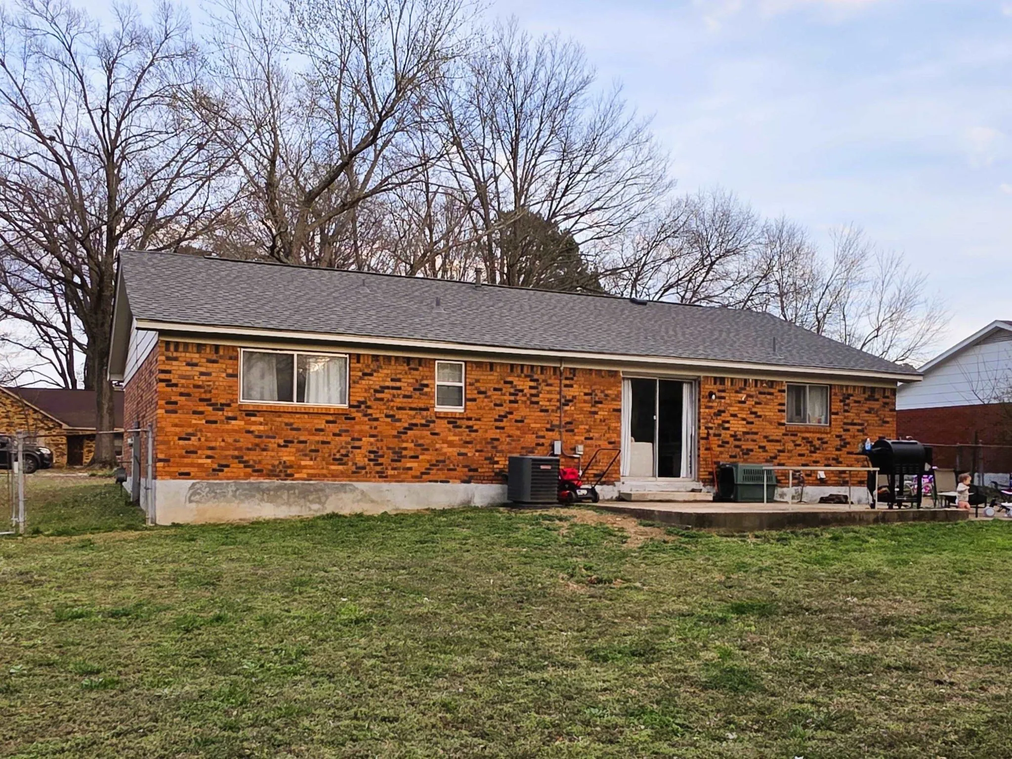 CONTRACT FAILED, no fault of the sellers. Beautiful 3-bedroom, 2-bath brick home with a front porch and fenced-in back yard. Home features a concrete patio and a side drive that extends into the backyard. (12/2023: 3-D New roof, new HVAC, flooring throughout, granite with tile backsplash, bathroom vanities with quartz counters. New lighting, plumbing fixtures, & appliances.) The family is outgrowing their current home and is looking for a larger home. Refrigerator, blinds, and washer & dryer, to stay. Please allow an 1.5hr notice due to the toddler & dogs. Schedule your private showing today!