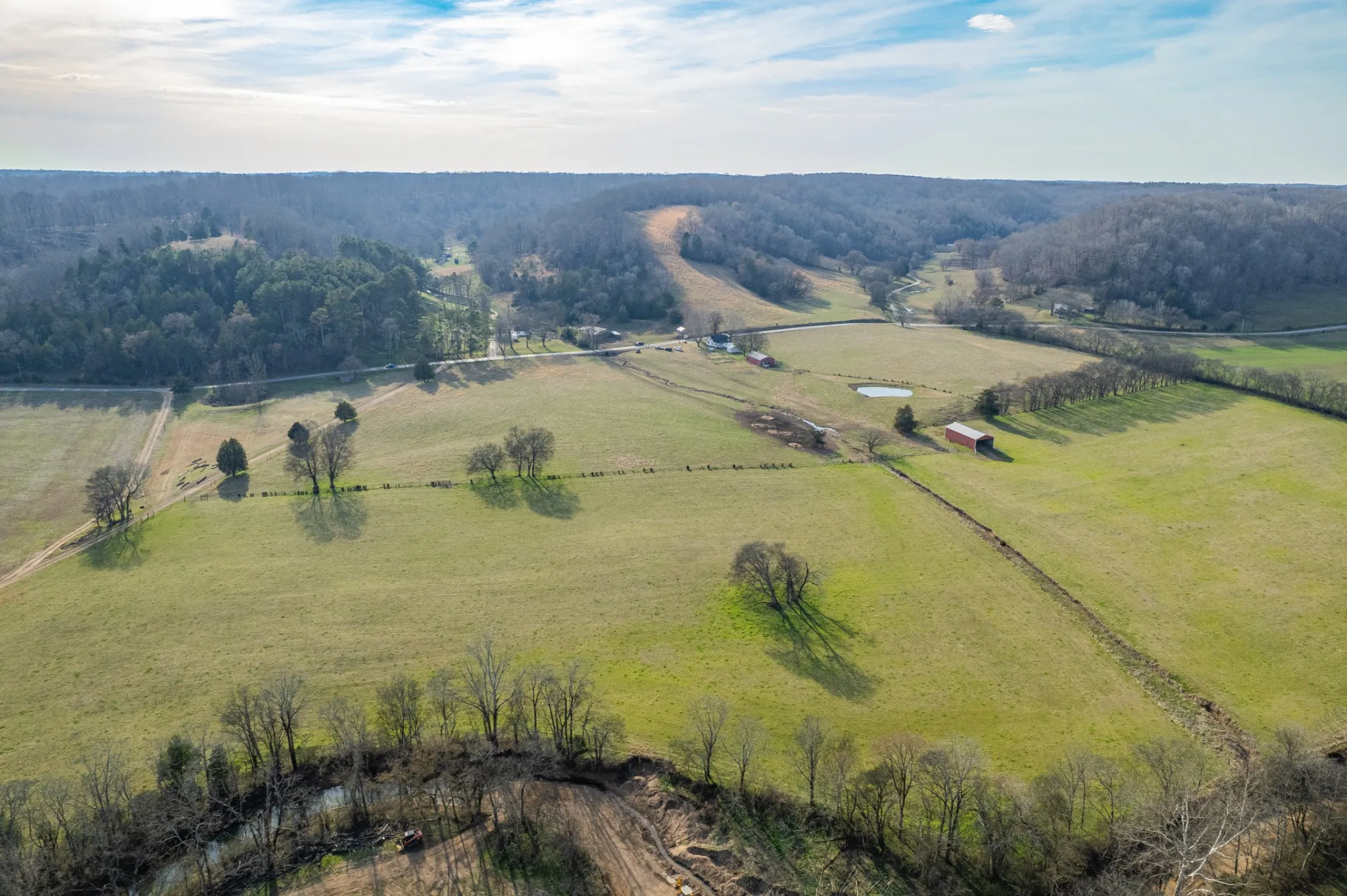 - Lot Features: Cleared, Level, Wooded, Hilly