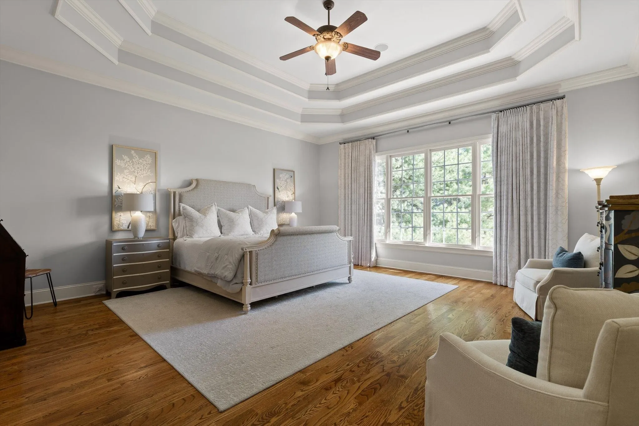 This home features 5 total bedrooms, and 5.5 bathrooms. Enjoy the convenience of a main-level primary retreat–a true sanctuary designed for ultimate privacy. The primary bathroom offers a large vanity, spa-like tub, and walk-in closet.