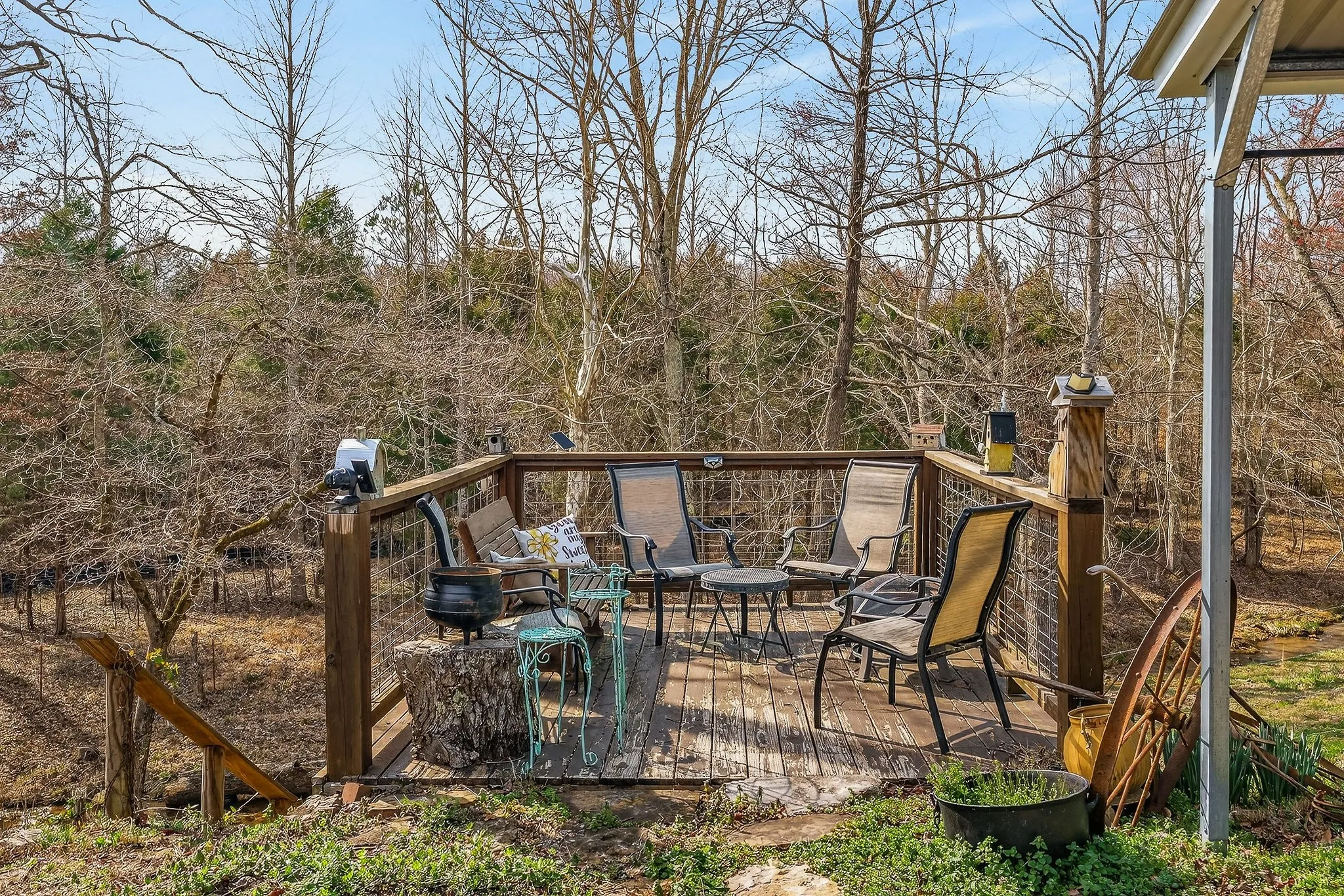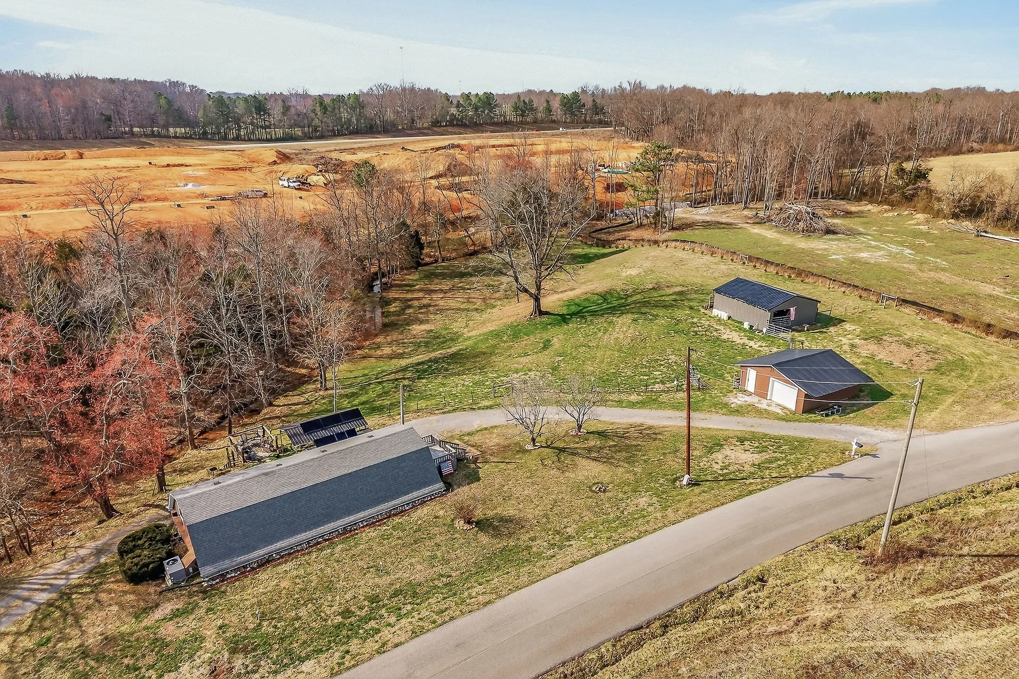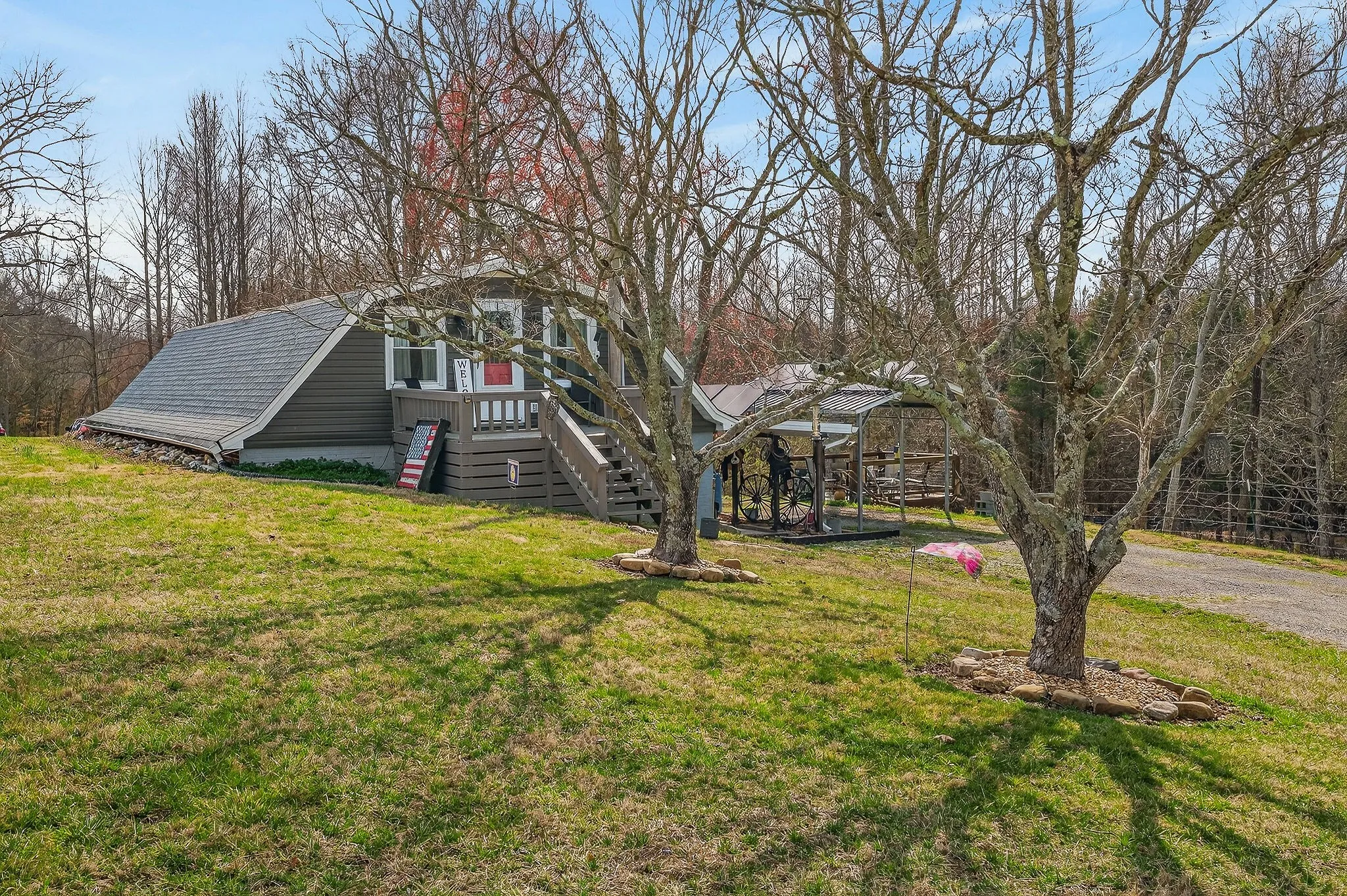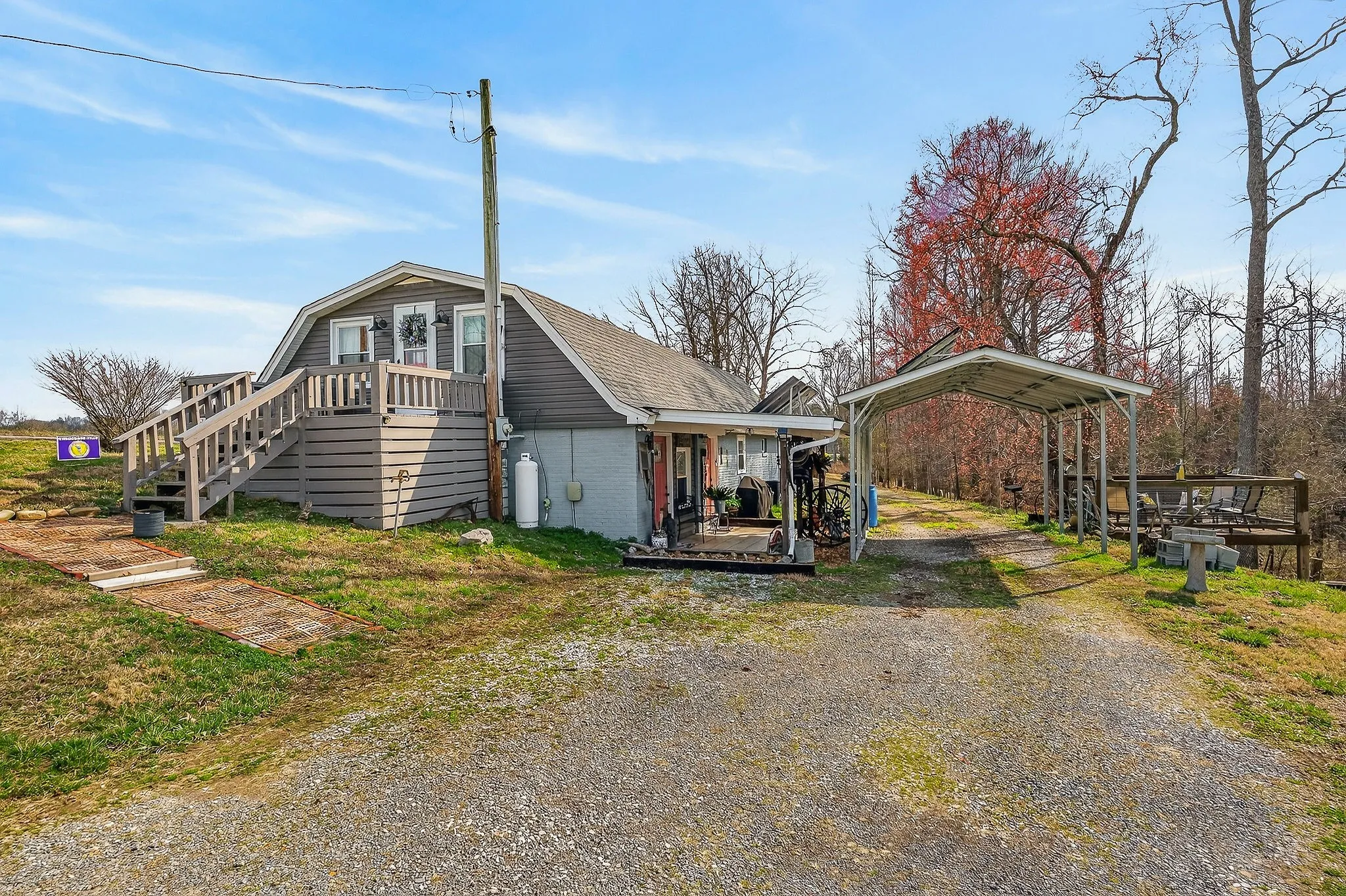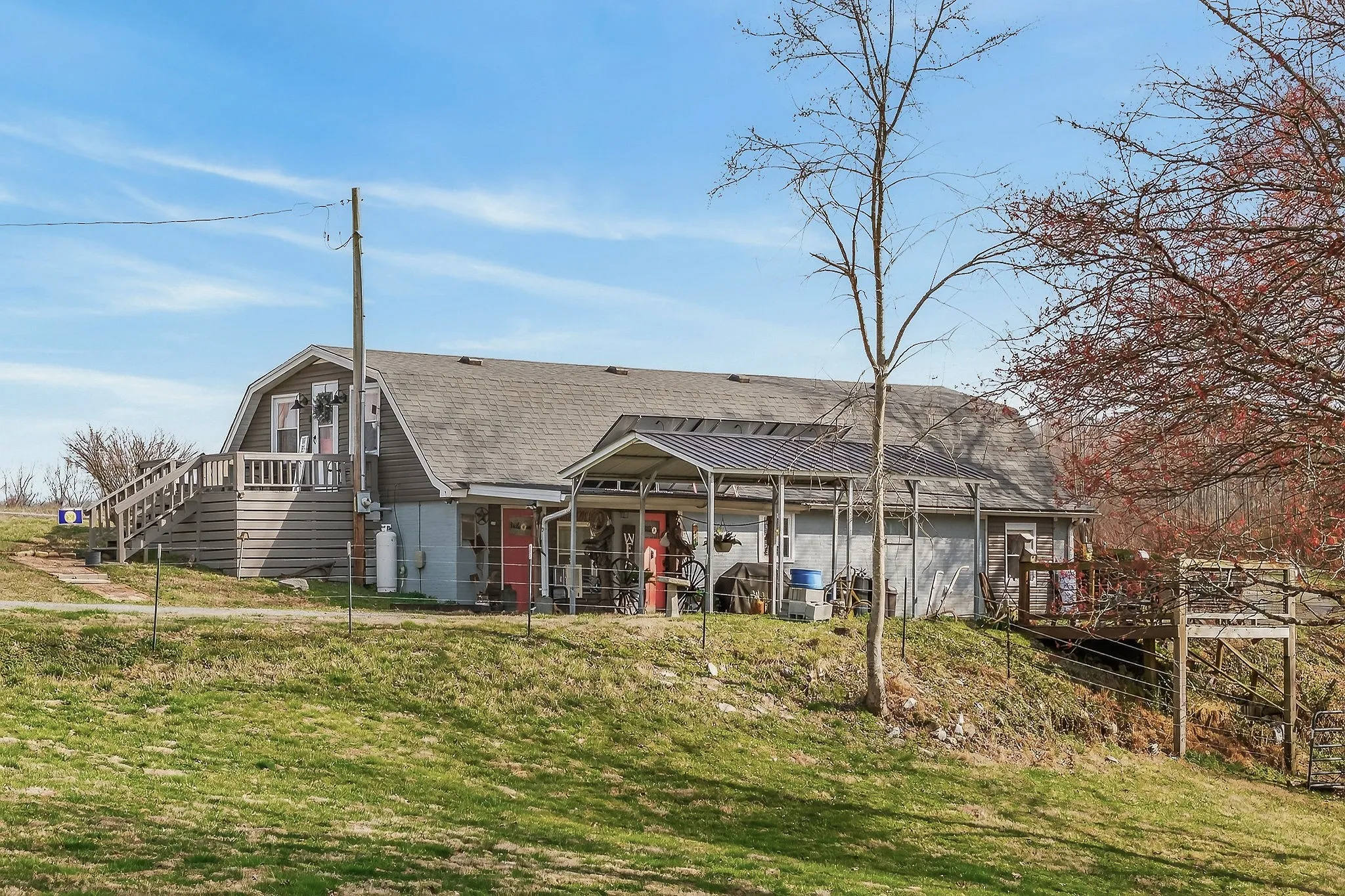 Set on a scenic 3.98-acre parcel, this 3 bed, 2 bath berm home offers peaceful living surrounded by beautiful natural landscape. Inside, an open main living and kitchen area creates a comfortable space for everyday living and gathering with family and friends. Step outside to one of the property’s most special features, a spacious deck overlooking a year-round creek, the perfect place to relax and enjoy the sights and sounds of nature. The land offers open space for recreation, gardening, or animals, along with useful outbuildings including a barn with new metal & additional storage. Recent updates include a new roof, new HVAC unit, new water heater, updated PEX water lines, new lighting, thermostat, and improved insulation. The property also features partial pasture fencing, a garden spot, propane backup heat, & regular septic maintenance. With its energy-efficient berm design, recent improvements, & beautiful natural surroundings, this property creates a welcoming place to settle in!