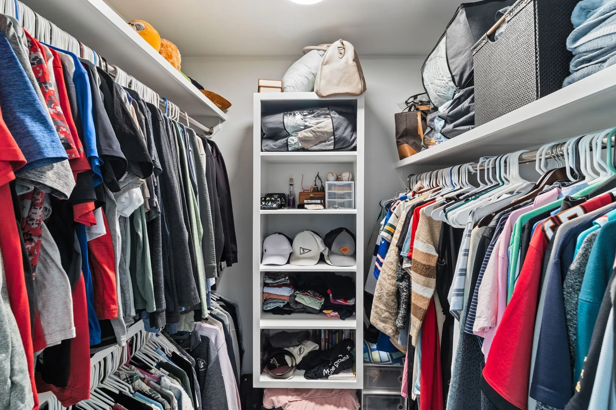 Unwind in the spacious primary suite featuring a luxurious walk-in shower and thoughtful touches like wood shelving in every closet and a large laundry room with extra storage space.