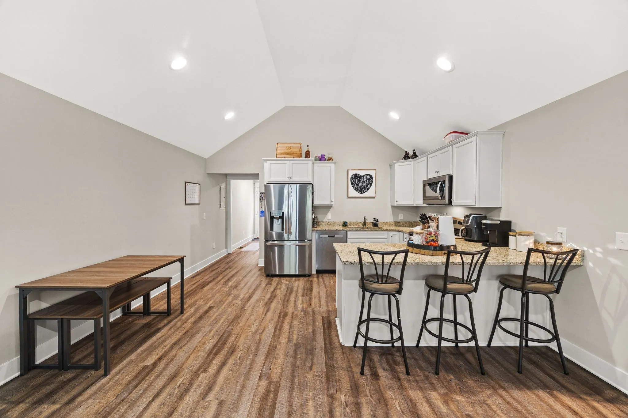 Nestled on a level, partially wooded lot, this home offers a bright and open layout designed for both relaxing and entertaining. The kitchen steals the show with crisp white shaker cabinets, soft-close doors and drawers, gleaming granite countertops, and stainless steel appliances — the perfect blend of modern style and everyday function.