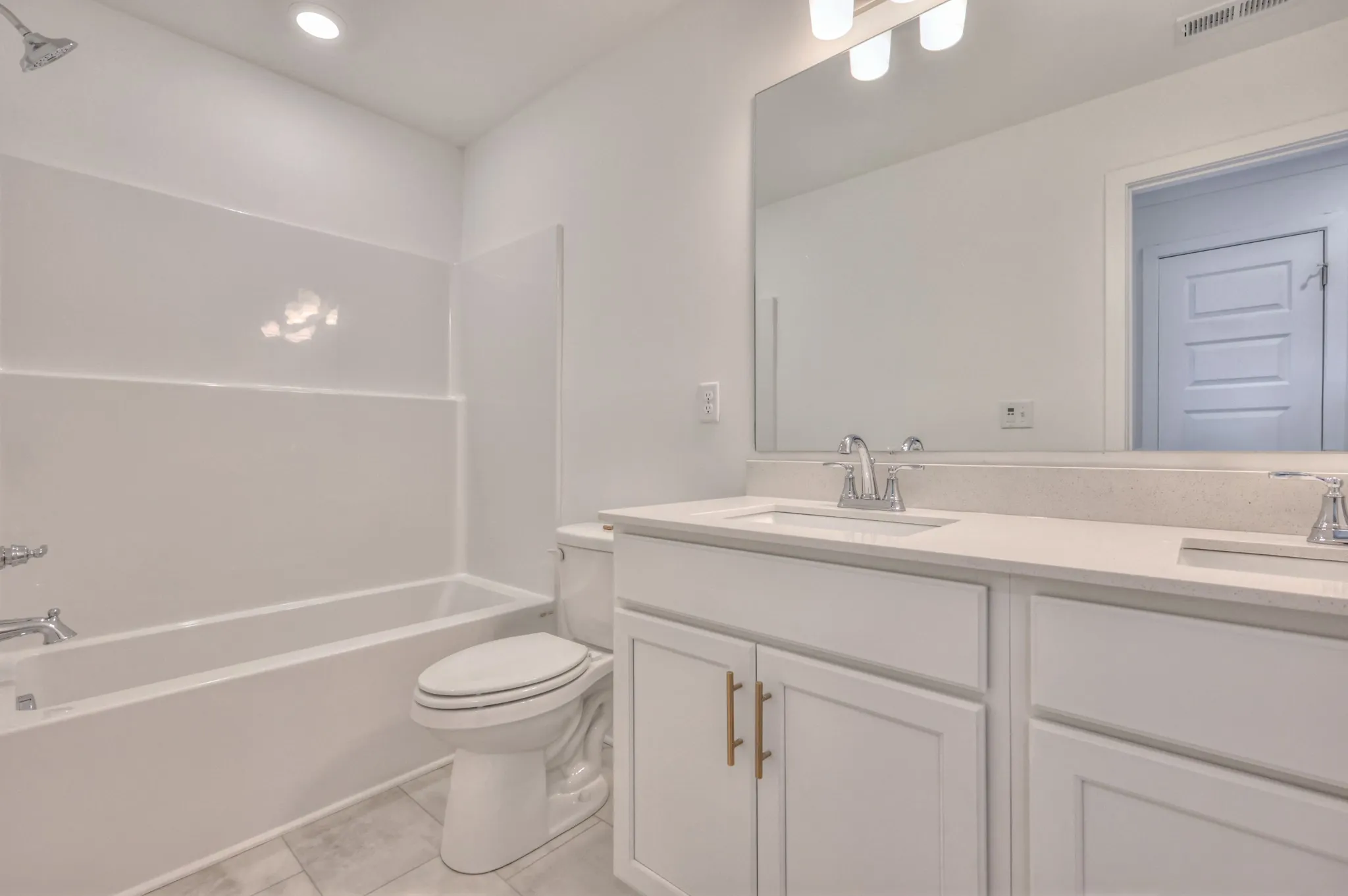 Upstairs, the primary suite offers a true retreat with its oversized 7′ tile shower, dual showerheads, and a sleek frameless glass door. Additional ceramic tile flooring in all wet areas adds durability and style throughout the home.