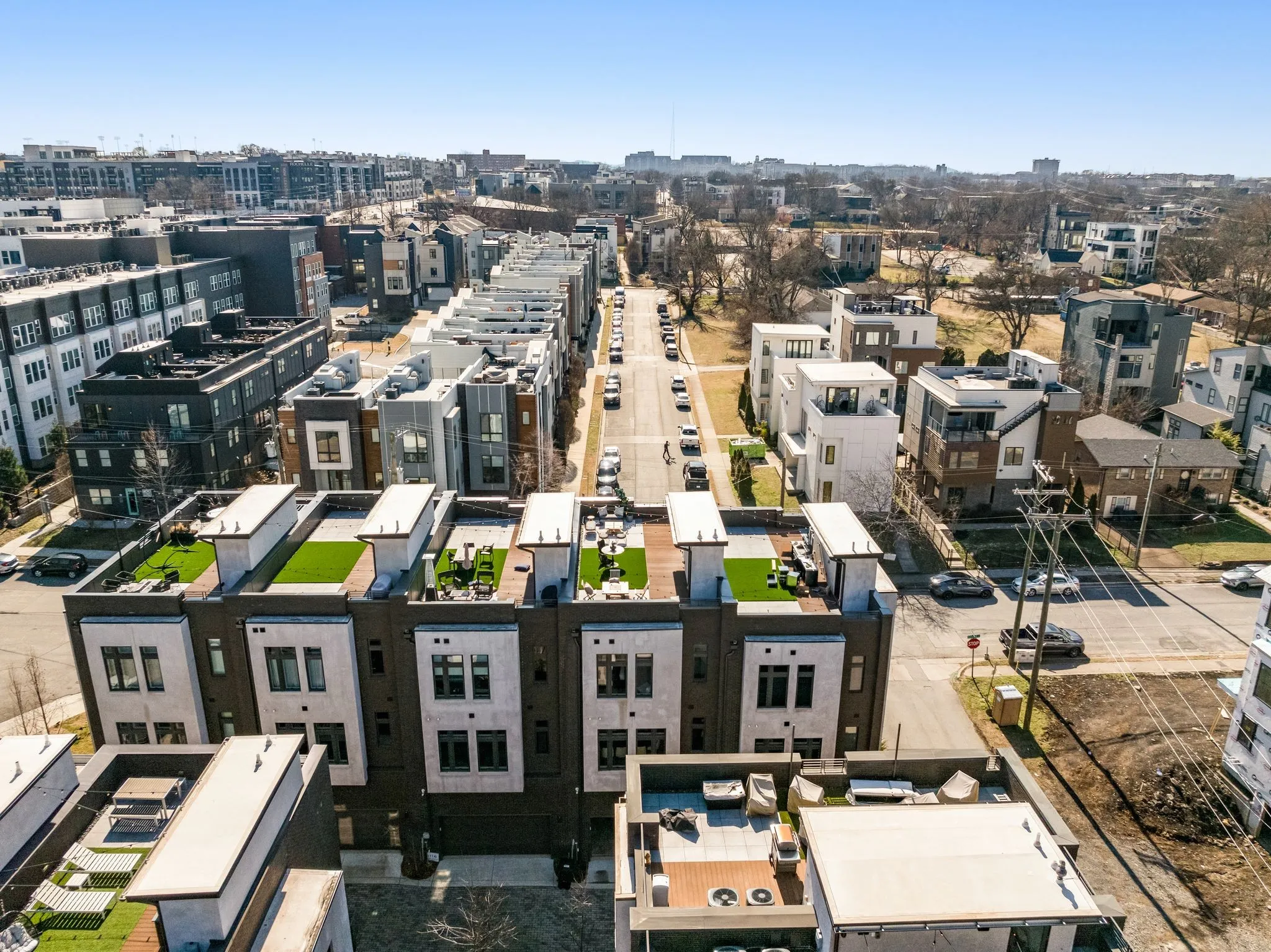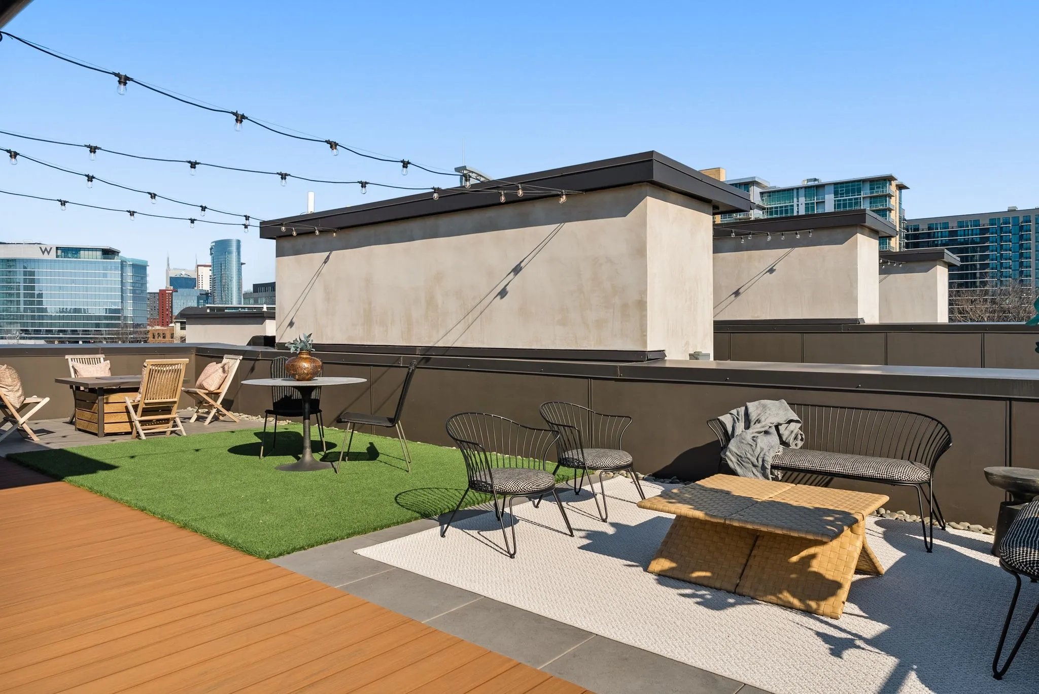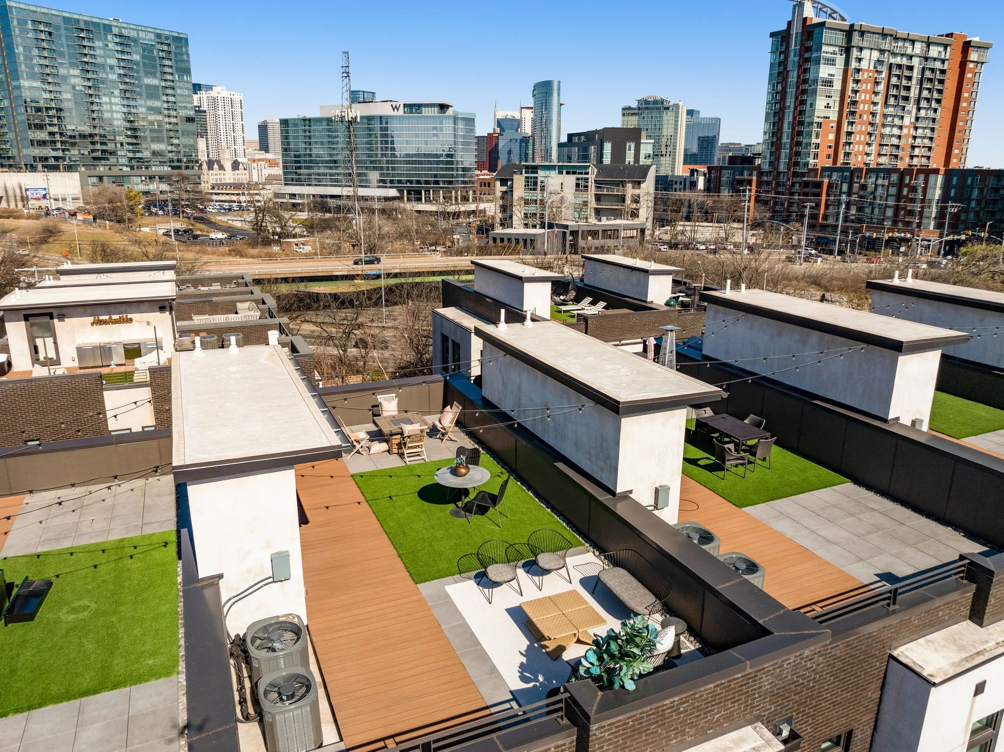 Set within an all-brick development, every detail has been curated for comfort, style, and elevated function. Enjoy skyline views from your private rooftop retreat, complete with tile pavers, a turf lounge area, and ambient string lighting, perfect for sunset cocktails or watching downtown fireworks.